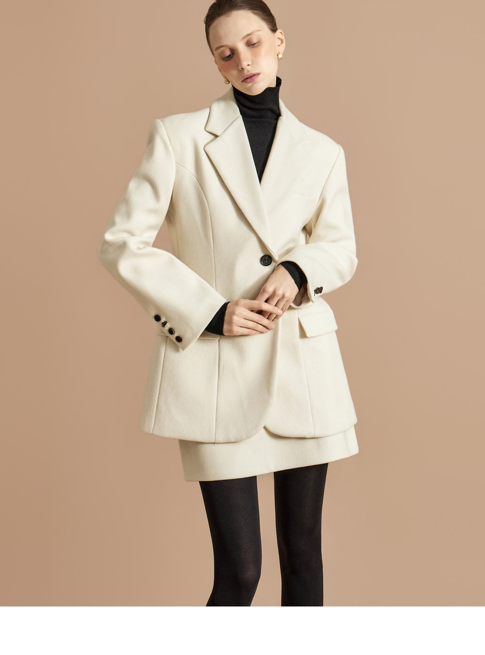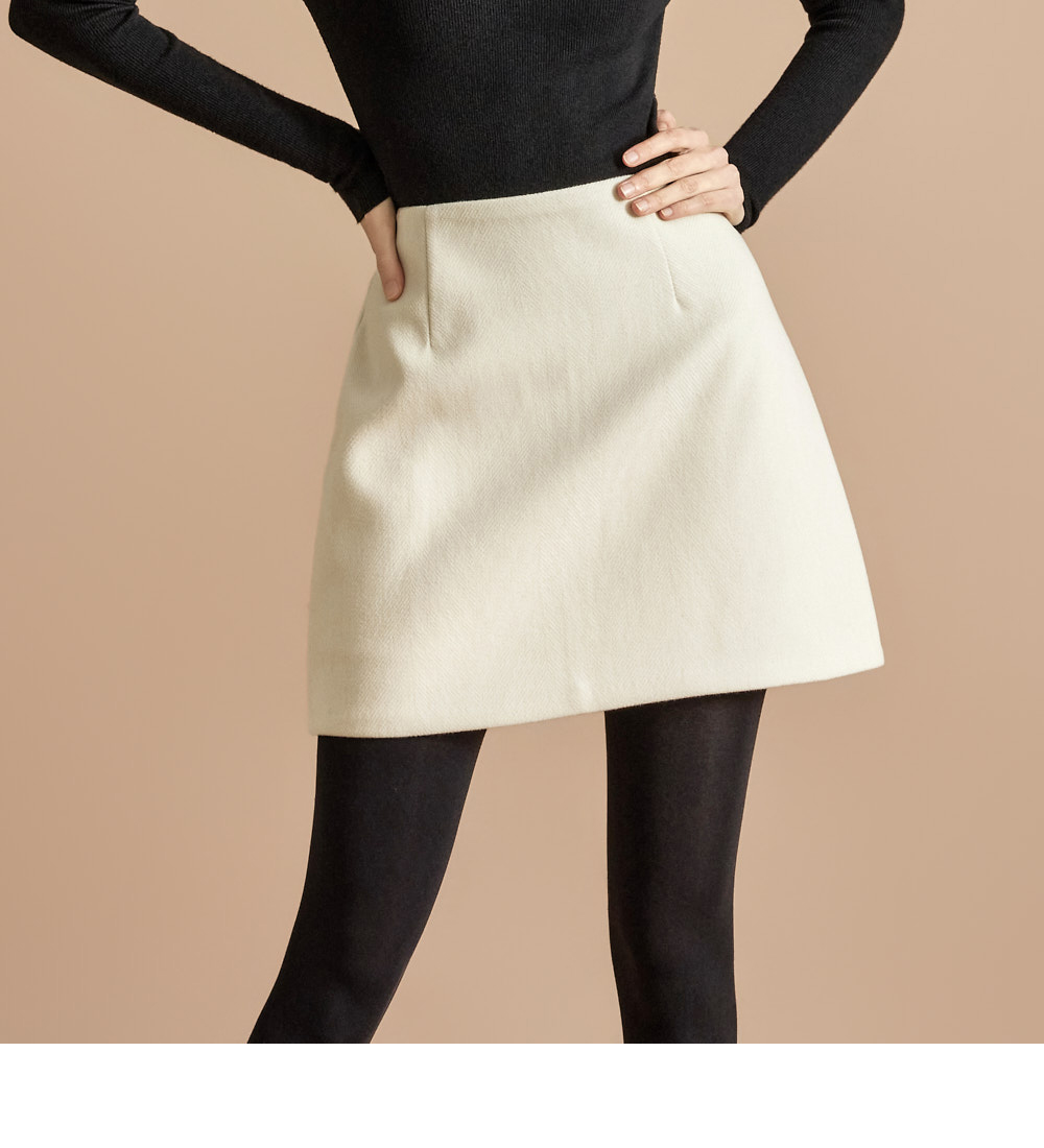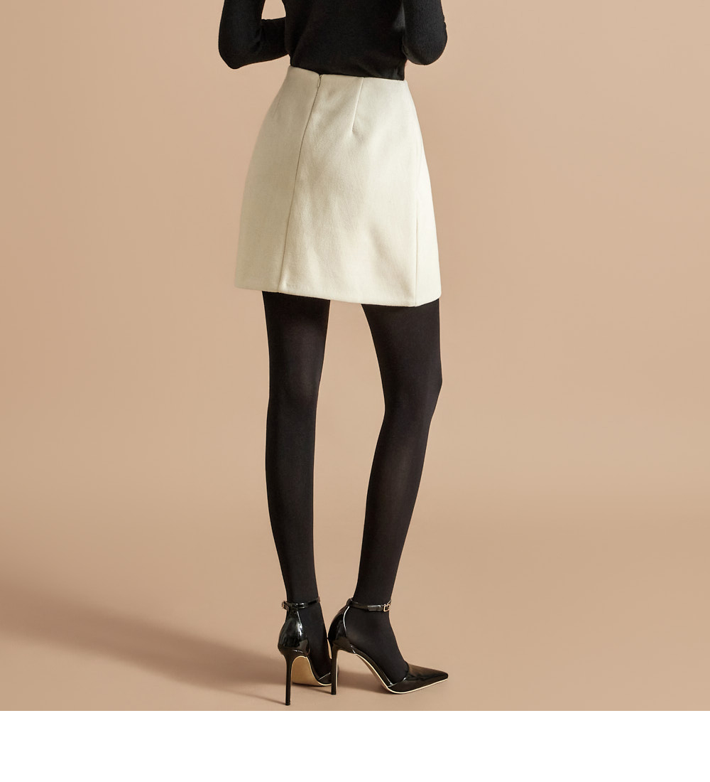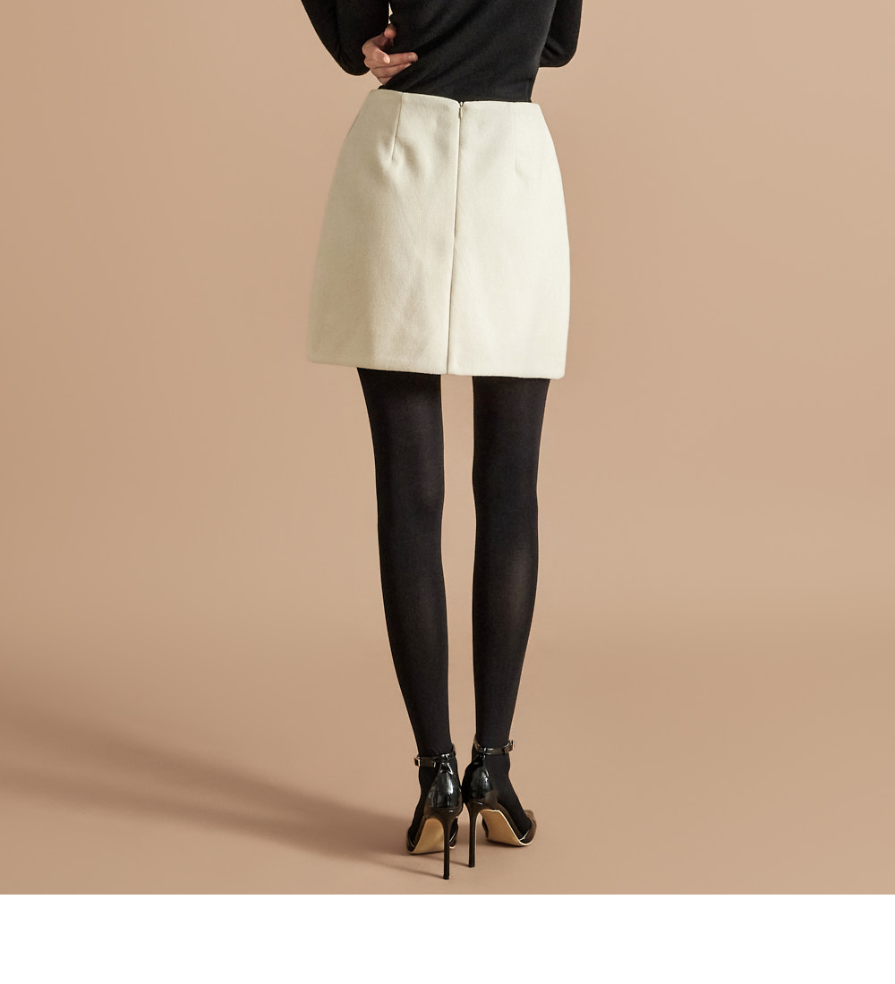 这是一款现代且女性化氛围的迷你裙。 采用聚酯与羊毛混纺面料制成,既挺括又柔软,营造精致轮廓,呈现高雅气质。 短款设计让双腿显得修长纤细,极简款式便于搭配各种上衣。 后拉链设计方便穿脱,部分衬里处理保证穿着稳定性。 搭配西装或针织衫,可轻松驾驭正式场合或聚会穿搭。 174CM 模特穿着 S 尺码,颜色为 IVORY。