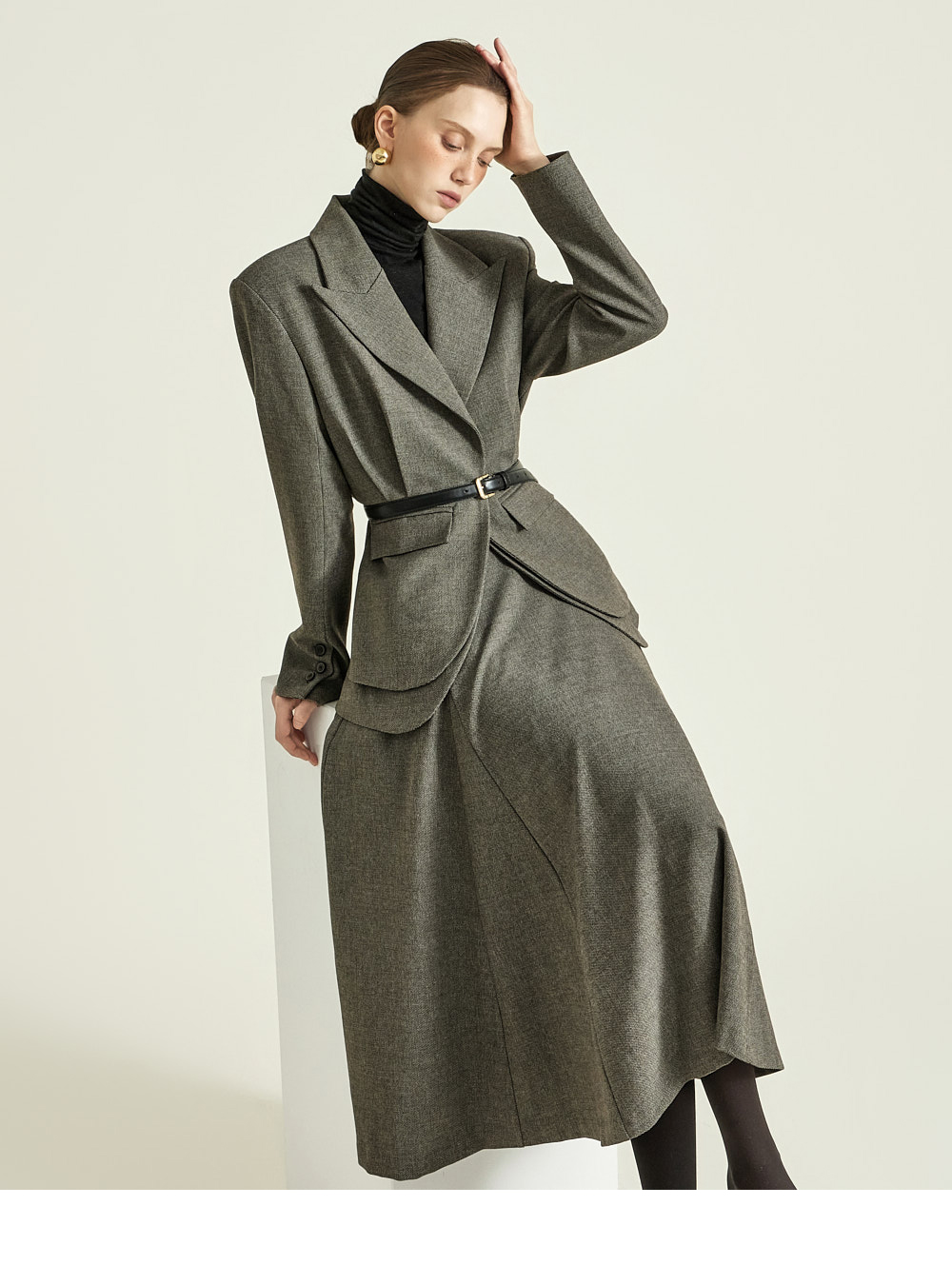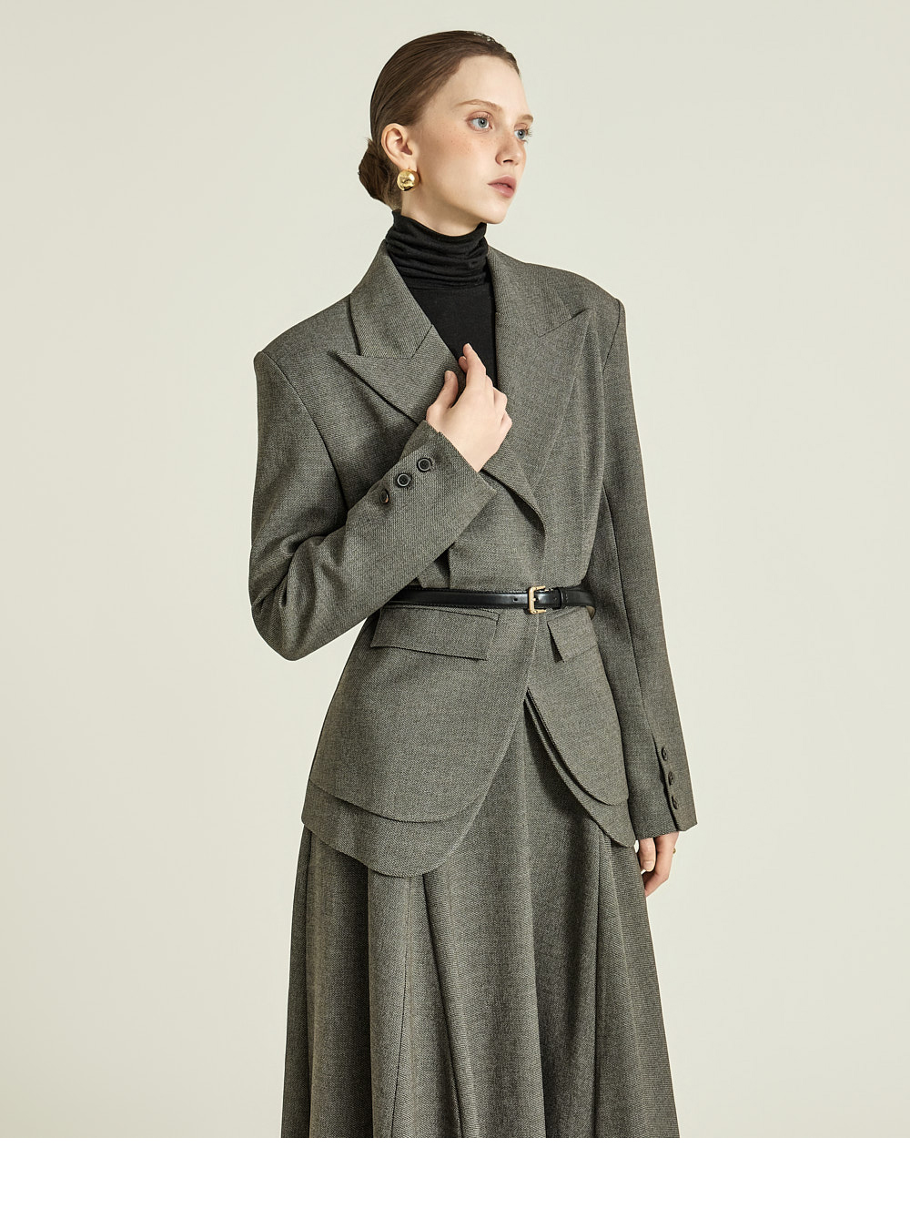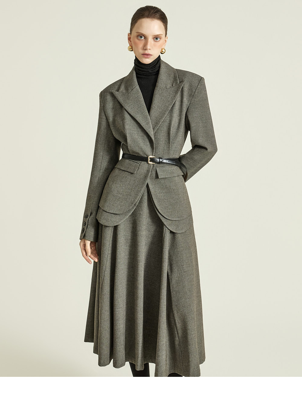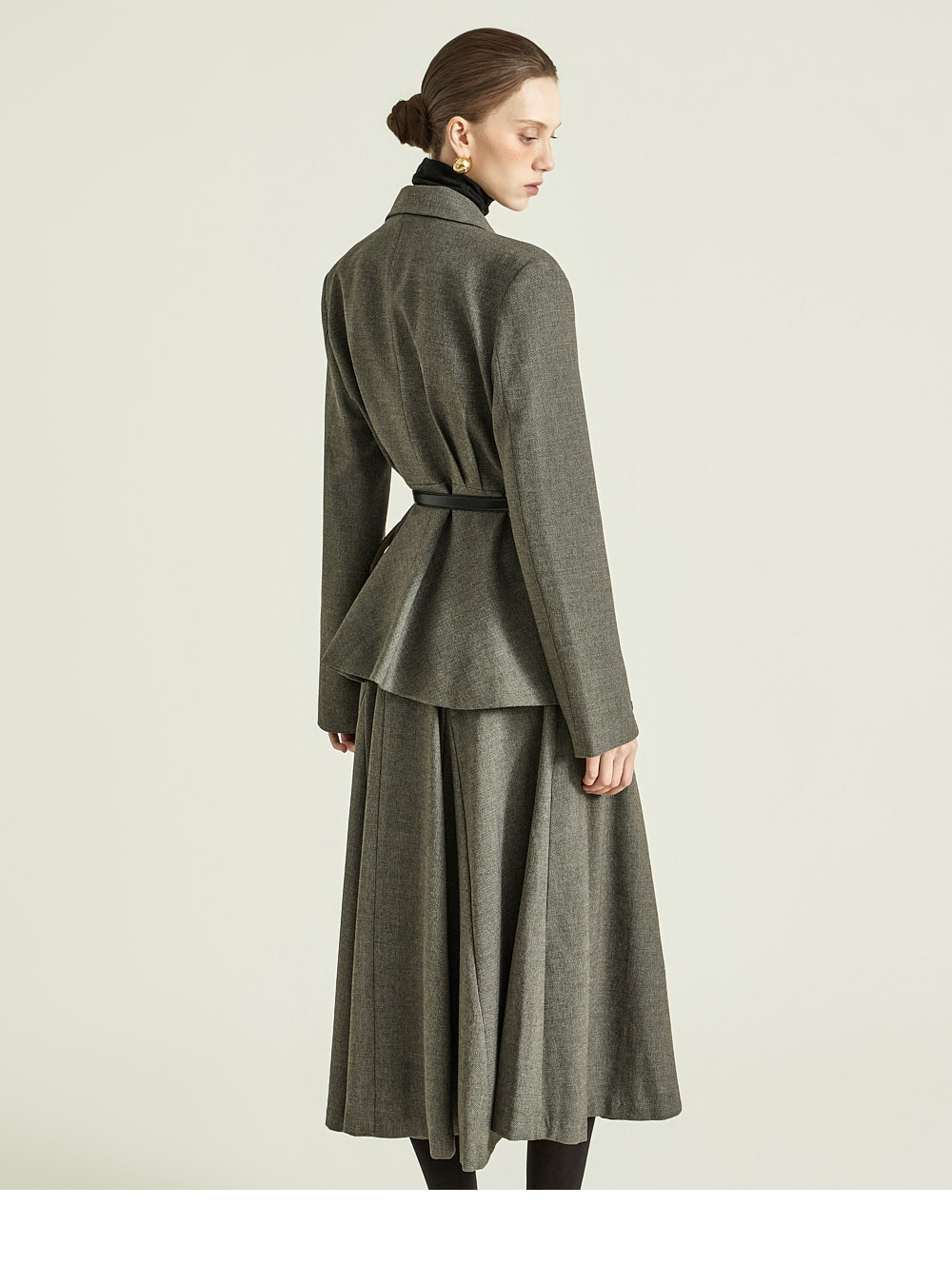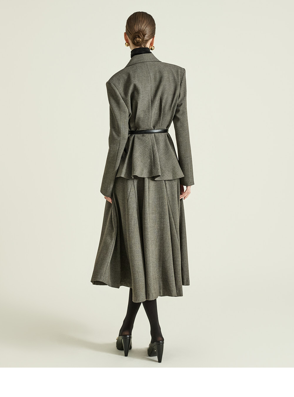 这是一款散发经典气息的半身裙。 采用聚酯纤维、粘纤及氨纶混纺面料制成,既挺括又柔软,提供S、M两个尺码,可根据体型选择合适尺寸。 裙摆呈迷人喇叭型,打造饱满的轮廓感,加长裙身展现优雅线条,稳固的腰线强调纤细上身比例。 丰富的喇叭裙型营造出精致垂感,可搭配正式西装外套或修身上衣,打造既优雅又有存在感的造型。 174CM模特穿着S码,深炭灰色。