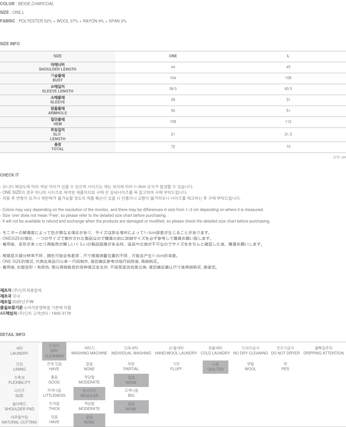 • DINT的所有商品, 使用一般洗滌或是烘乾機, 皆有可能成爲變形或是商品損傷的原因, 建議您使用乾洗.