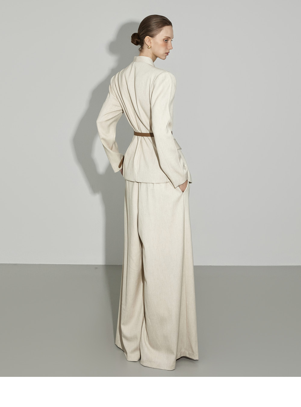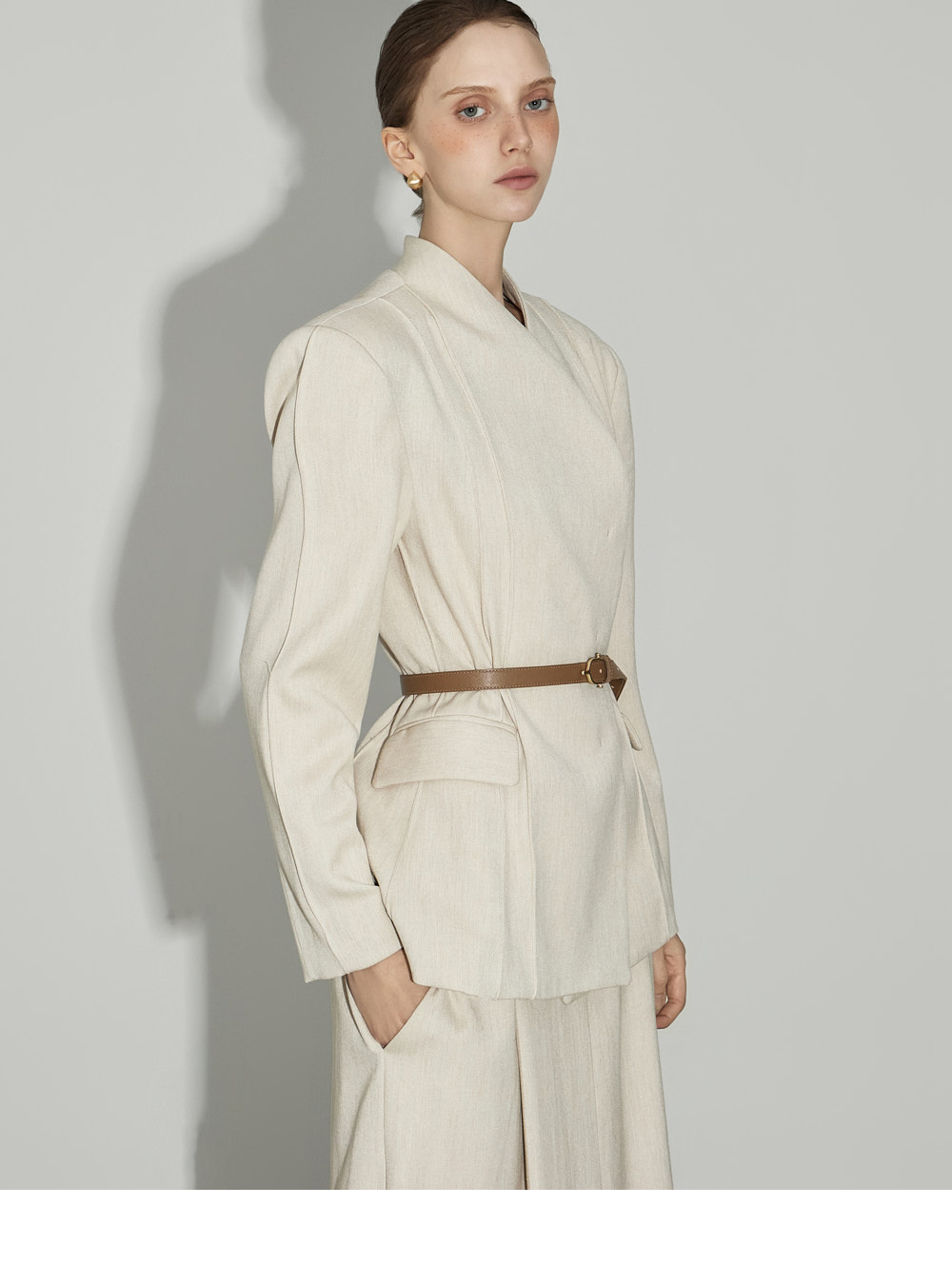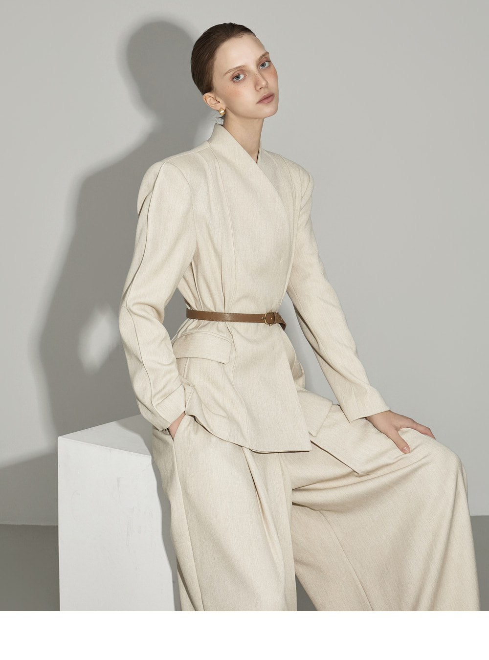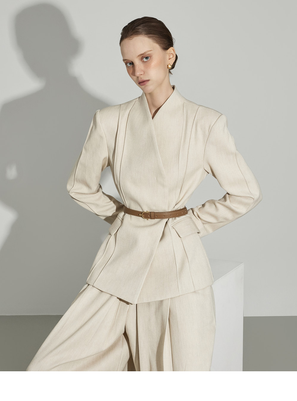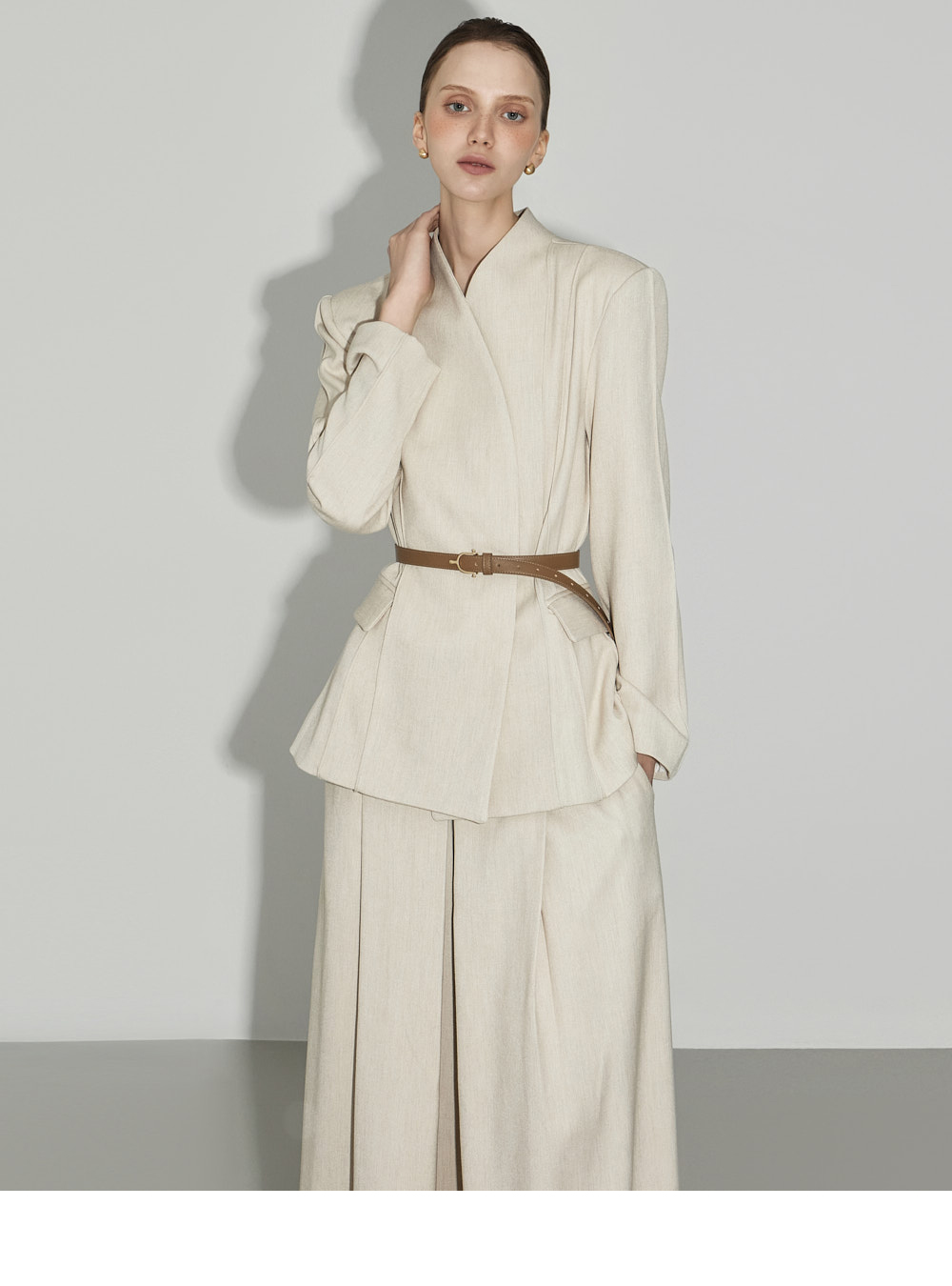 174CM模特,上下装均穿ONE码,象牙色。