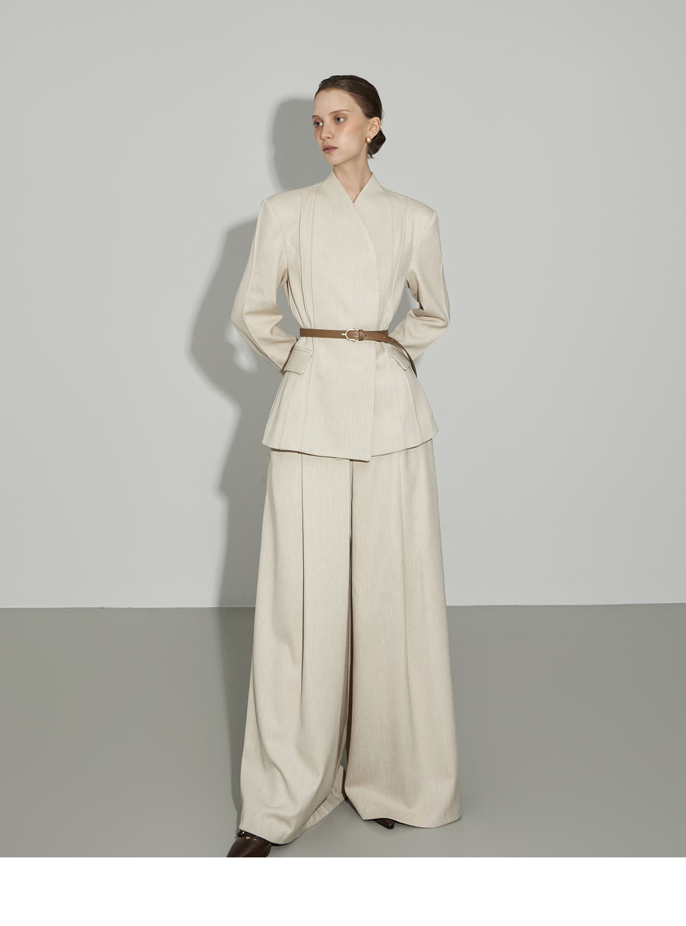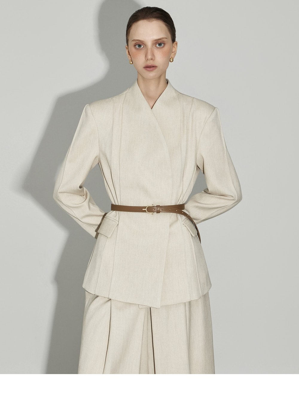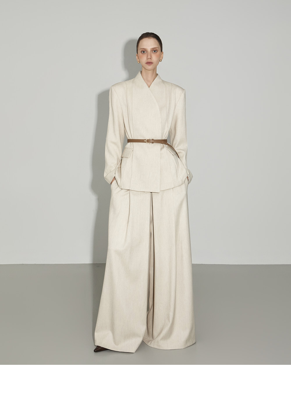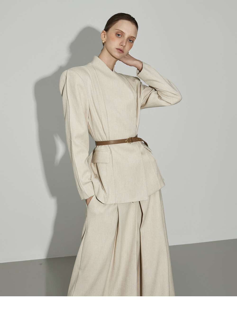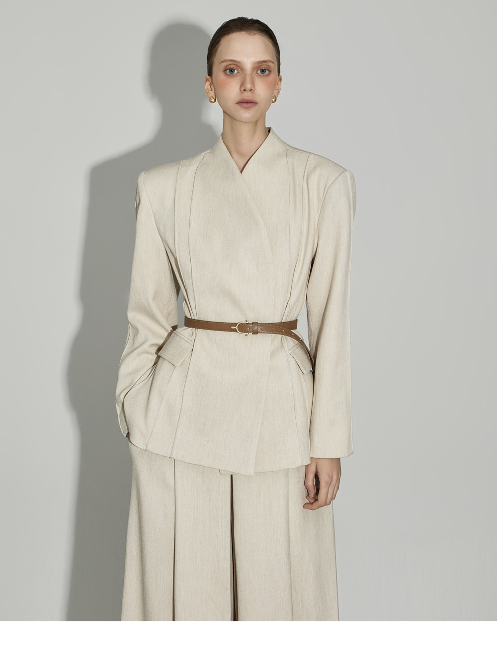 174CM模特,上下装均穿ONE码,象牙色。