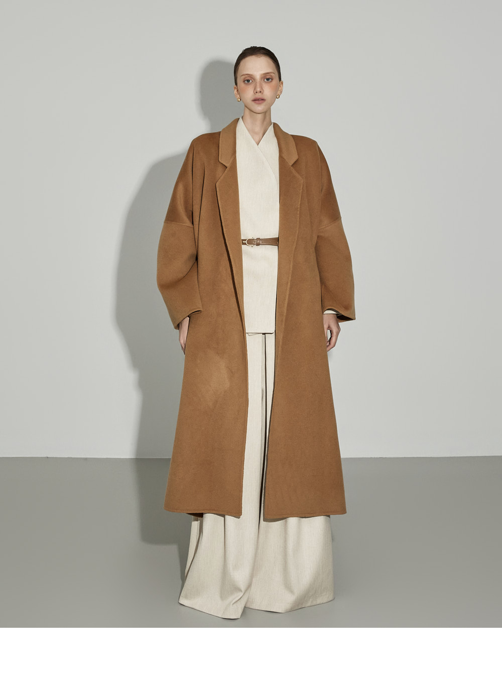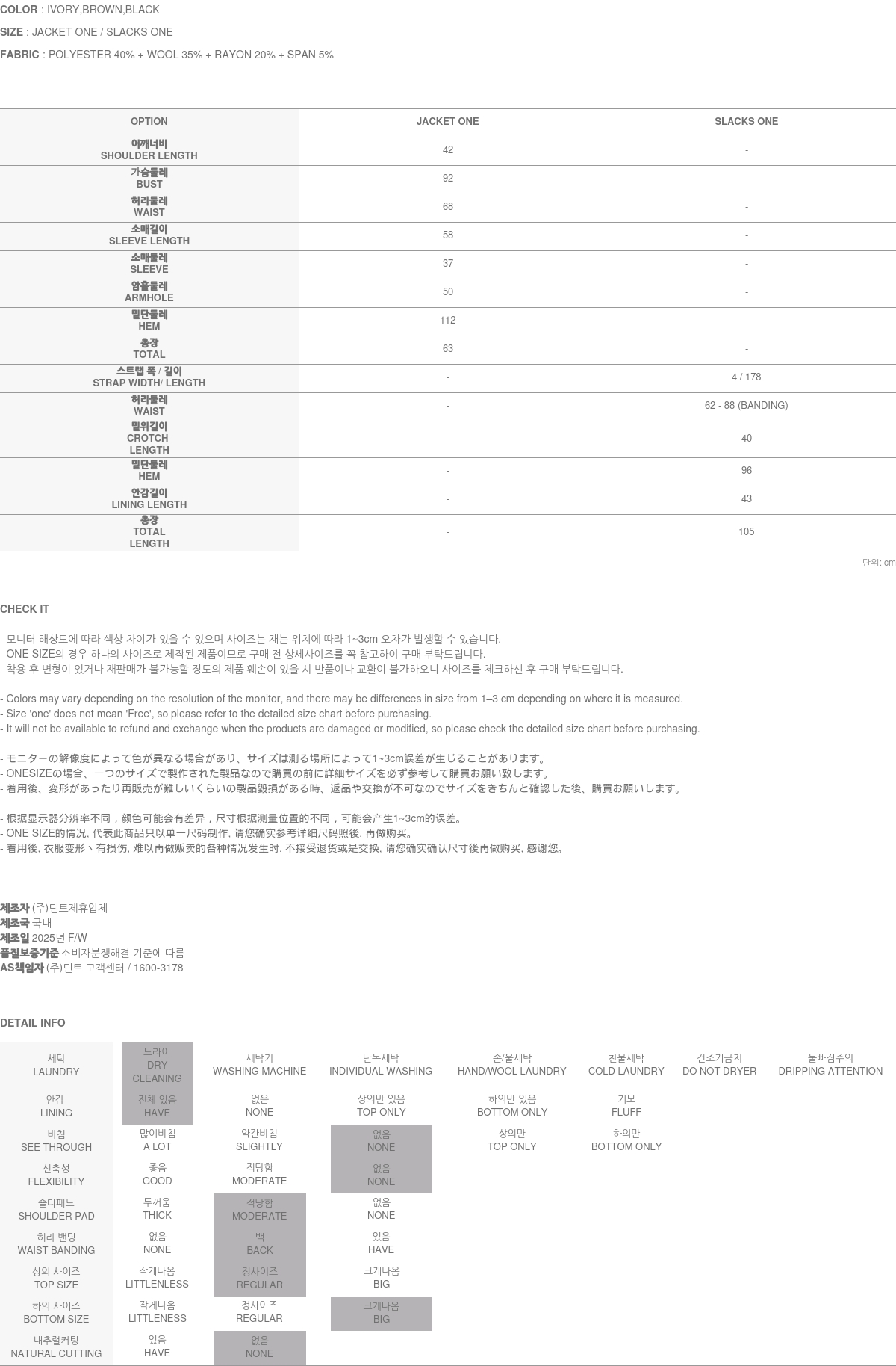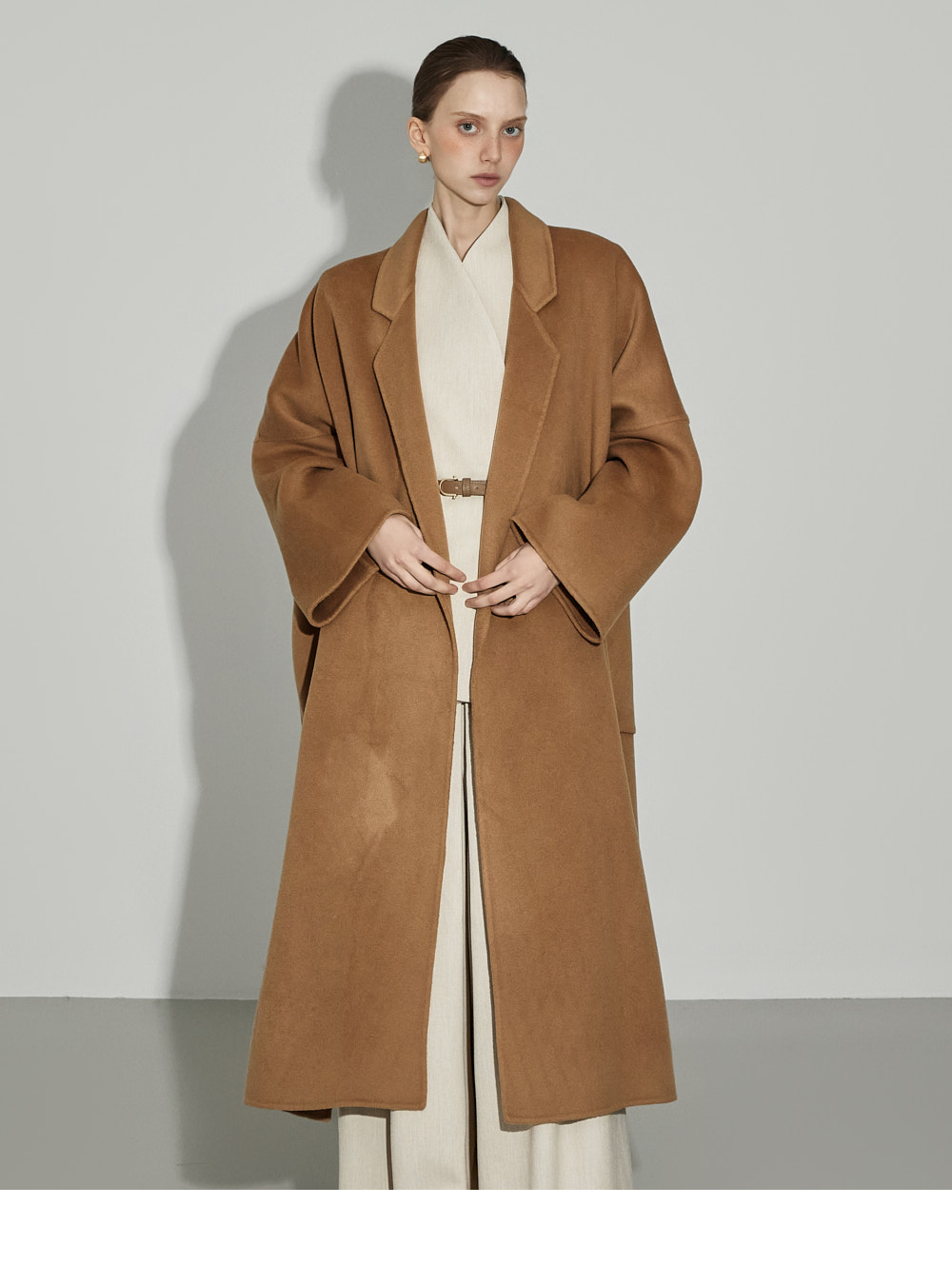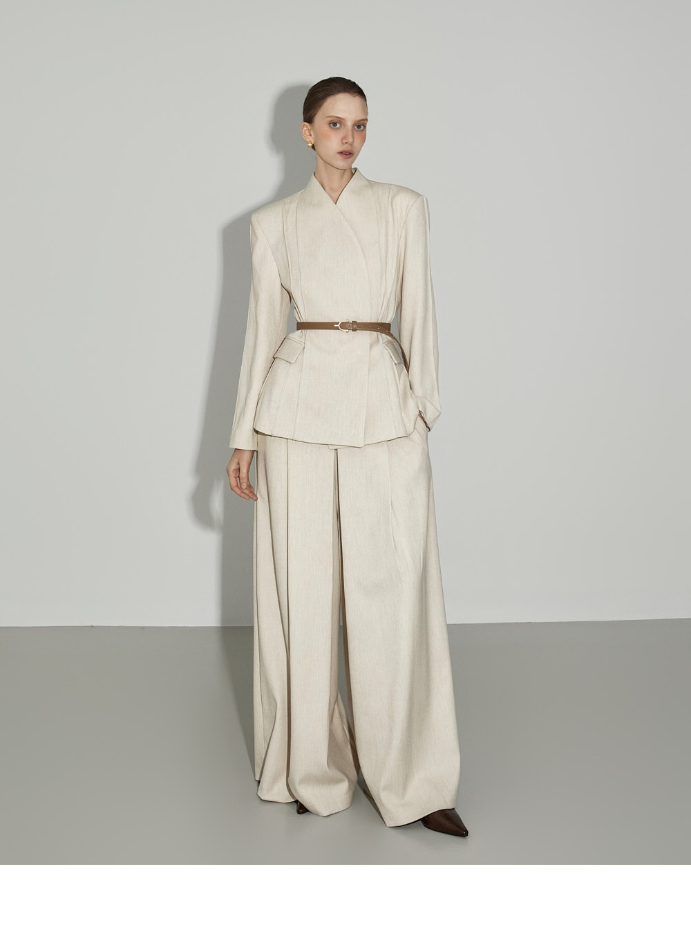 174CM模特,上下装均穿ONE码,象牙色。