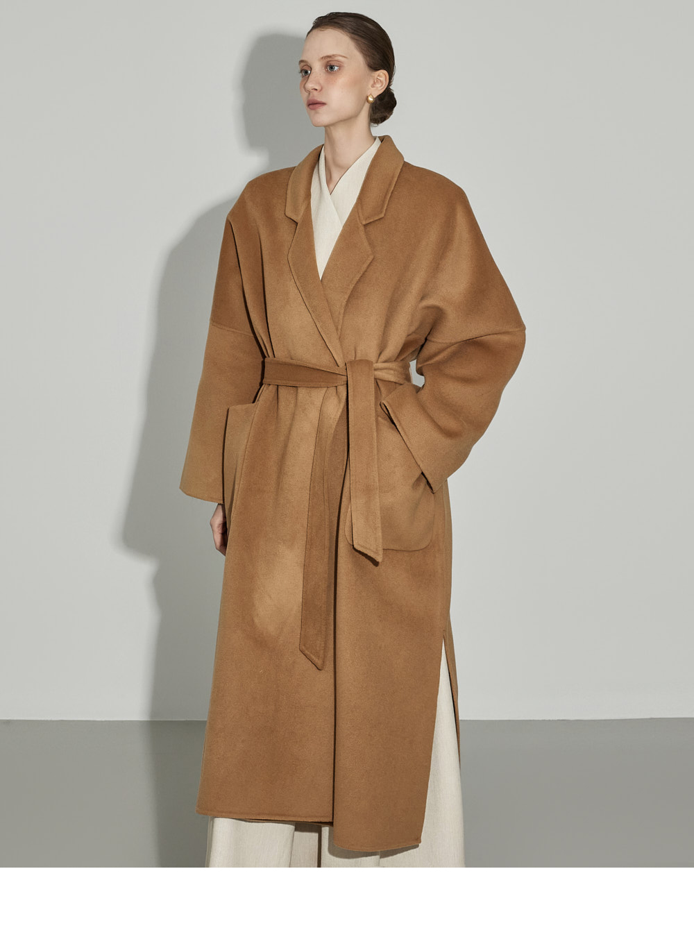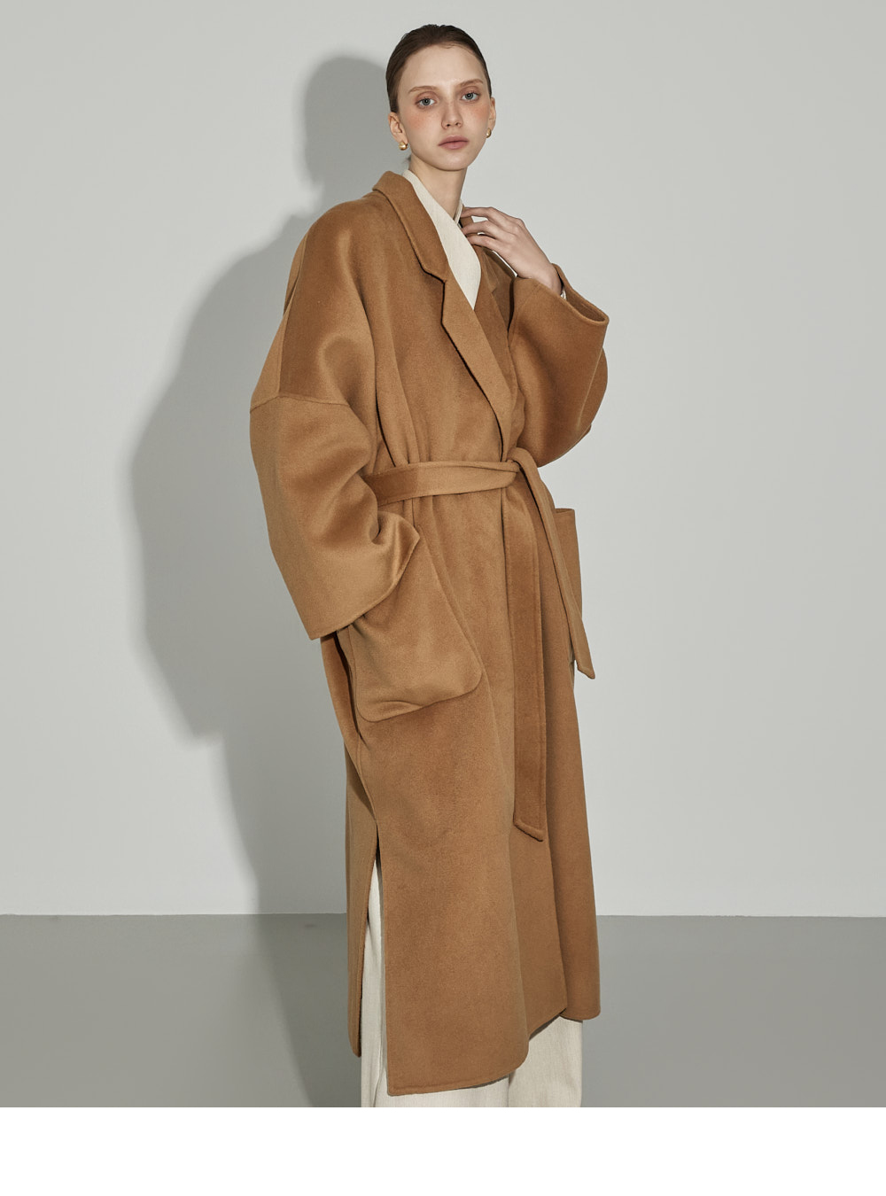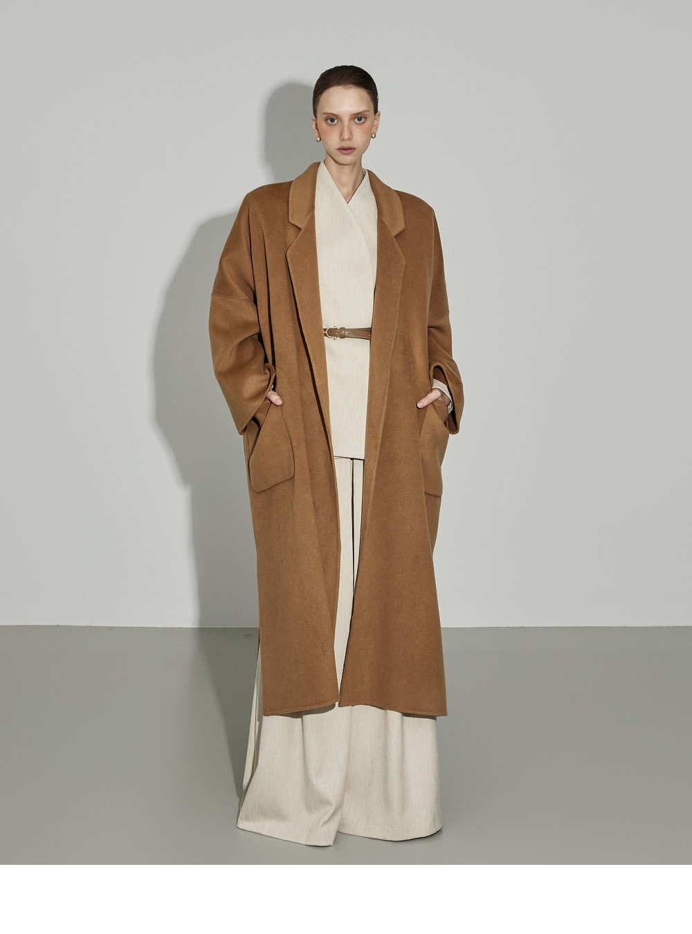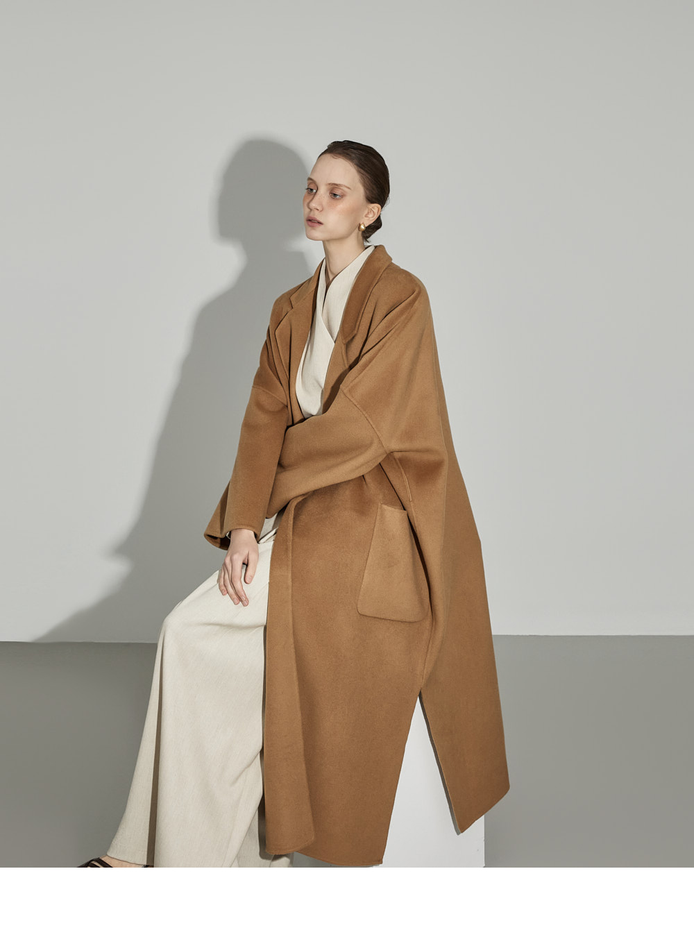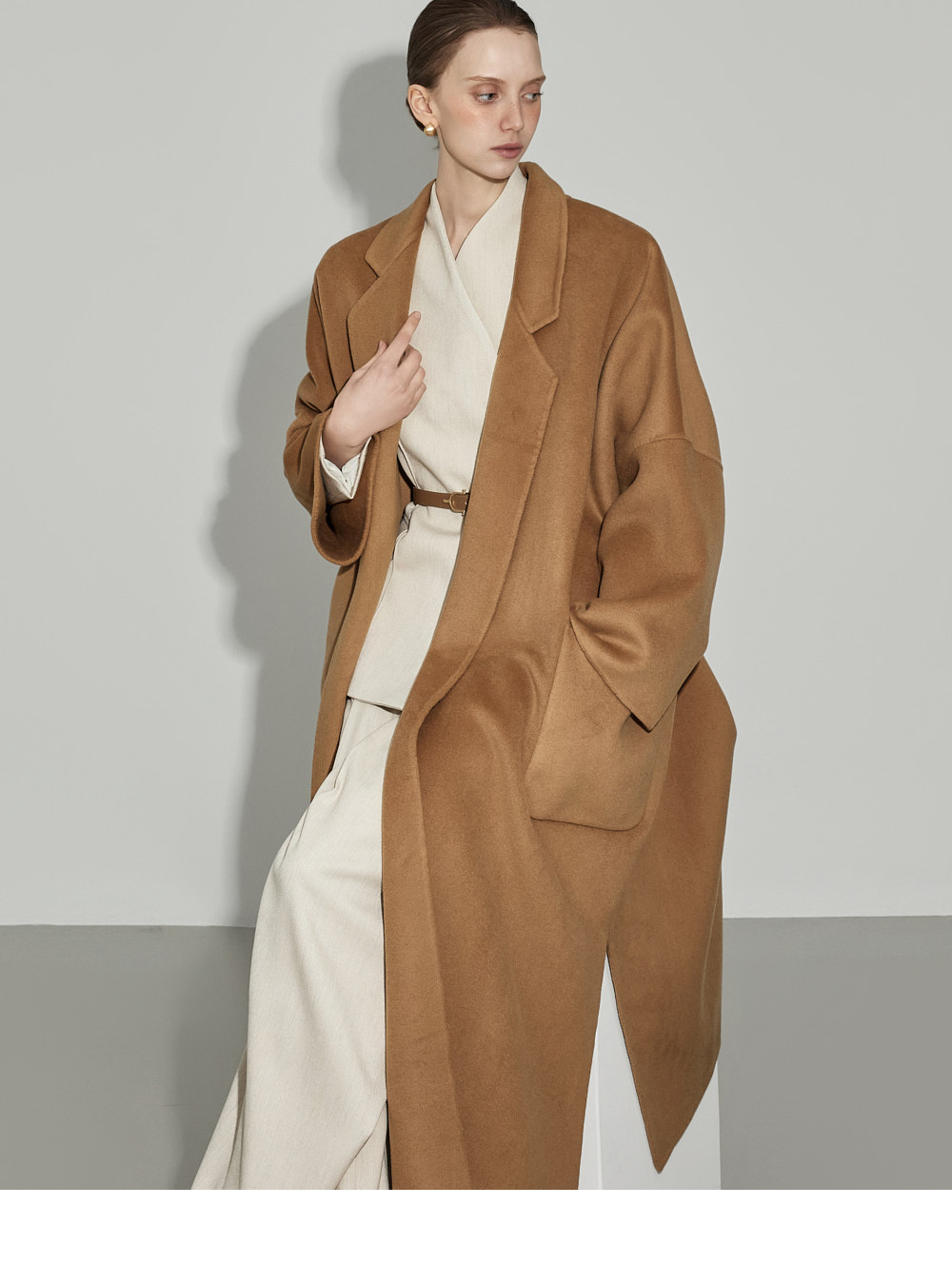 174CM模特,上下装均穿ONE码,象牙色。