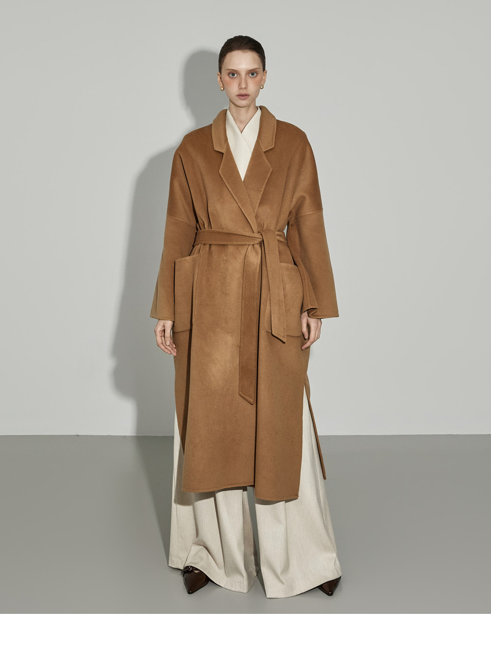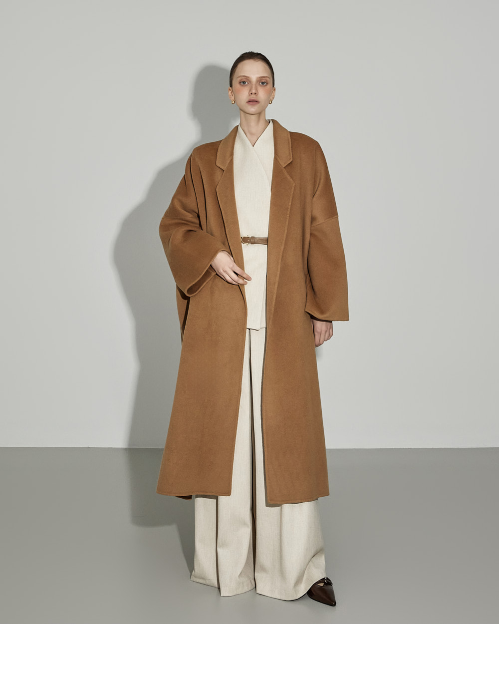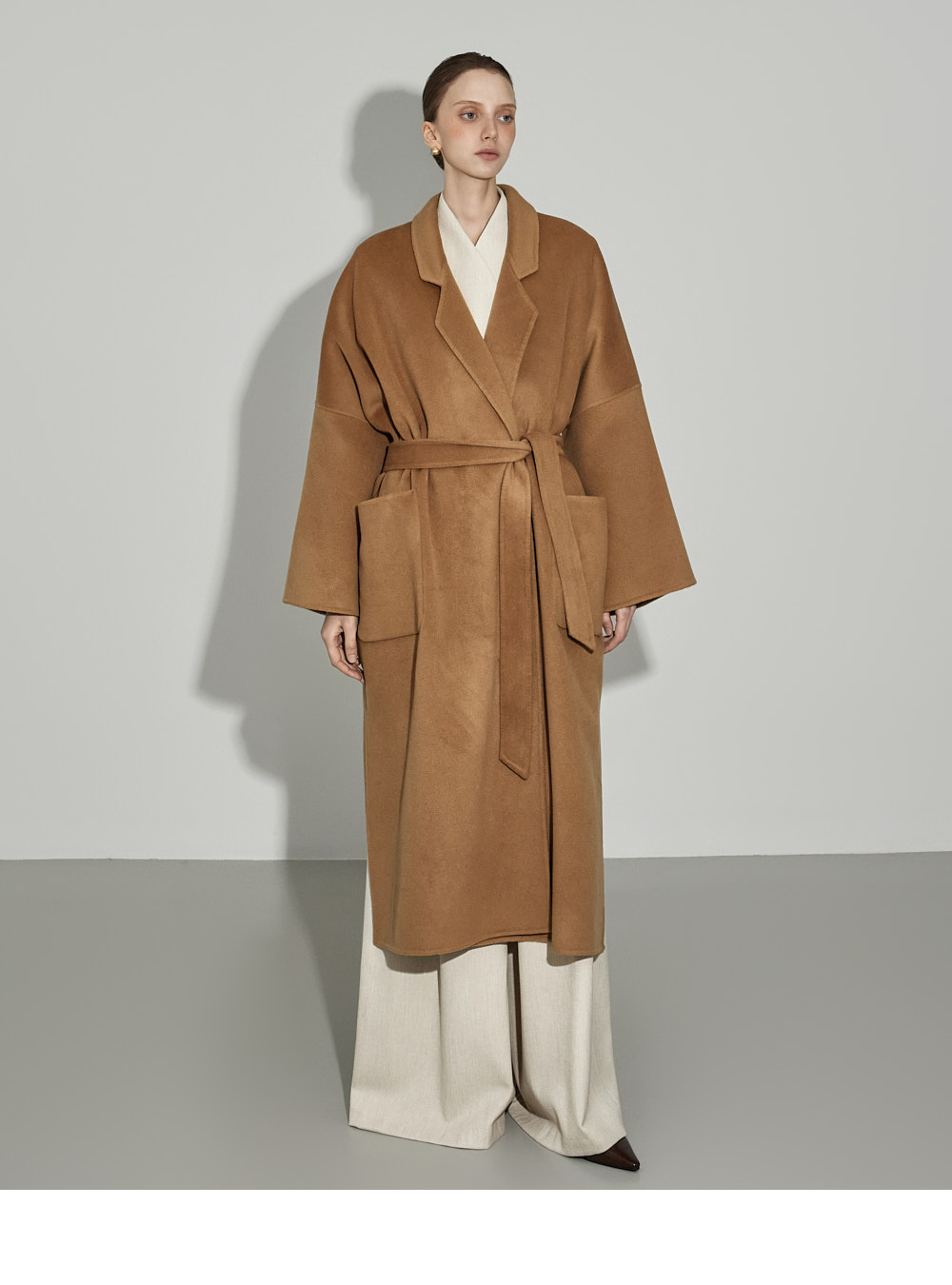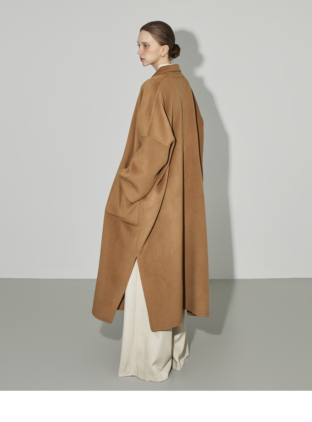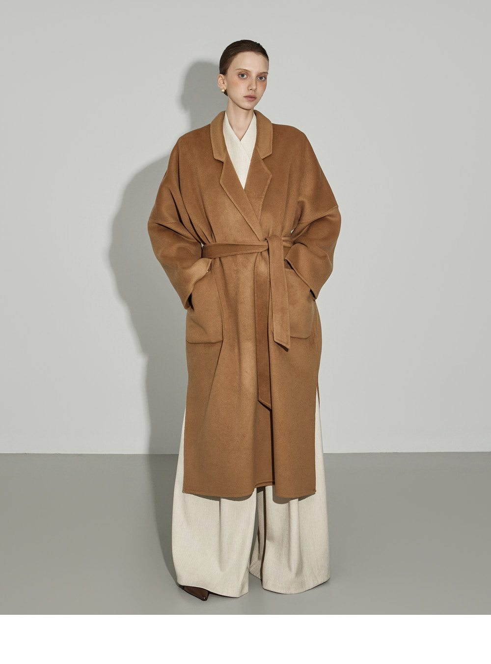 174CM模特,上下装均穿ONE码,象牙色。