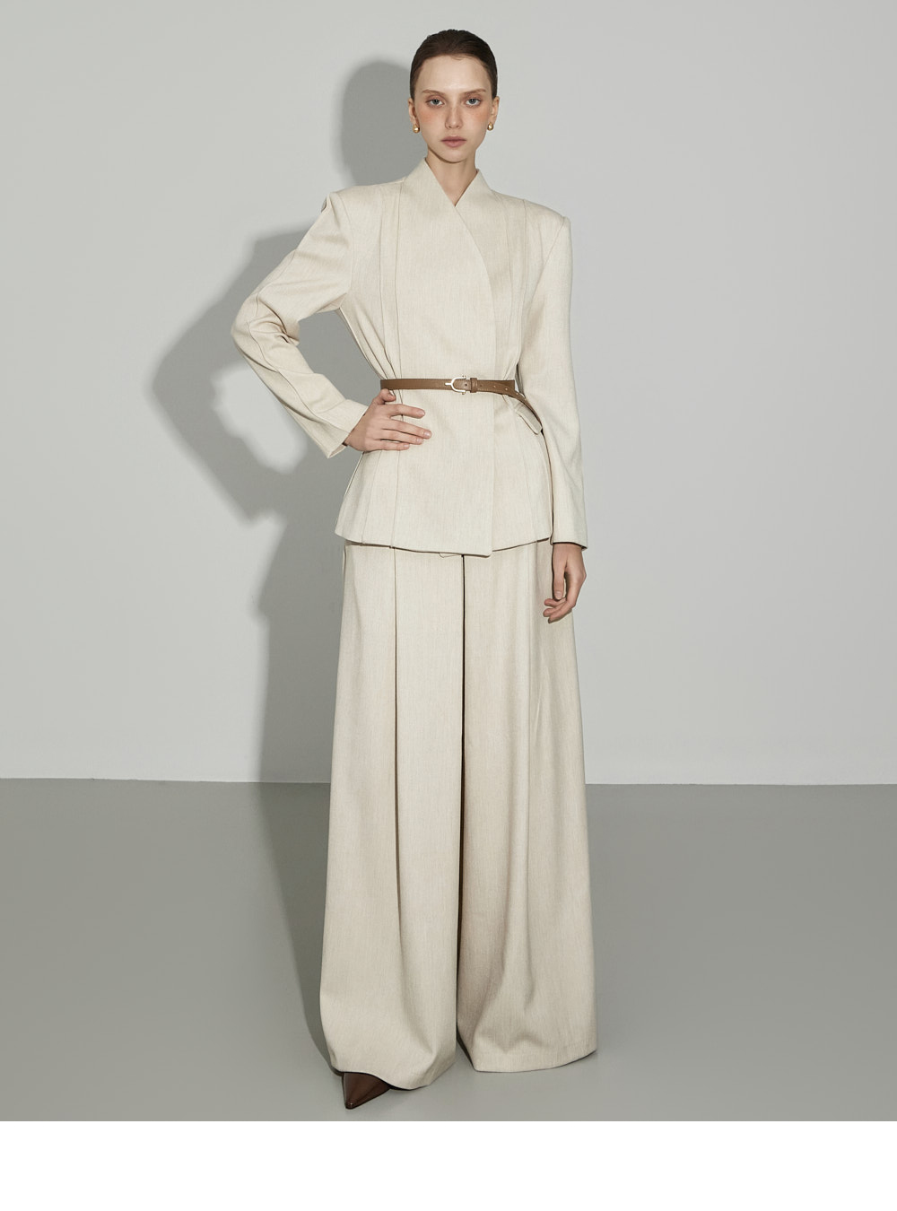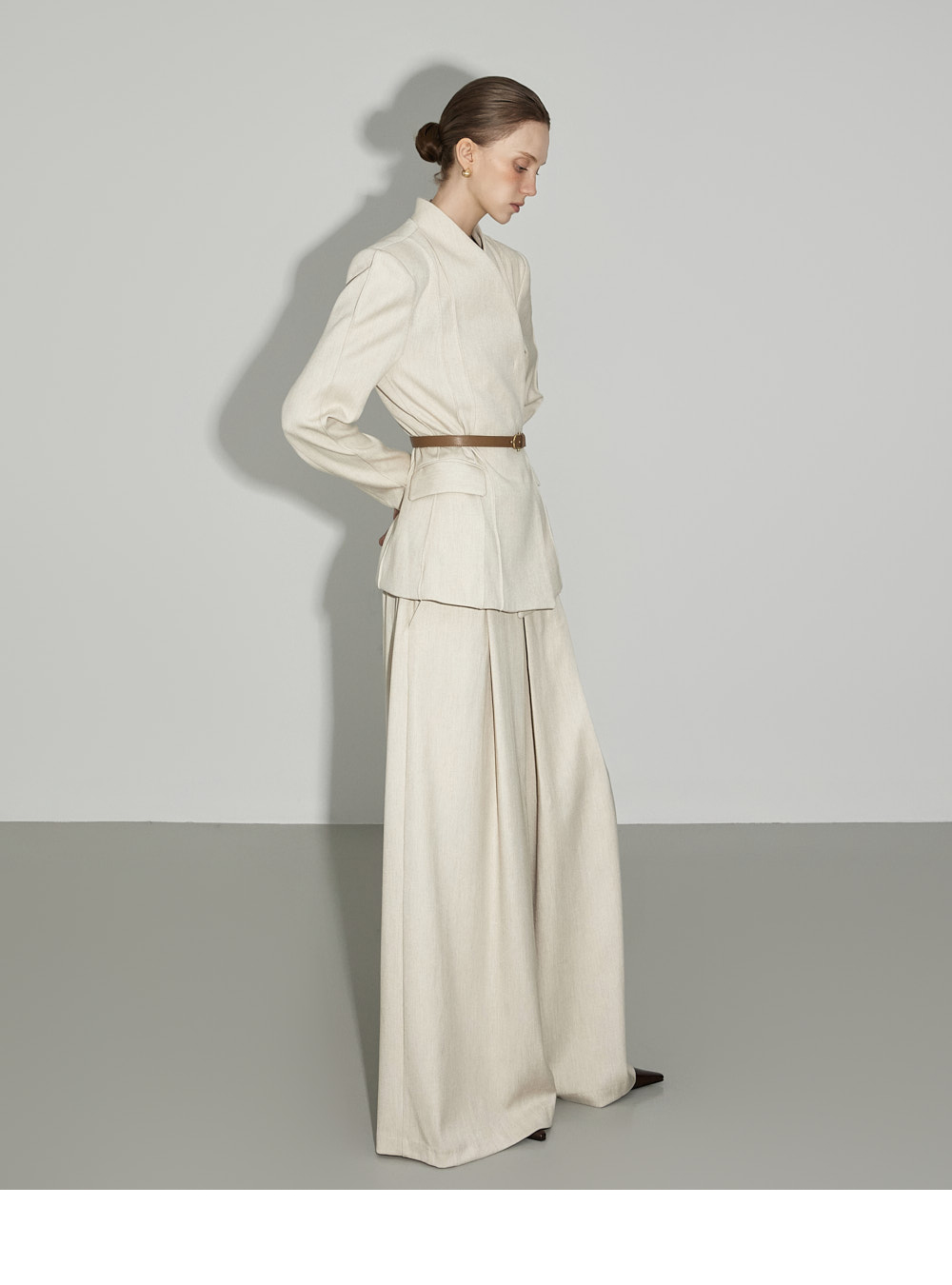 西裤为宽松轮廓,