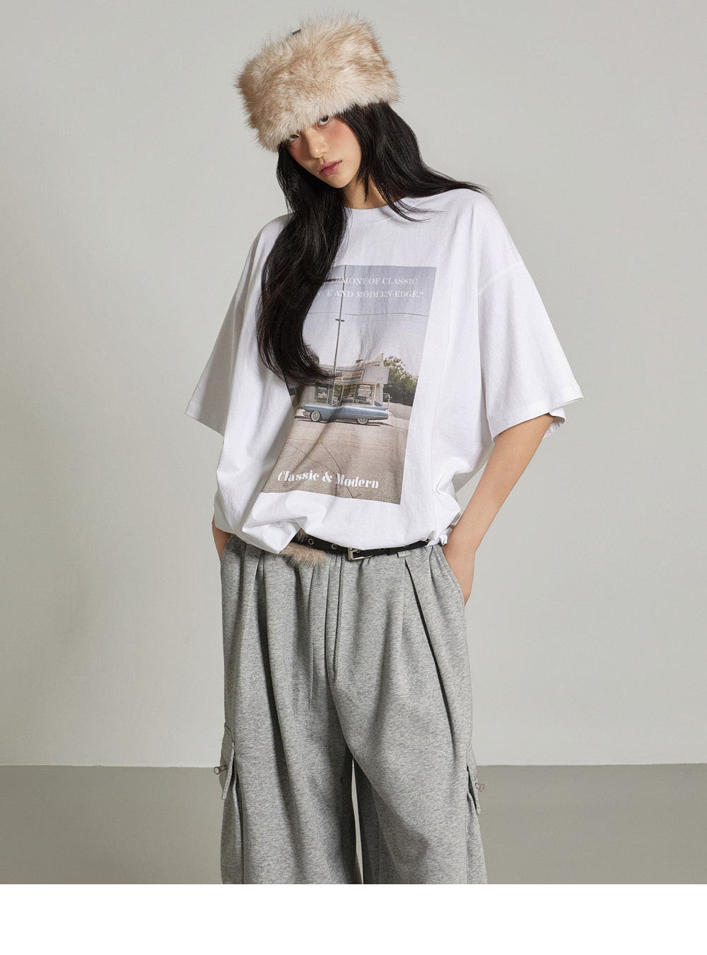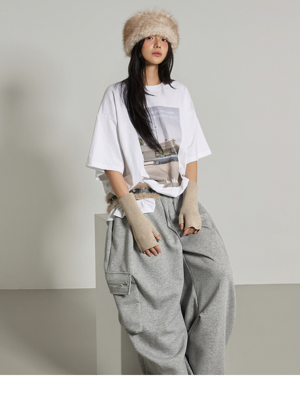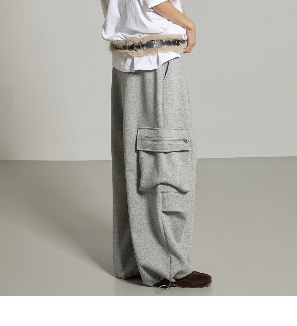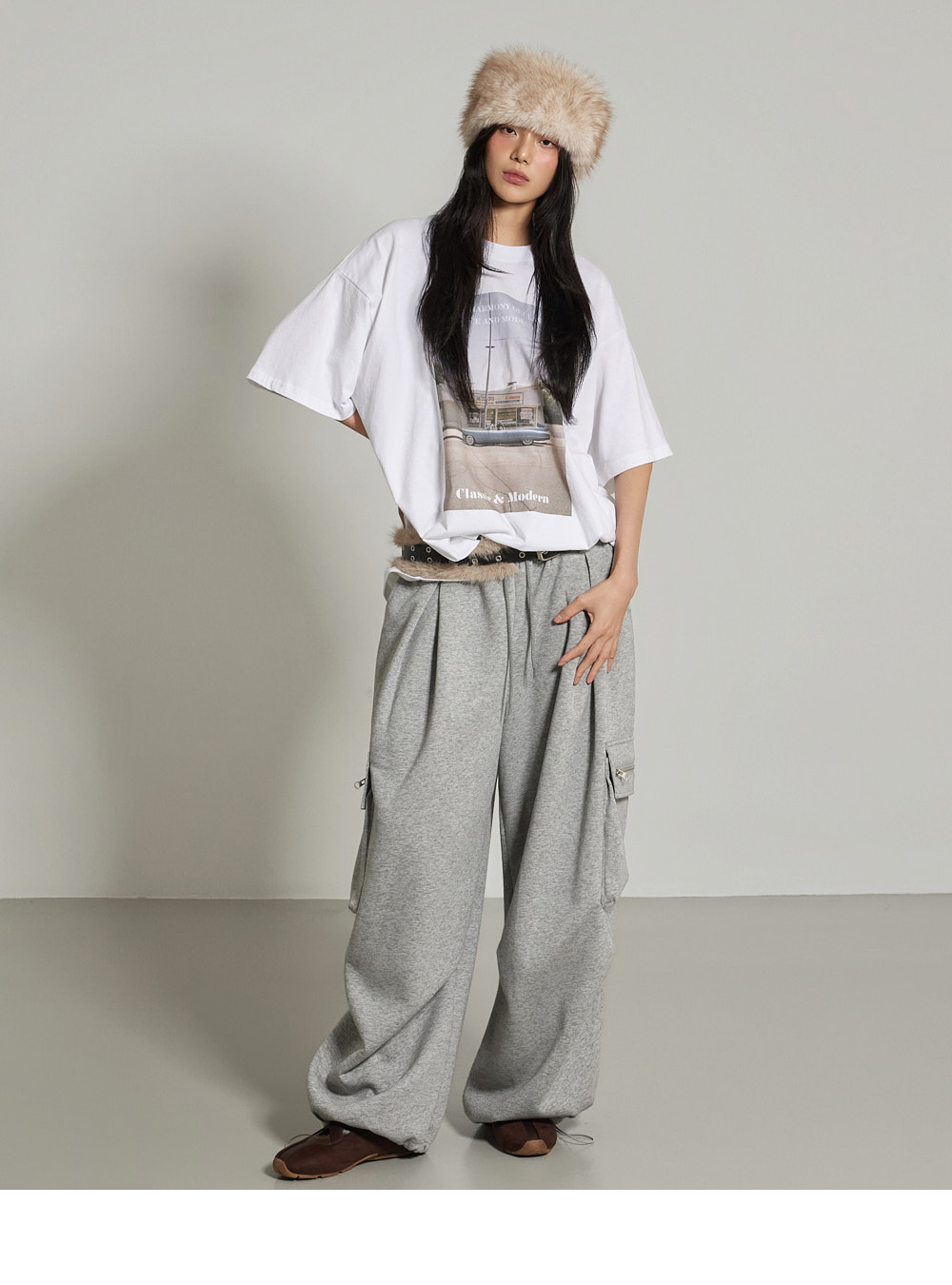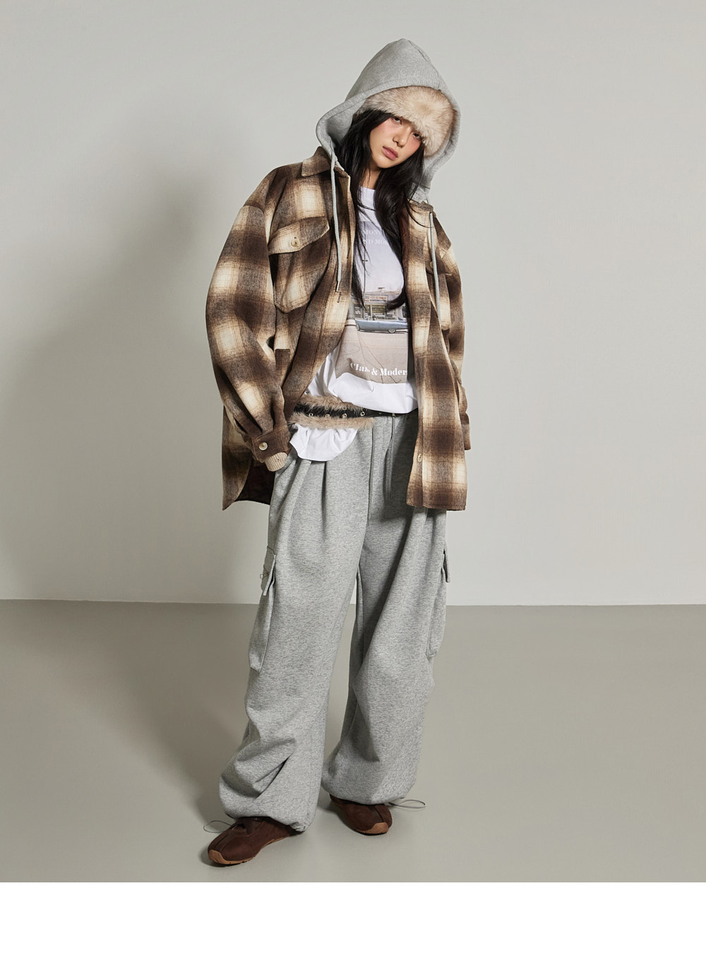 와이드핏 실루엣에 카고 포켓과 전면 핀턱 디테일