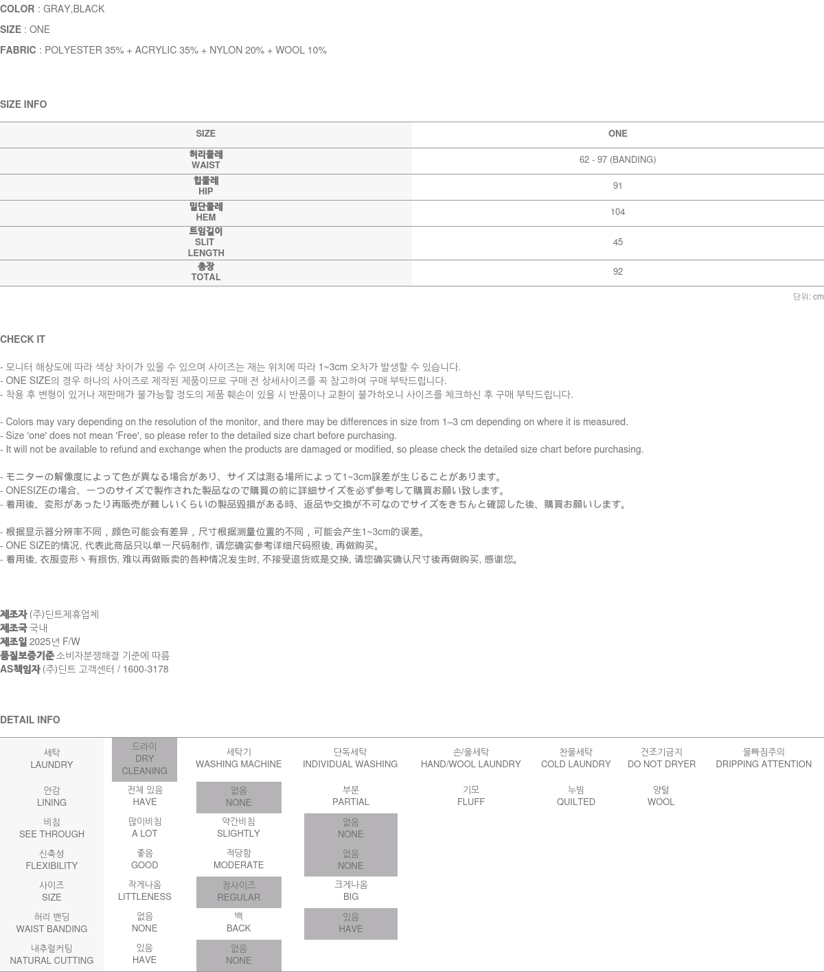關於售後服務 瑕疵商品, 或是布料瑕疵、不正確標註的尺碼或質料, 引起的問題, 將會爲您進行修復/車縫 → 交換 → 退貨處理 (換貨與退貨的實際舉例, 請參考 ”換貨與退貨“ 與 “無法進行換貨與退貨的情況”之說明.) A/S負責人與連絡電話:DINT.Inc (gbcs_dint@naver.com)