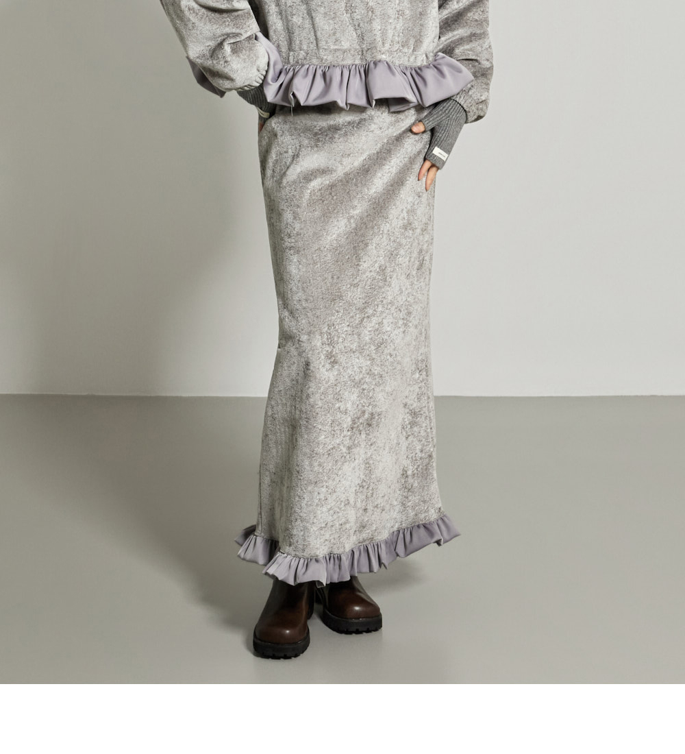 独特风格的裙子。 采用柔软的聚酯纤维、腈纶、尼龙和羊毛混纺材质,增加舒适的穿着感,ONE 尺码设计,可适合多种体型,轻松驾驭。 天鹅绒材质带来低调光泽与高级感,长款设计和基础直筒版型穿着无负担,下摆荷叶边增添亮点。 腰部松紧设计保证舒适感,既舒适又能为造型增添亮点,适合日常穿搭或带有女性气质的造型,应用广泛。 171CM 模特穿着 ONE 尺码,灰色。