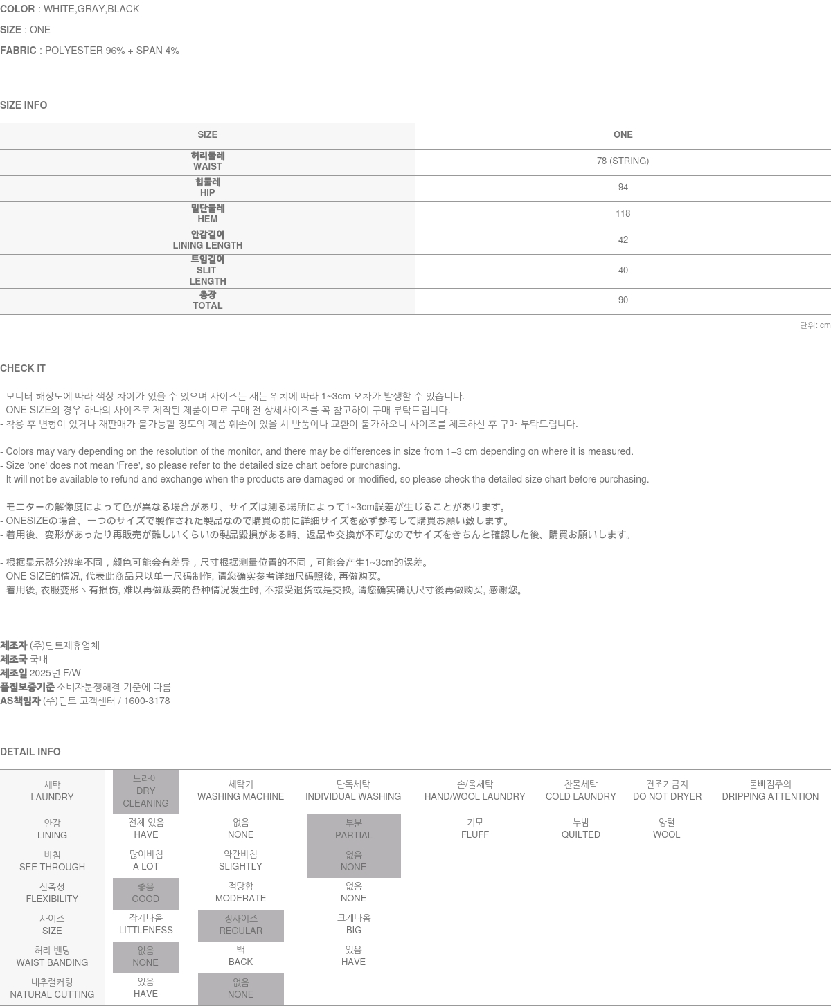 關於售後服務 瑕疵商品, 或是布料瑕疵、不正確標註的尺碼或質料, 引起的問題, 將會爲您進行修復/車縫 → 交換 → 退貨處理 (換貨與退貨的實際舉例, 請參考 ”換貨與退貨“ 與 “無法進行換貨與退貨的情況”之說明.) A/S負責人與連絡電話:DINT.Inc (gbcs_dint@naver.com)