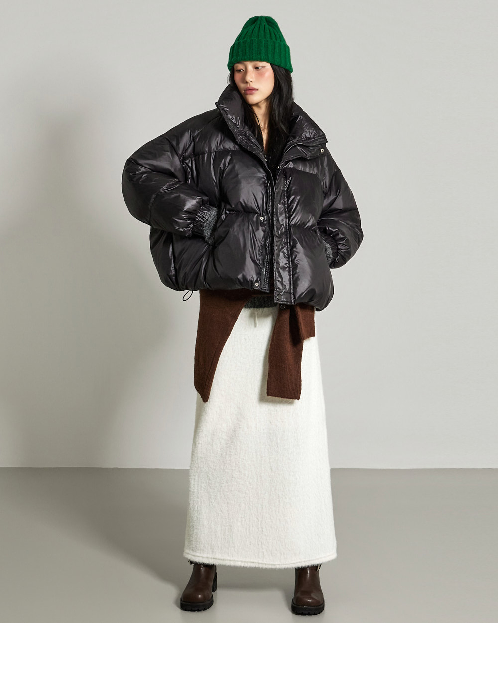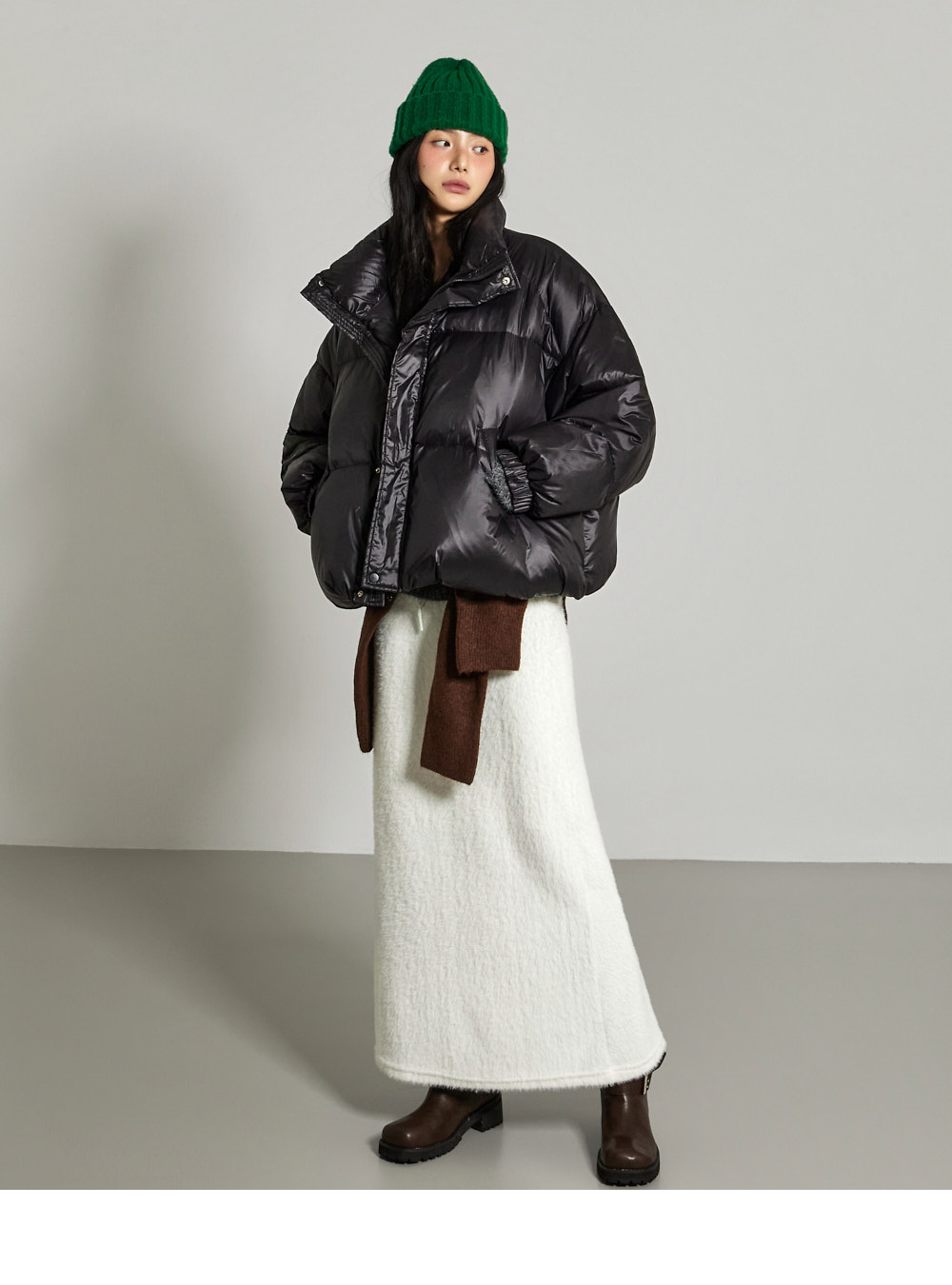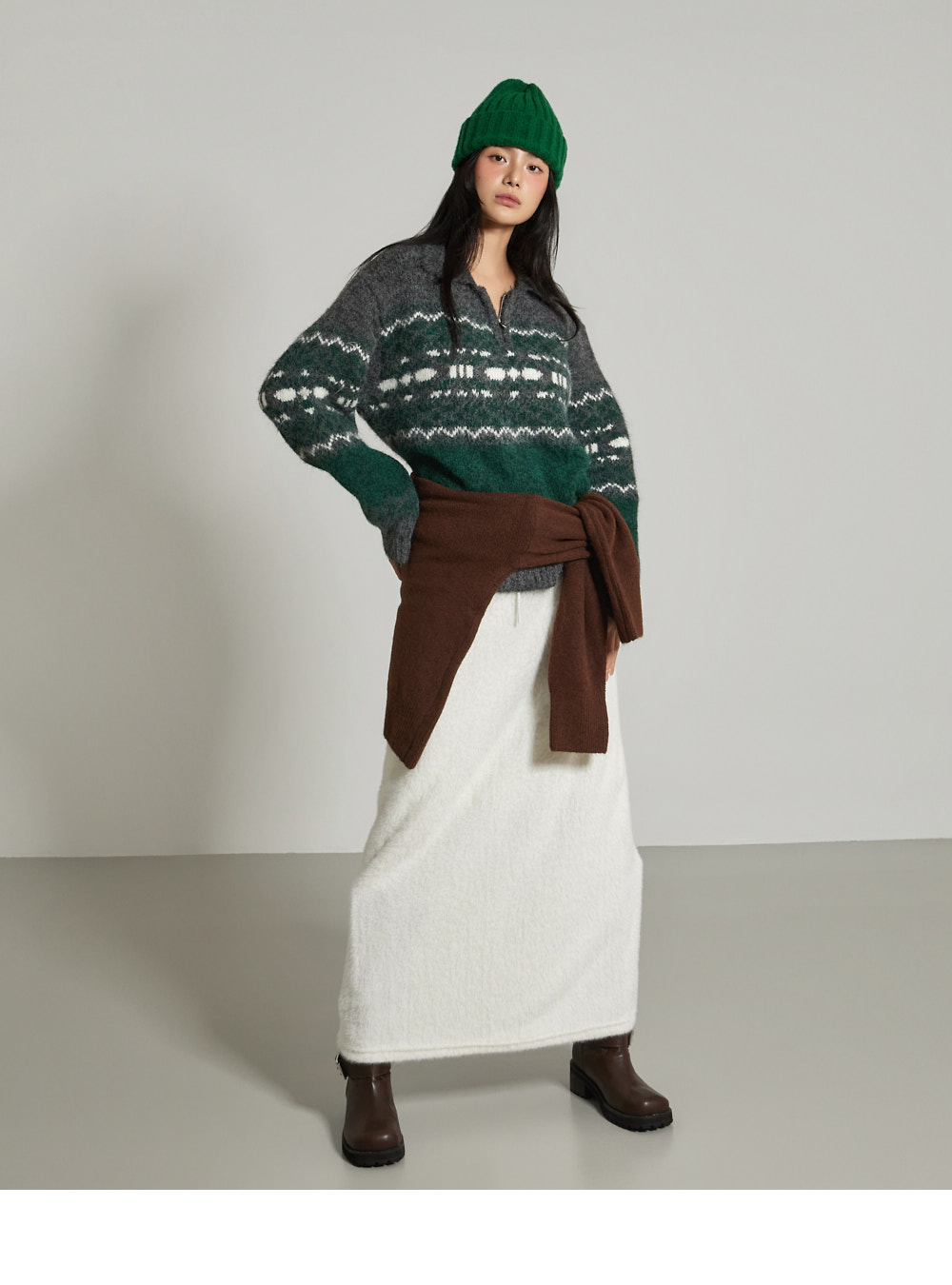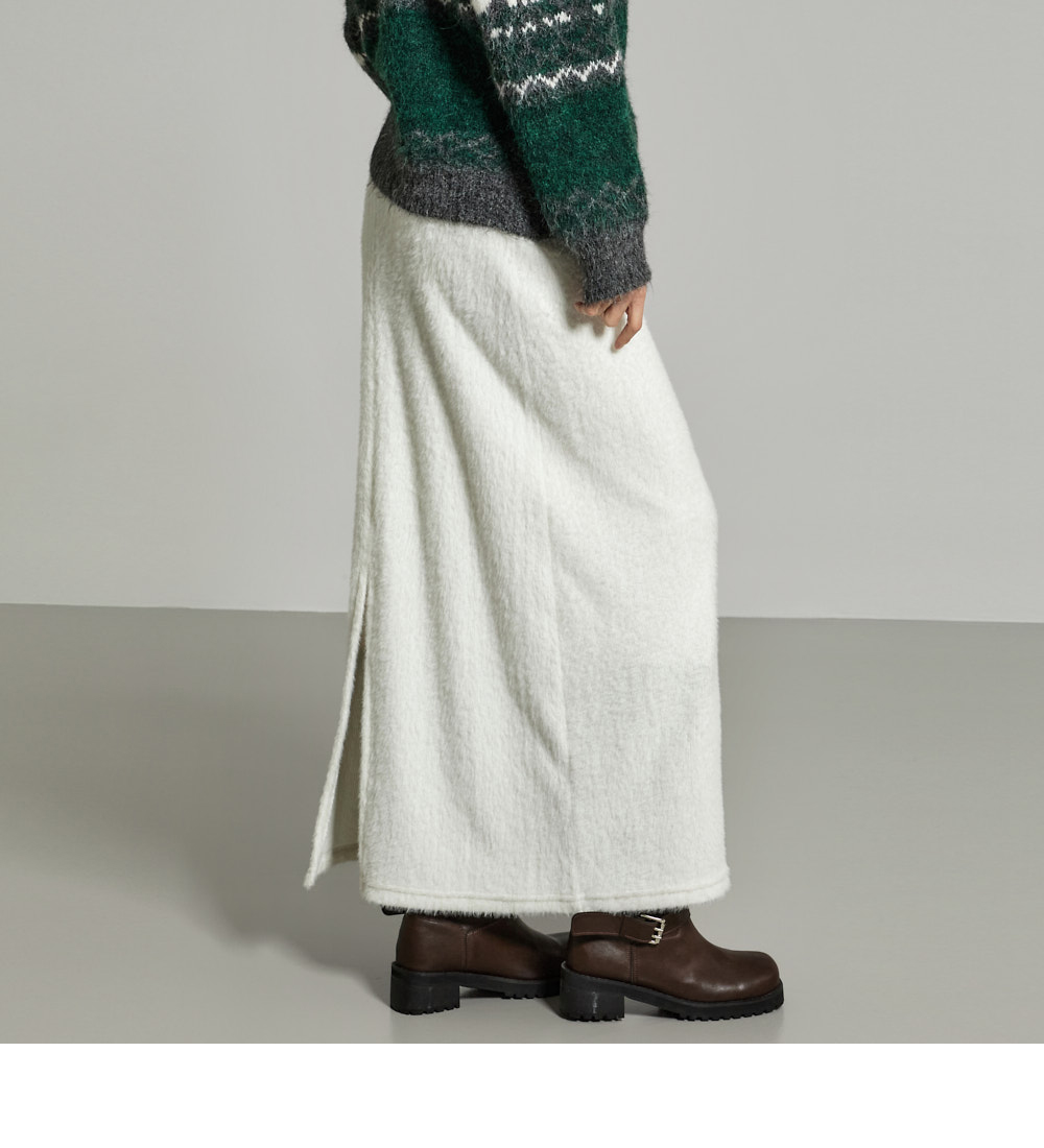 这是一条散发温暖氛围感的长裙。采用聚酯纤维与氨纶混纺面料,柔软舒适,ONE 尺码设计,弹性良好,穿着舒适方便。宽松垂坠的版型和长裙长度,自然呈现流畅线条,安哥拉面料强调 F/W 季节的温暖感。腰部抽绳便于调节尺寸,后开衩增加活动便利性,局部里衬提升穿着稳定性,为您打造温暖舒适的造型。171CM 模特,ONE 尺码,白色。
