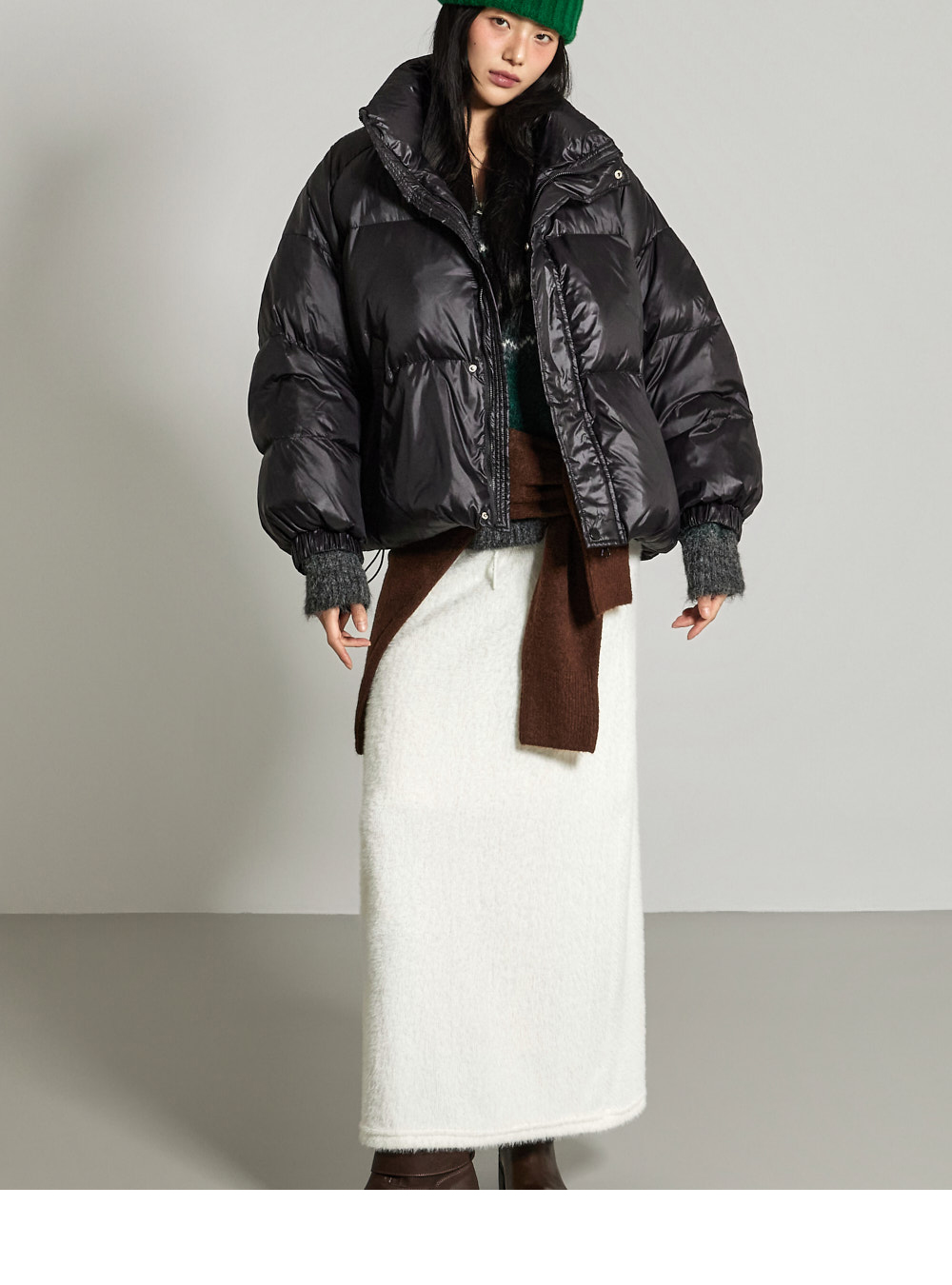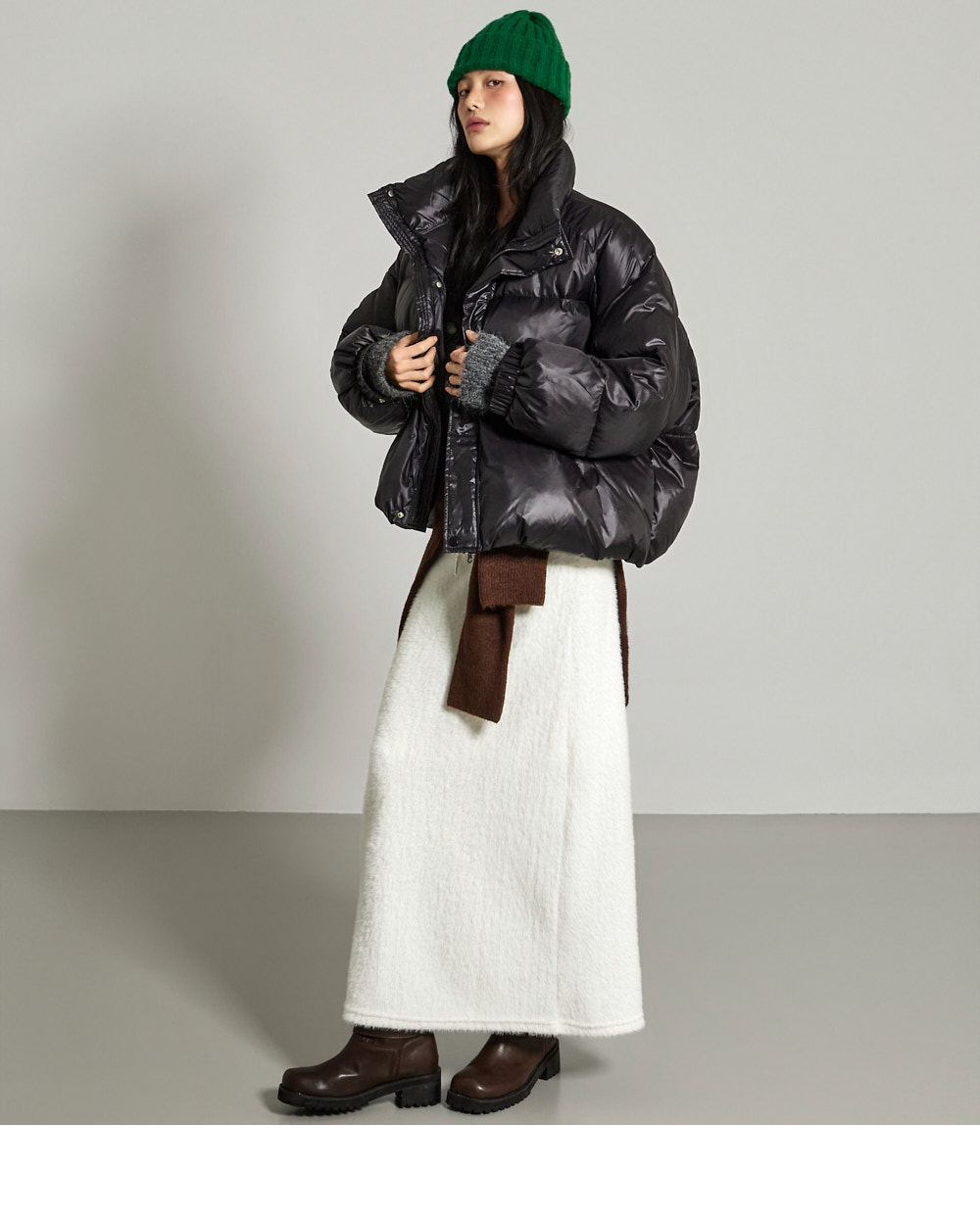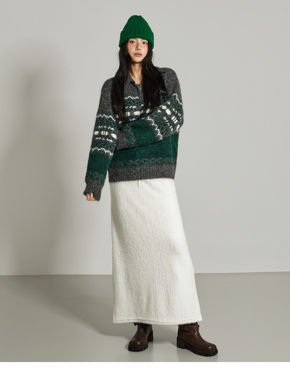 这是一条散发温暖氛围感的长裙。采用聚酯纤维与氨纶混纺面料,柔软舒适,ONE 尺码设计,弹性良好,穿着舒适方便。宽松垂坠的版型和长裙长度,自然呈现流畅线条,安哥拉面料强调 F/W 季节的温暖感。腰部抽绳便于调节尺寸,后开衩增加活动便利性,局部里衬提升穿着稳定性,为您打造温暖舒适的造型。171CM 模特,ONE 尺码,白色。