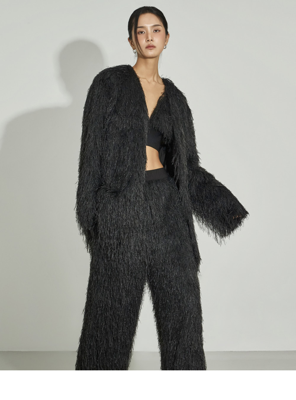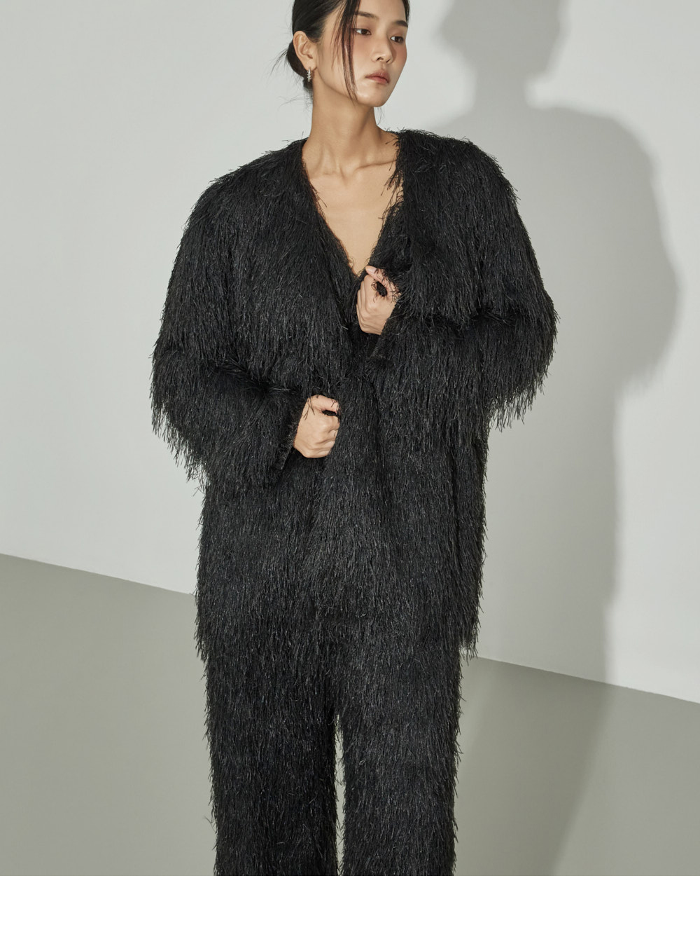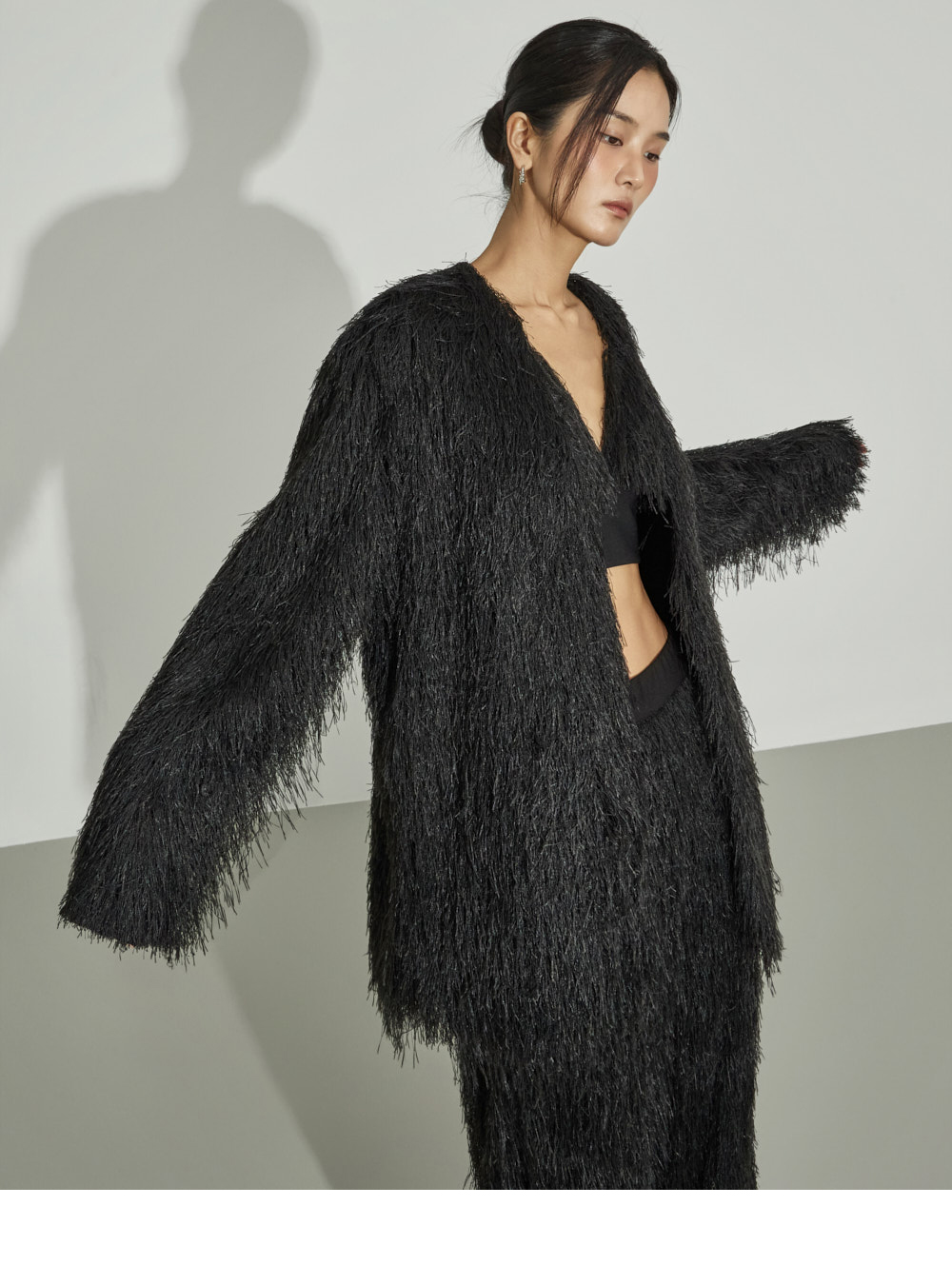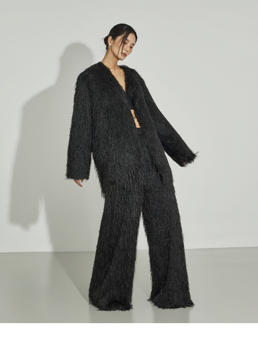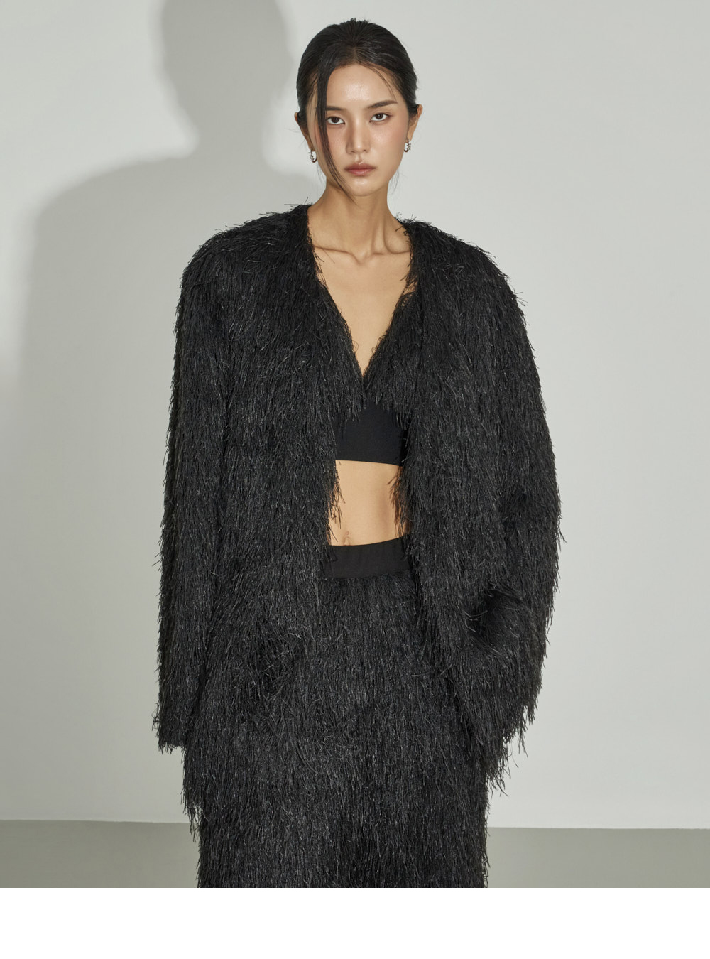 这是一款突显独特氛围的无领夹克。 采用聚酯纤维与氨纶混纺面料制作,穿着轻盈舒适,ONE尺码设计,适合任何人宽松穿着。 使用质感鲜明的翅膀纱面料,增添不常见的亮点,随着动作,呈现出柔和流动的轻盈轮廓。 无领设计与宽松版型,打造自然柔美的氛围,前置纽扣闭合,方便造型搭配。 可单穿作为存在感十足的外套,即使轻搭在基础款单品上,也能营造独特而柔美的氛围。 模特身高173CM,穿着ONE尺码,颜色为BLACK。