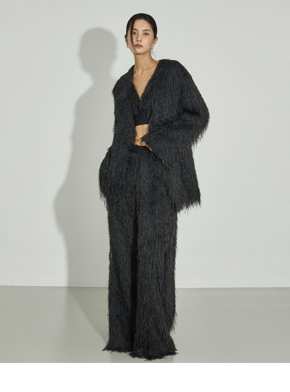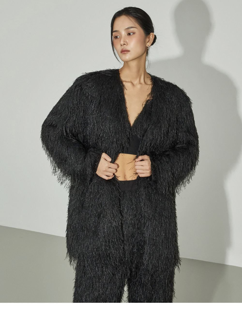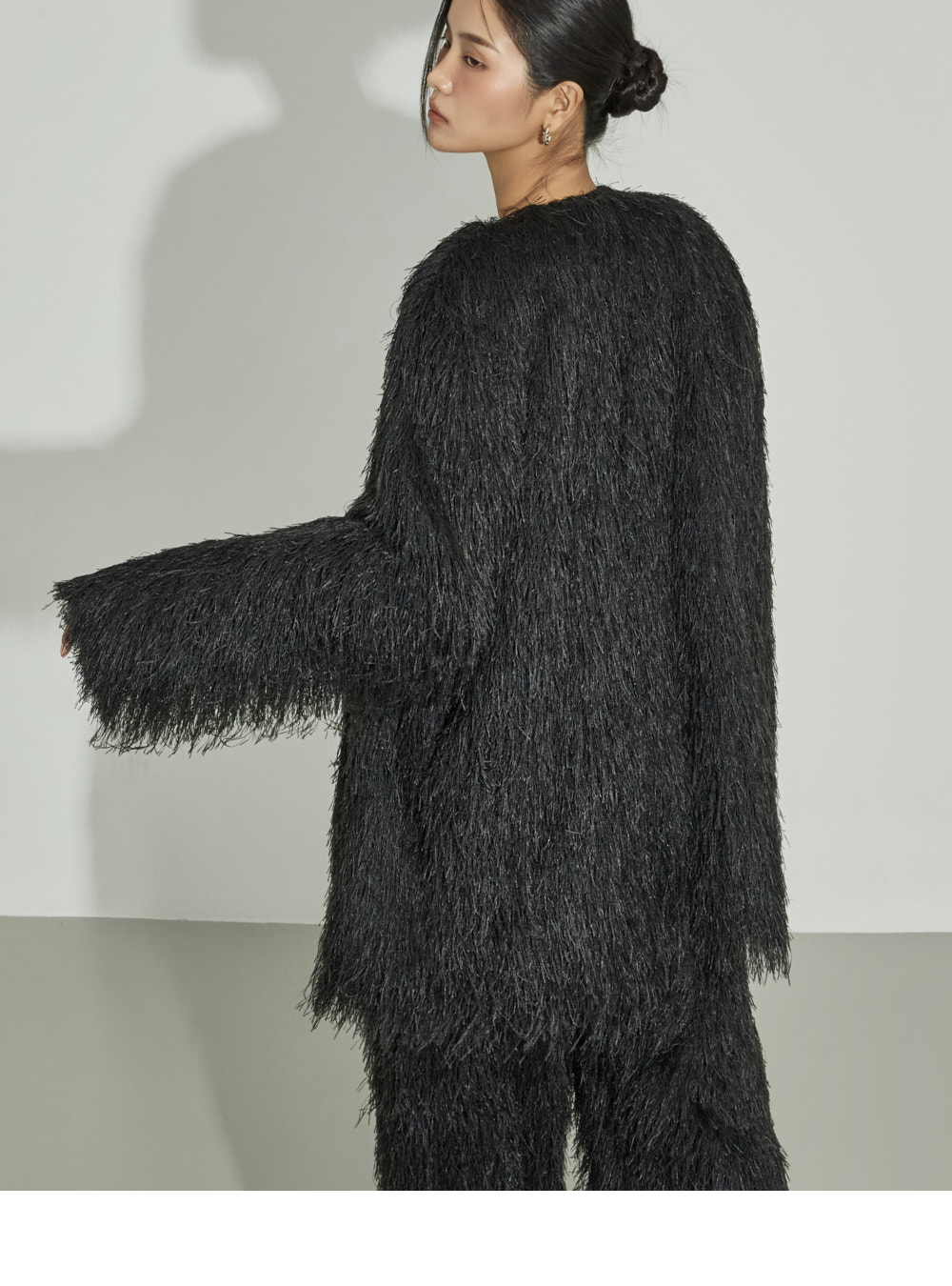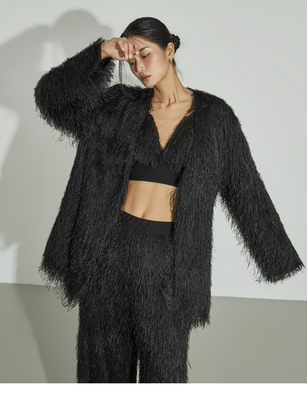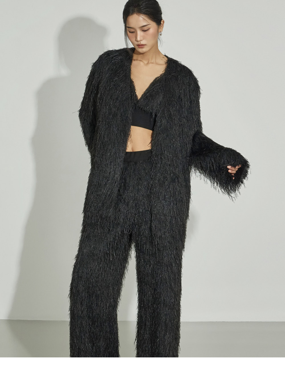这是一款突显独特氛围的无领夹克。 采用聚酯纤维与氨纶混纺面料制作,穿着轻盈舒适,ONE尺码设计,适合任何人宽松穿着。 使用质感鲜明的翅膀纱面料,增添不常见的亮点,随着动作,呈现出柔和流动的轻盈轮廓。 无领设计与宽松版型,打造自然柔美的氛围,前置纽扣闭合,方便造型搭配。 可单穿作为存在感十足的外套,即使轻搭在基础款单品上,也能营造独特而柔美的氛围。 模特身高173CM,穿着ONE尺码,颜色为BLACK。