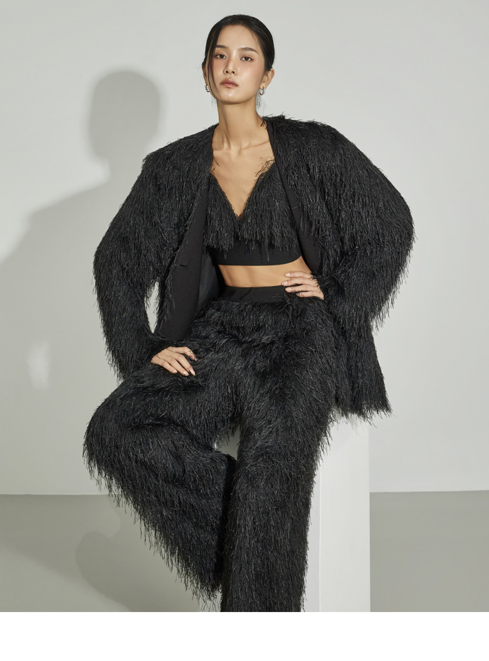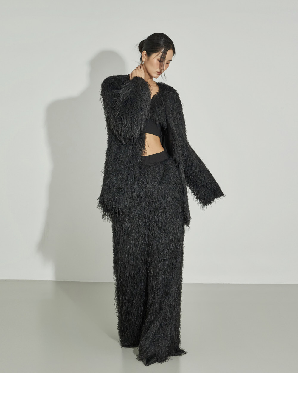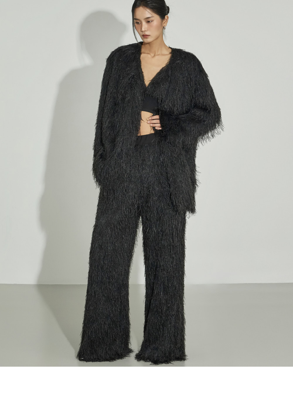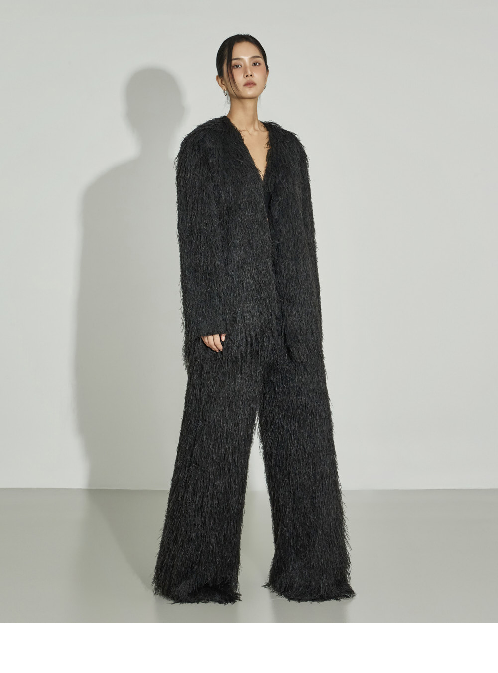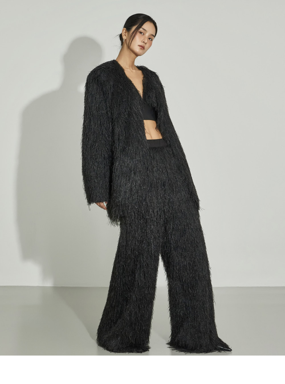 这是一款突显独特氛围的无领夹克。 采用聚酯纤维与氨纶混纺面料制作,穿着轻盈舒适,ONE尺码设计,适合任何人宽松穿着。 使用质感鲜明的翅膀纱面料,增添不常见的亮点,随着动作,呈现出柔和流动的轻盈轮廓。 无领设计与宽松版型,打造自然柔美的氛围,前置纽扣闭合,方便造型搭配。 可单穿作为存在感十足的外套,即使轻搭在基础款单品上,也能营造独特而柔美的氛围。 模特身高173CM,穿着ONE尺码,颜色为BLACK。