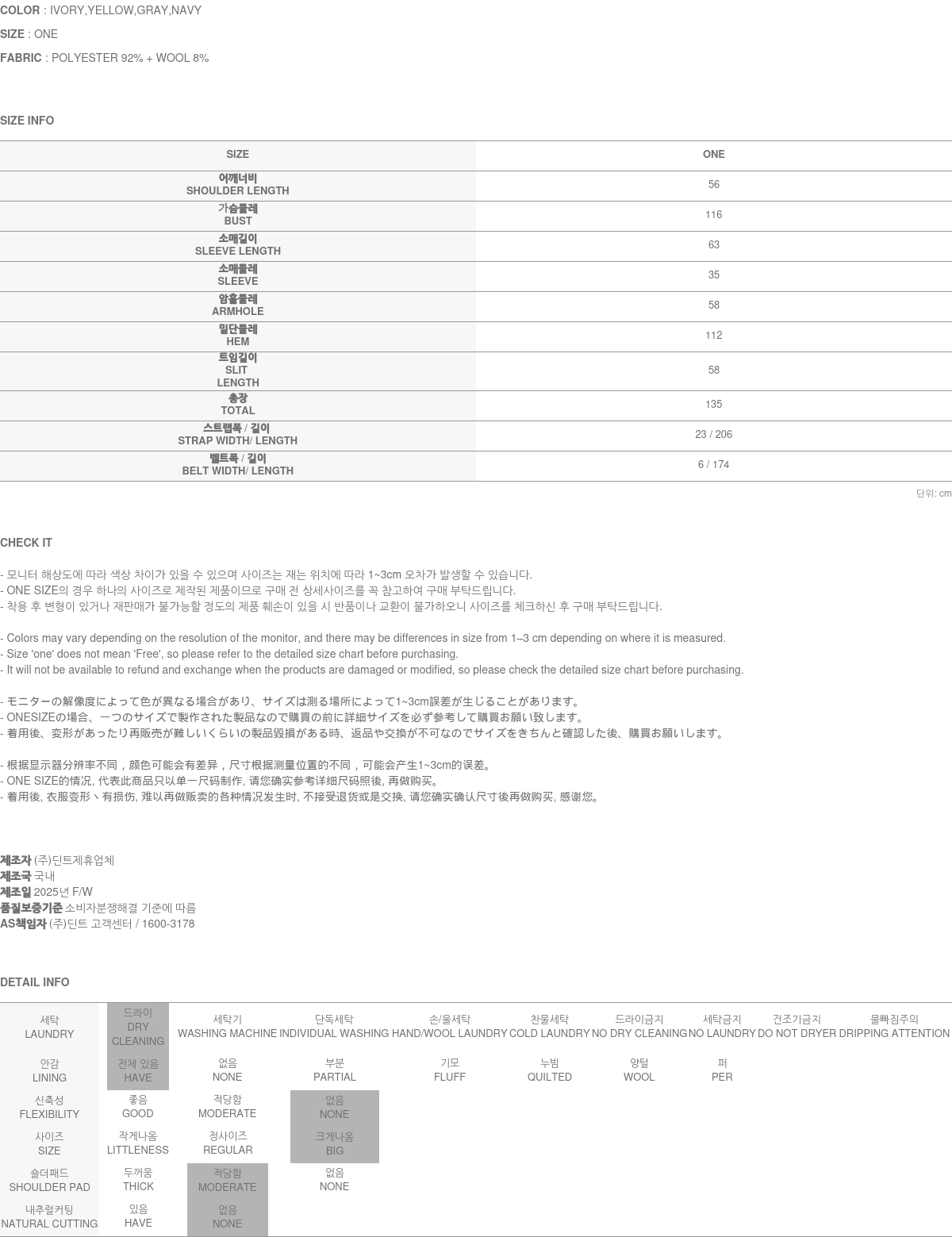 • DINT的所有商品, 使用一般洗滌或是烘乾機, 皆有可能成爲變形或是商品損傷的原因, 建議您使用乾洗.
