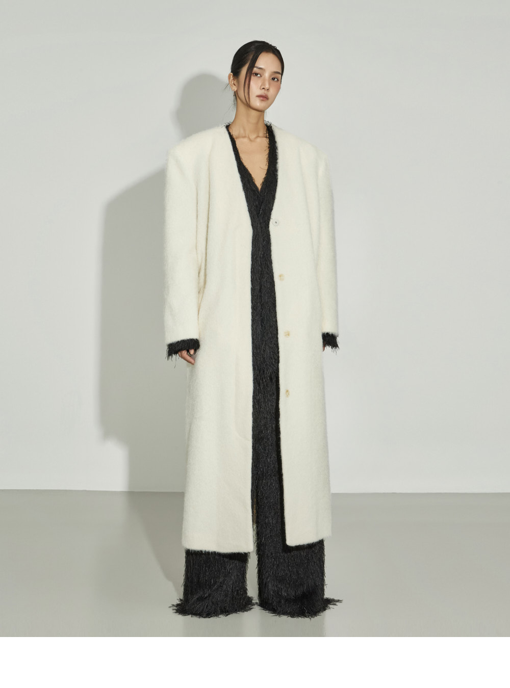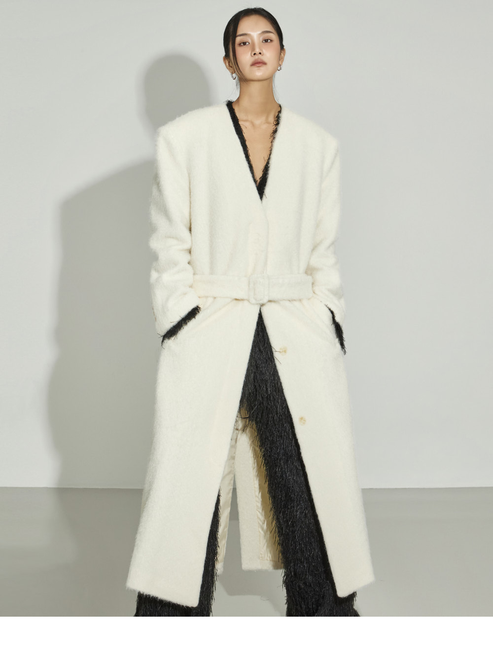前置按扣与隐藏纽扣闭合,收边整洁利落。