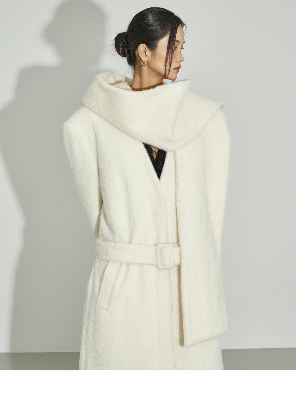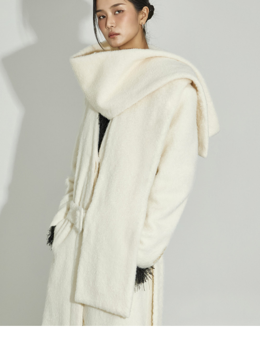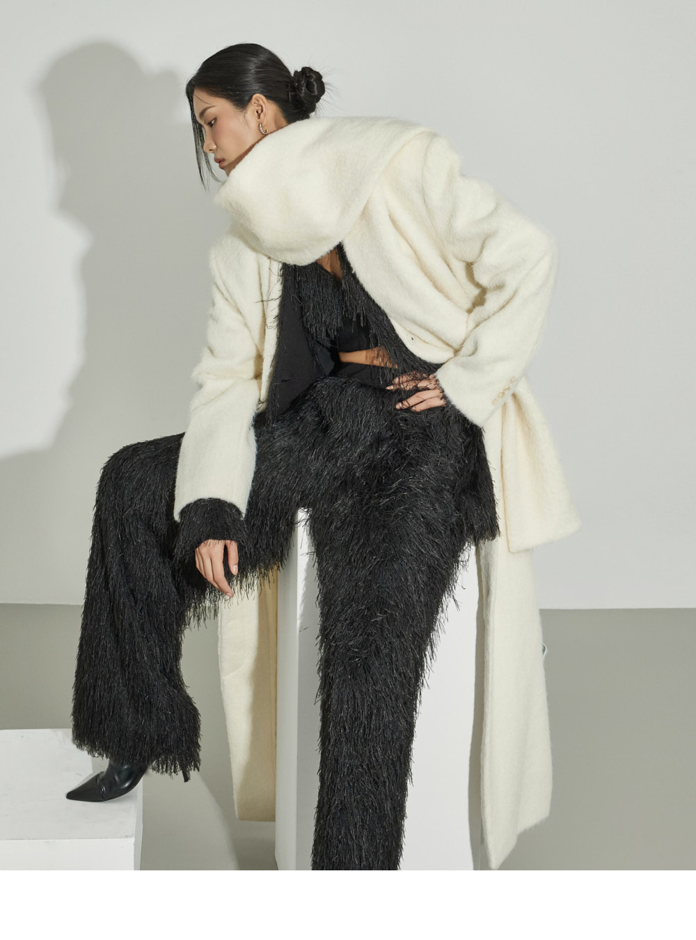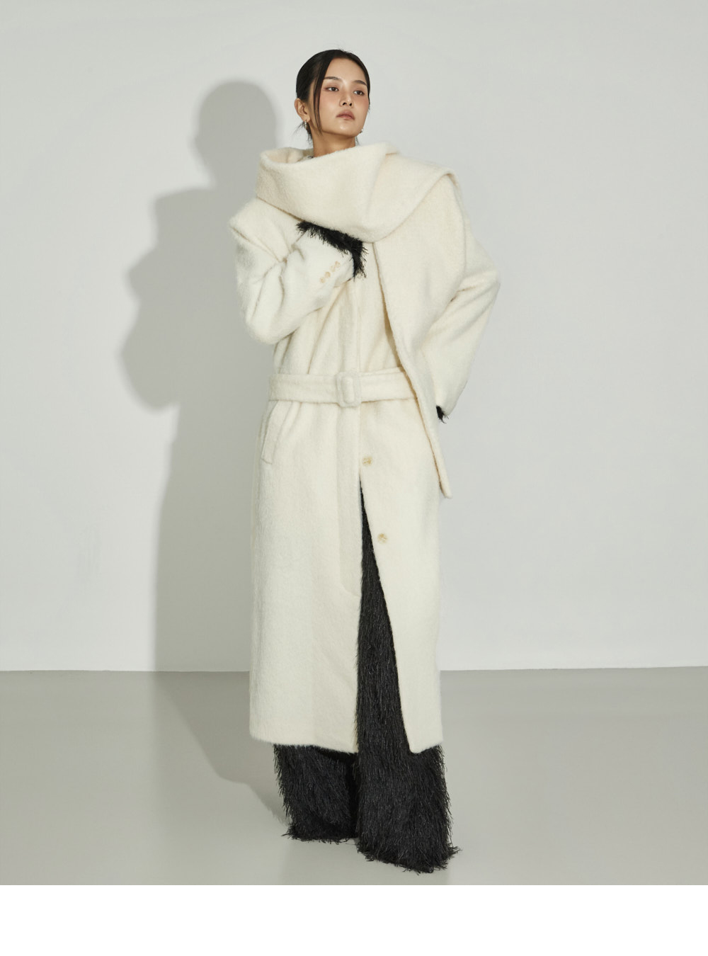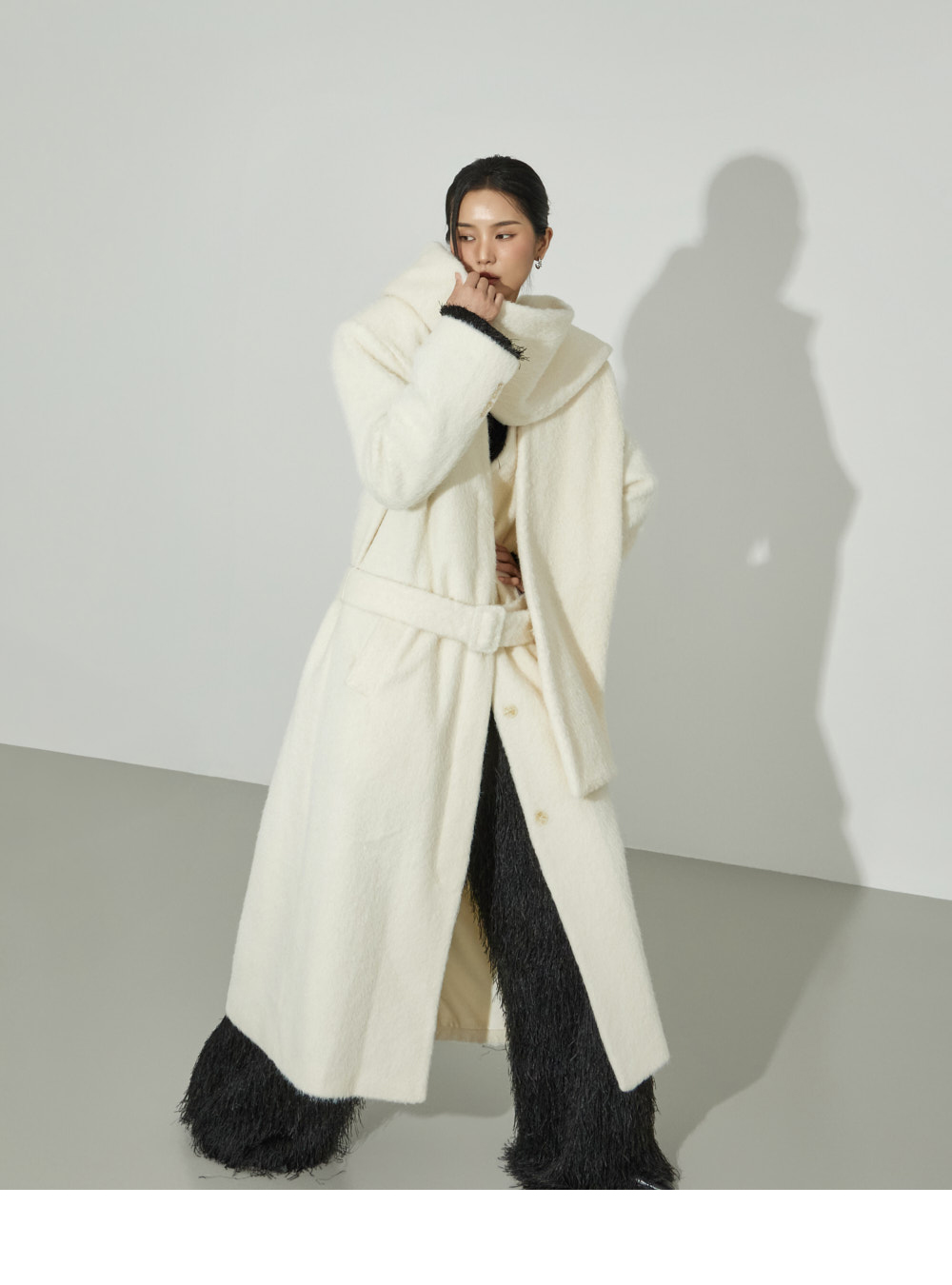 这是一款现代休闲风格的连帽抽绳套装大衣。