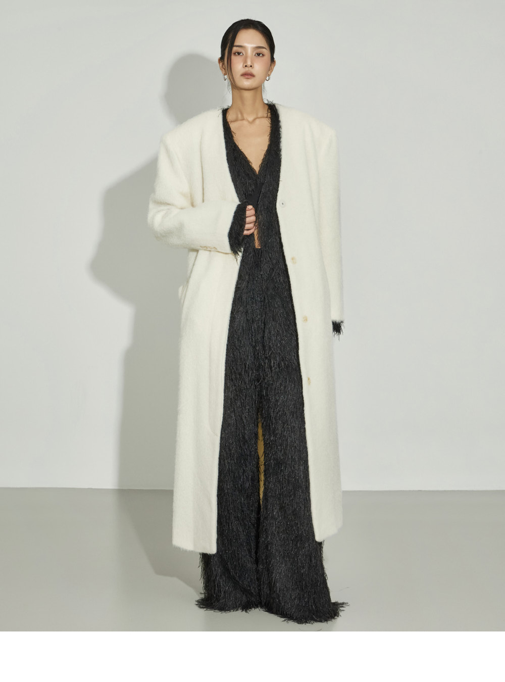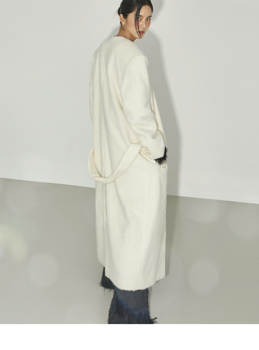 模特身高173CM,穿着ONE尺码,颜色为象牙白。