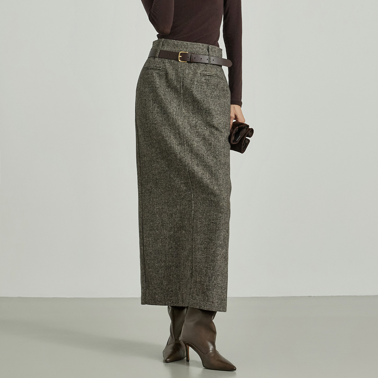 这是一款散发高级气质的裙子。 采用羊毛与聚酯混纺面料制作,兼具坚实的质感与舒适的穿着感,提供S、M尺码,可根据体型选择。 长款H型轮廓干净利落,展现修长纤细的线条感。 前侧假口袋增添极简细节,后侧拉链闭合,穿着稳固安心。 此外,后开衩设计即使是长裙也能提供舒适的活动空间。两侧口袋和部分内衬兼顾实用性与穿着舒适感。 从正式场合到通勤造型,都能轻松搭配,是一款实用性极高的单品。 模特身高173CM,穿着S尺码,颜色为BLACK。