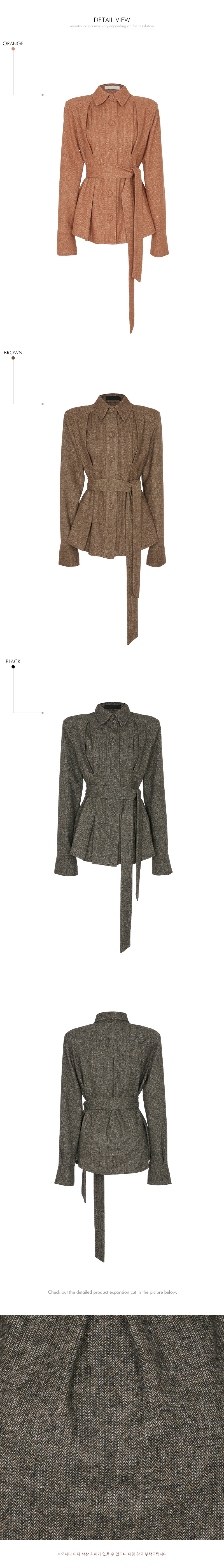 衬衫前幅褶皱细节自然修饰线条,收紧腰部比例,