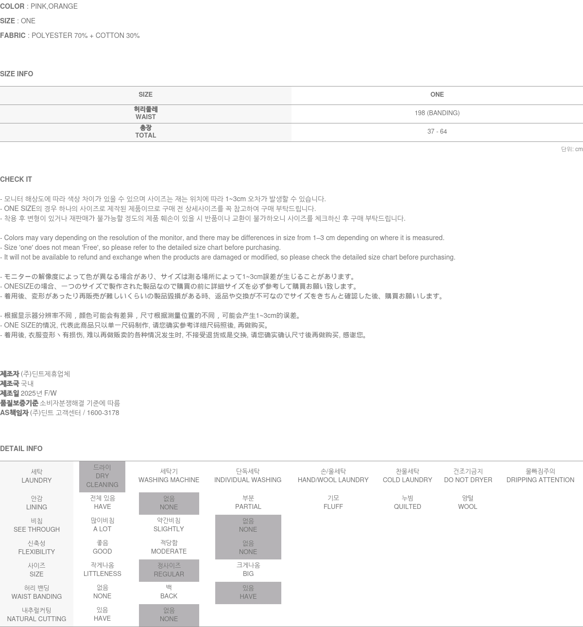 • DINT的所有商品, 使用一般洗滌或是烘乾機, 皆有可能成爲變形或是商品損傷的原因, 建議您使用乾洗.