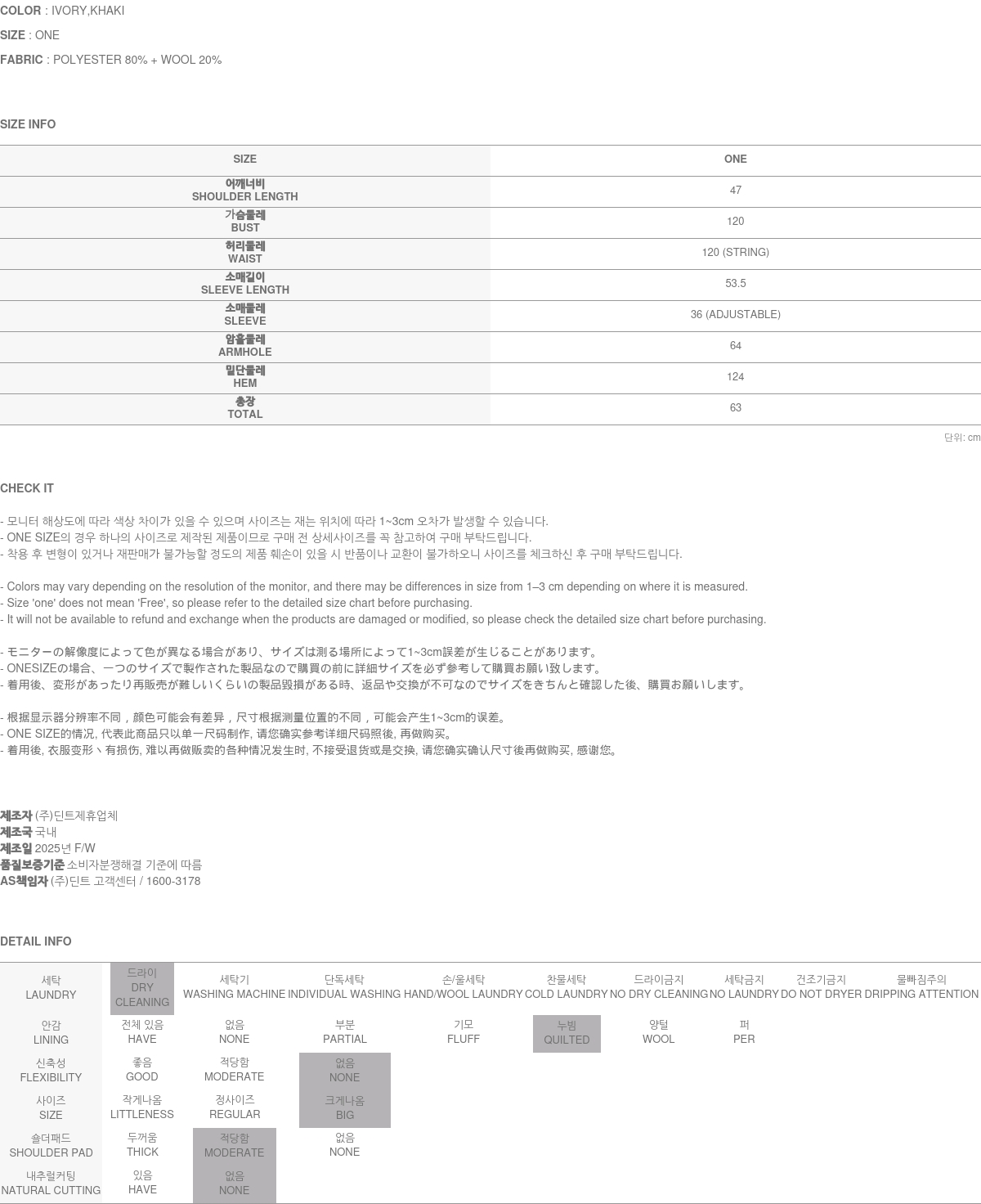 • DINT的所有商品, 使用一般洗滌或是烘乾機, 皆有可能成爲變形或是商品損傷的原因, 建議您使用乾洗.