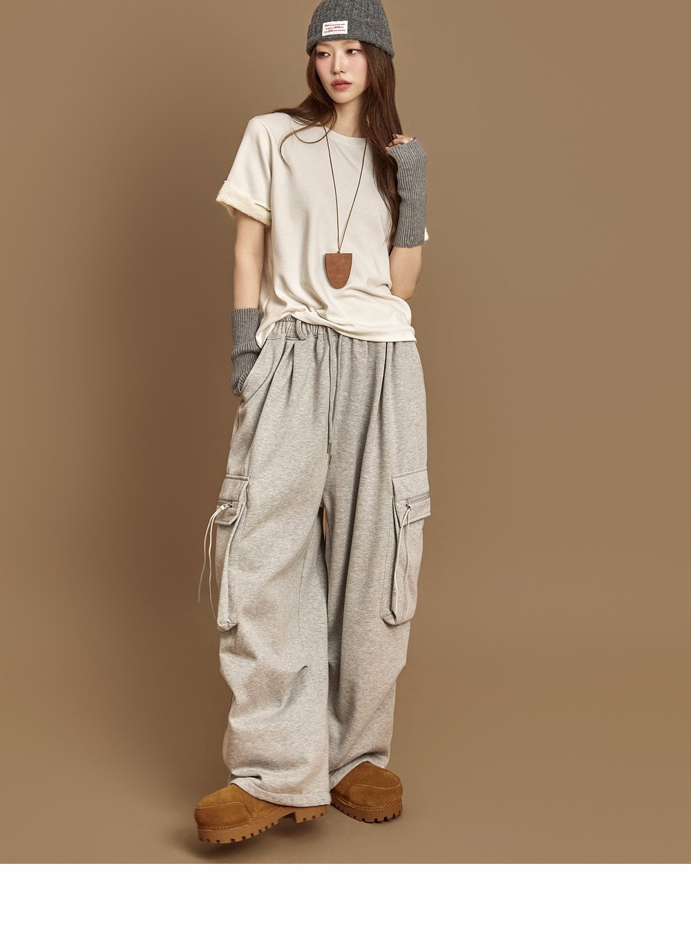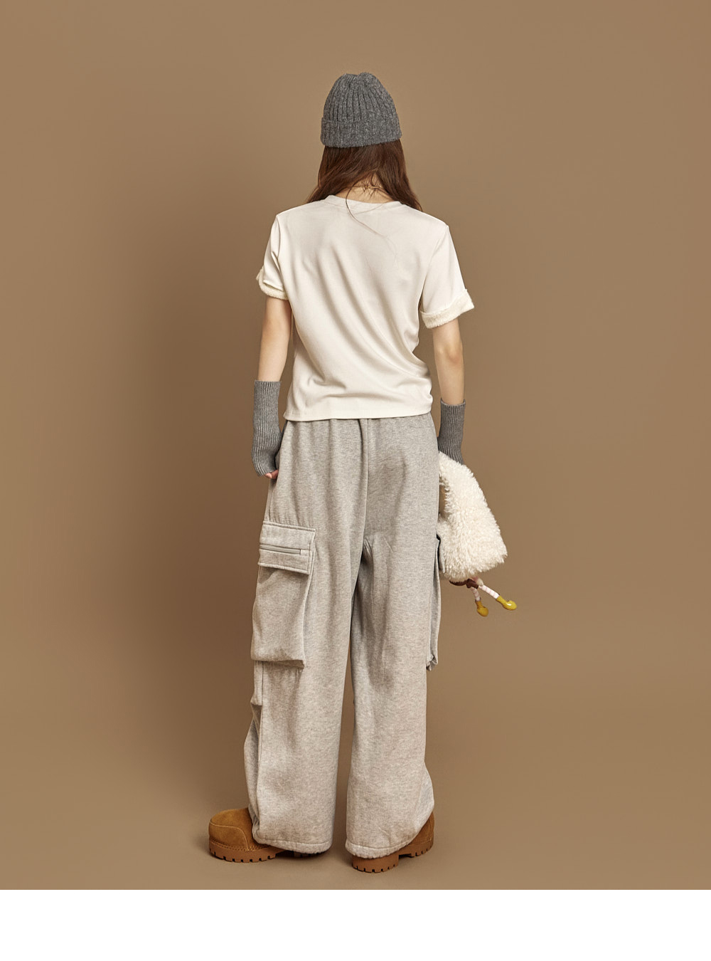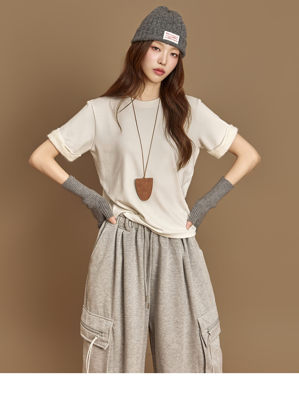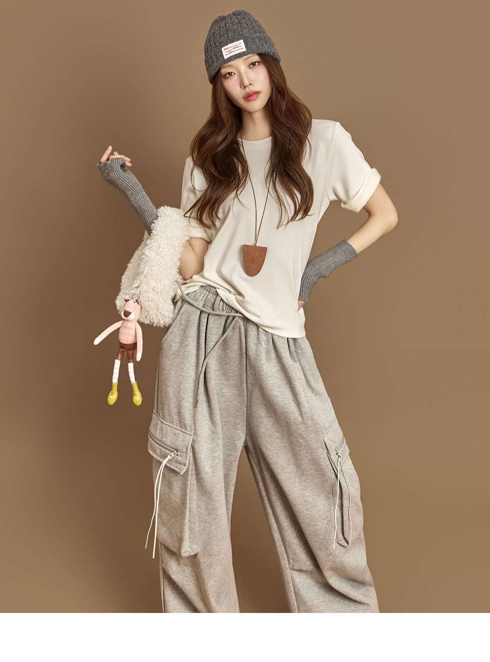 171CM 模特穿着 ONE 尺码,灰色款。