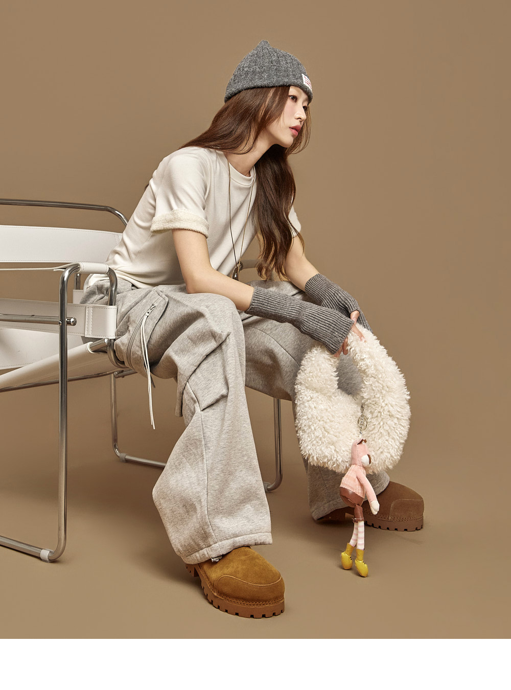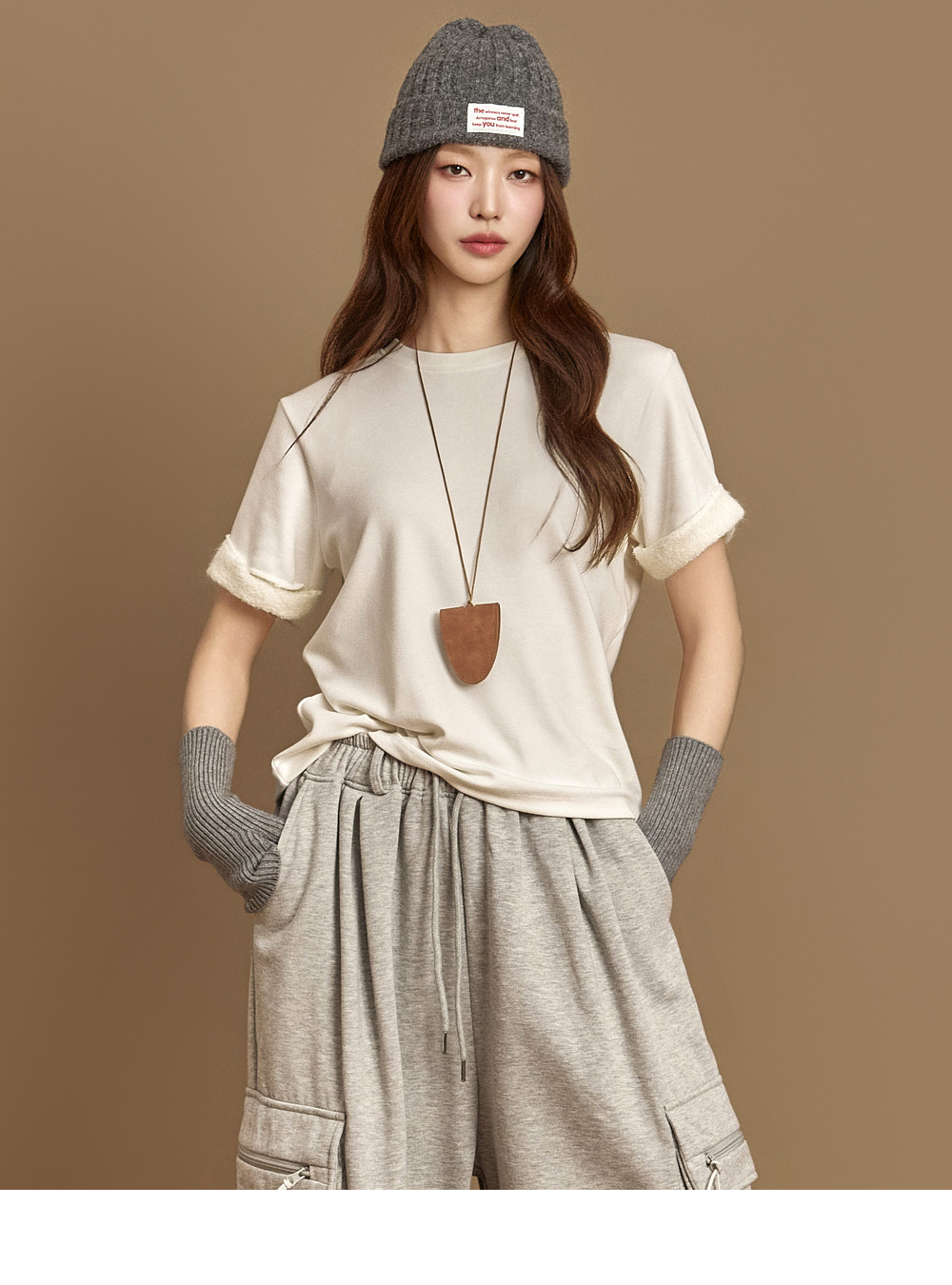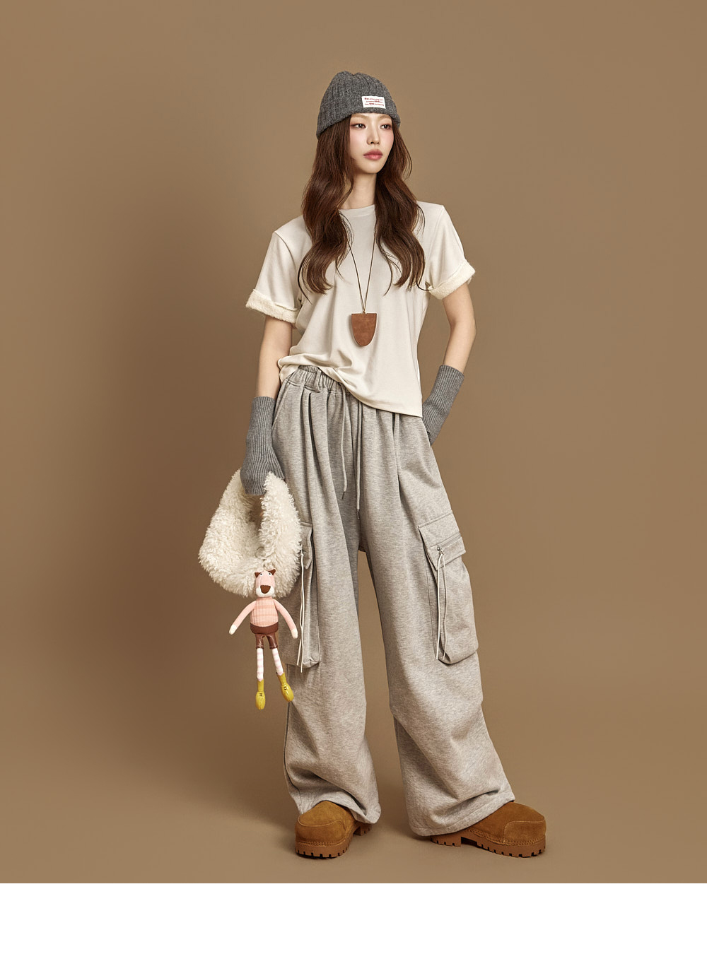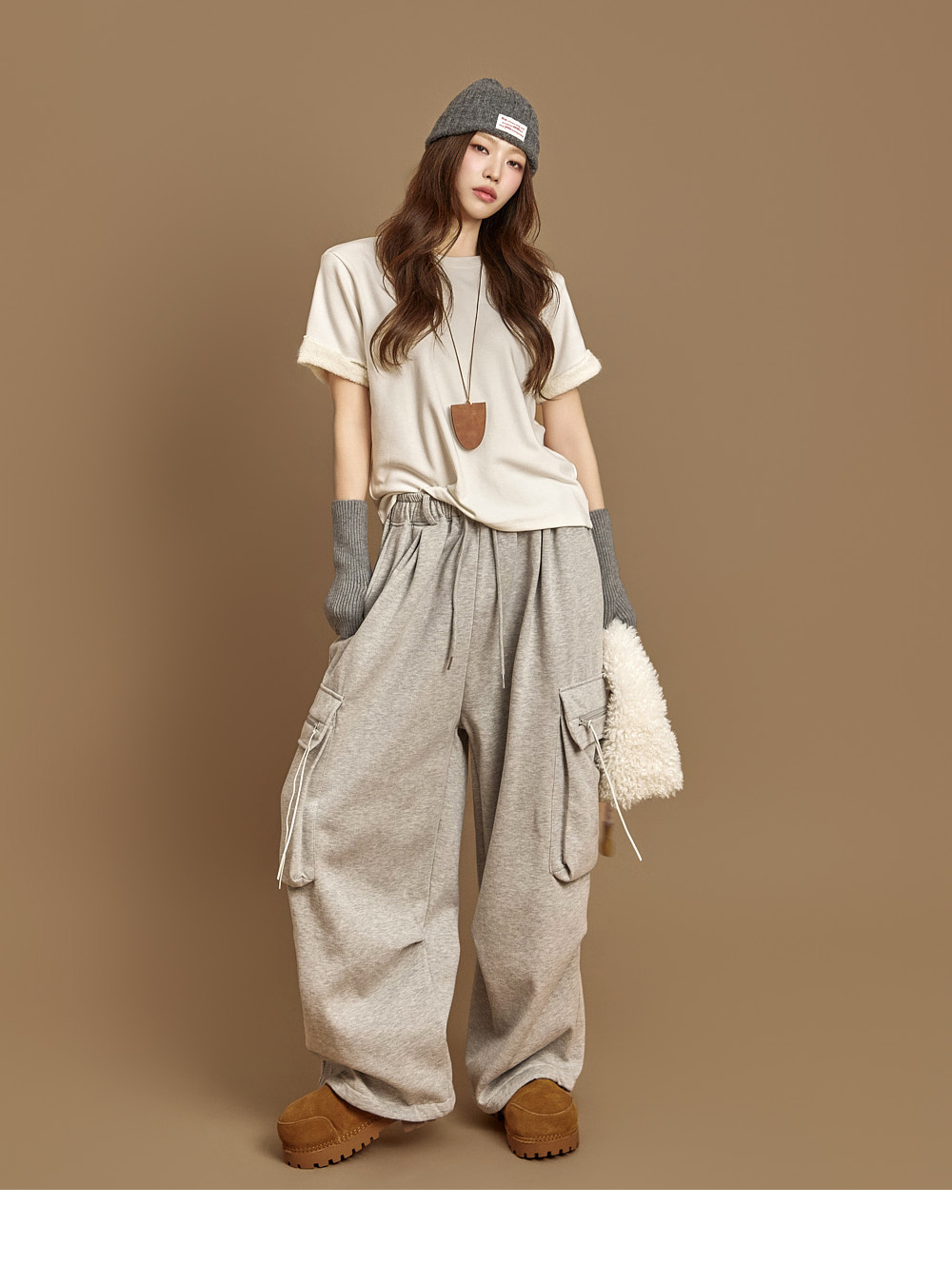 171CM 模特穿着 ONE 尺码,灰色款。