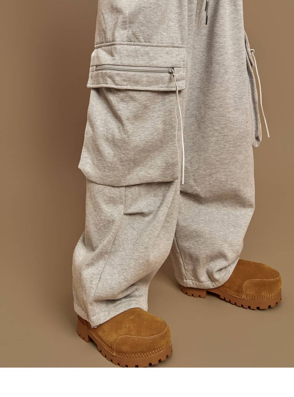 两侧口袋以及可拉链开合的工装口袋