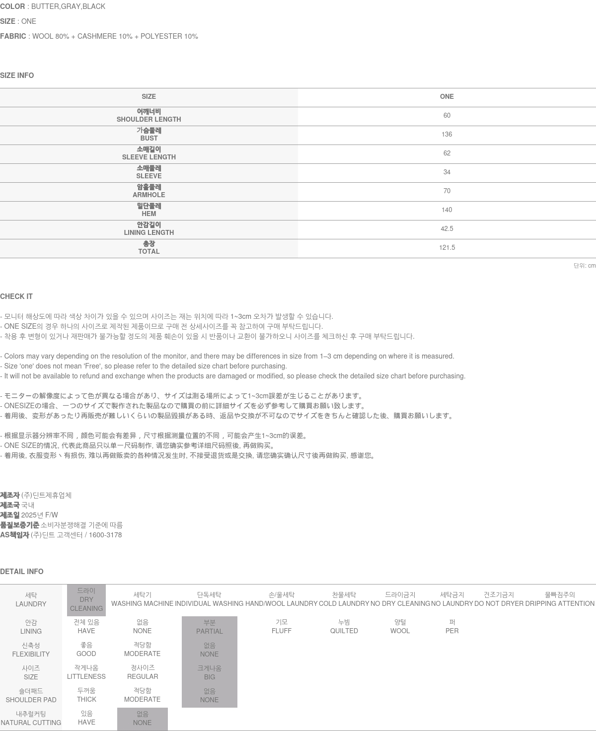 • DINT的所有商品, 使用一般洗滌或是烘乾機, 皆有可能成爲變形或是商品損傷的原因, 建議您使用乾洗.