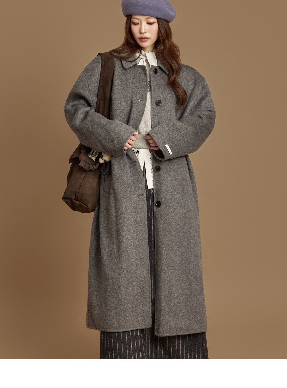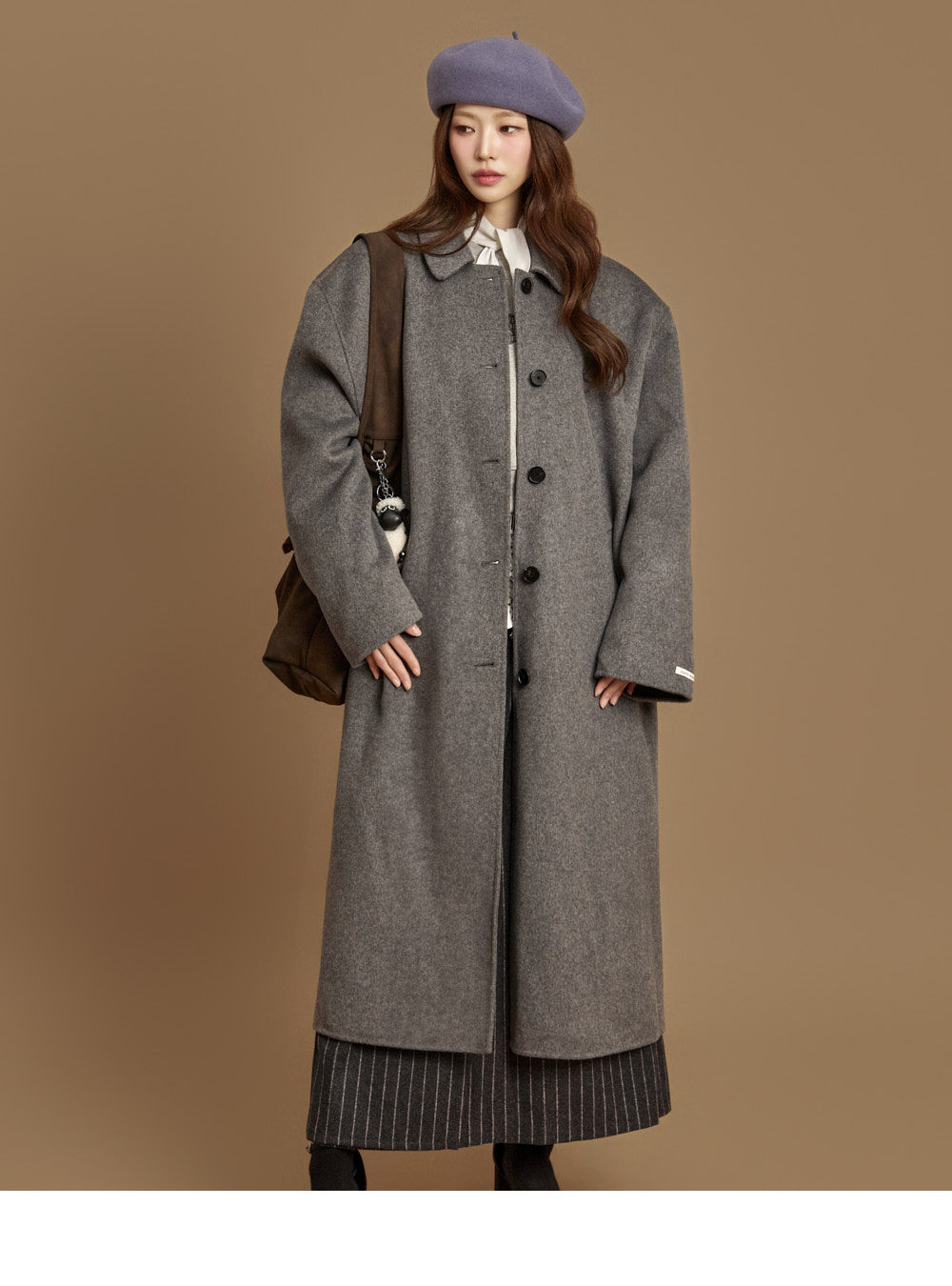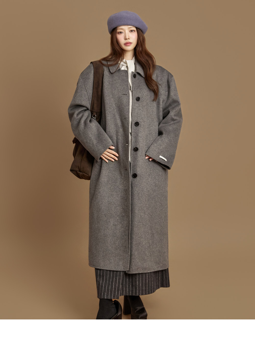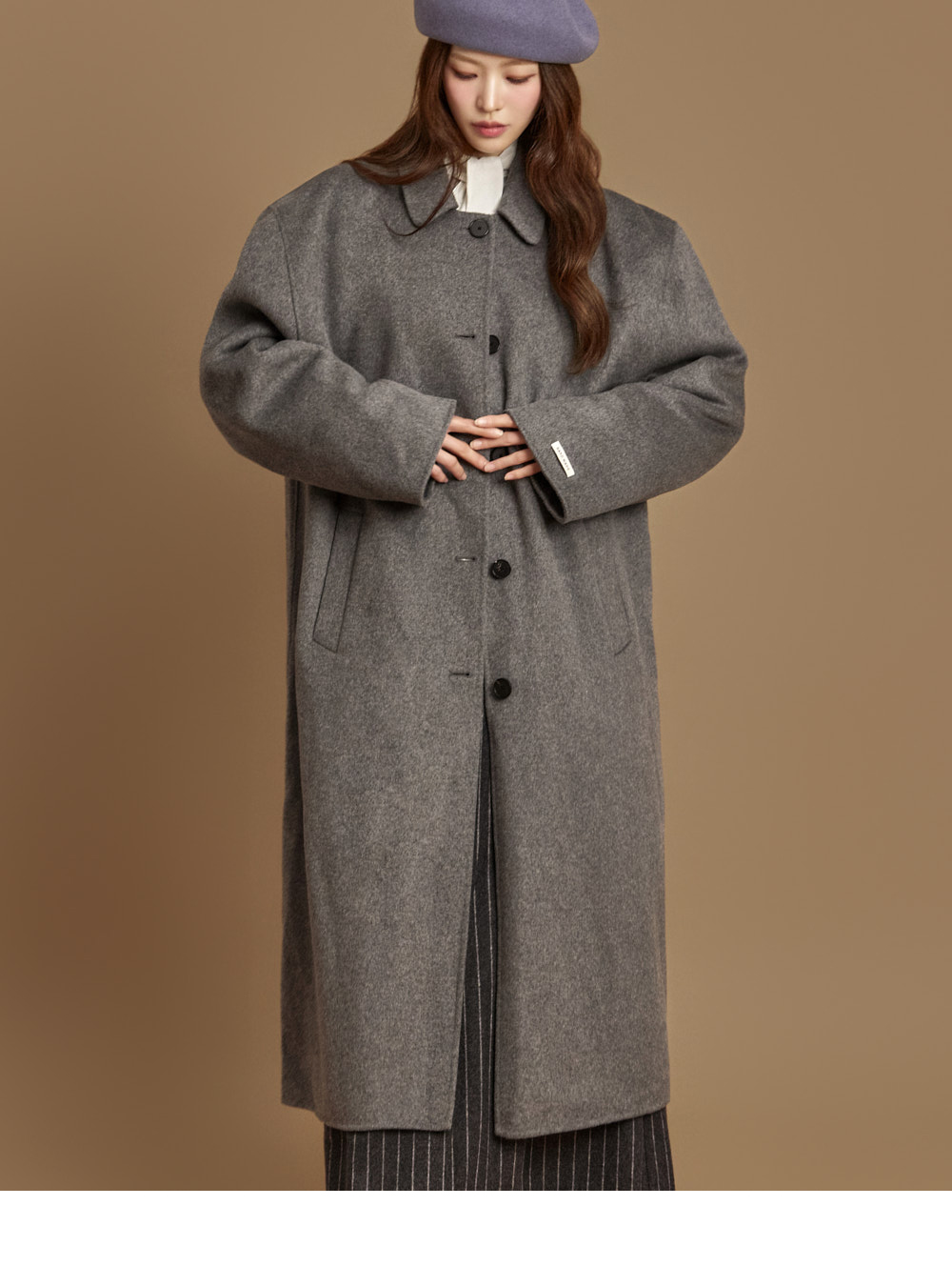现代感长款手工大衣。