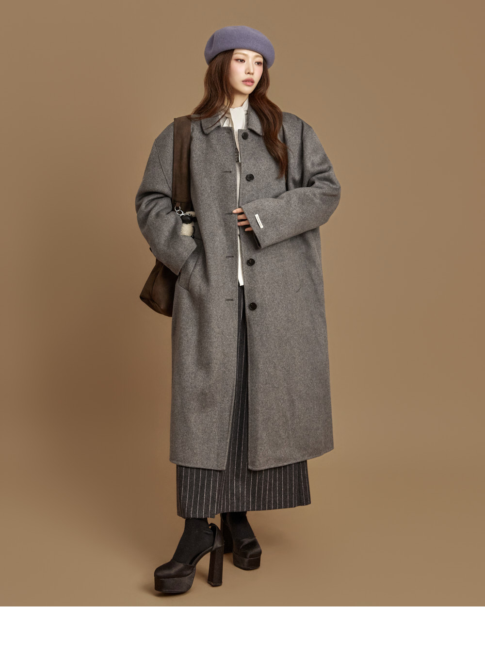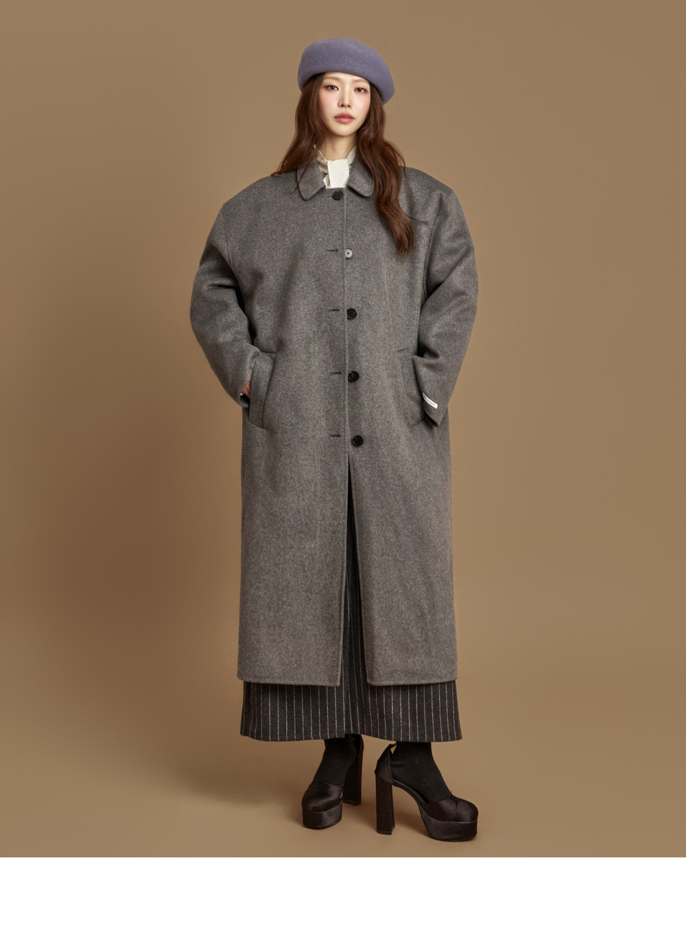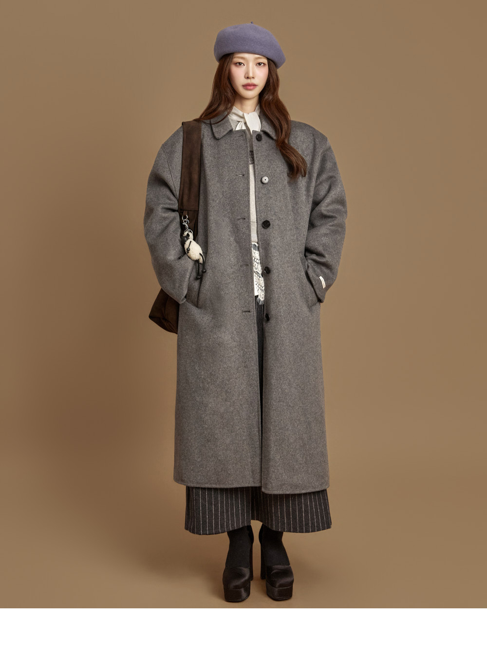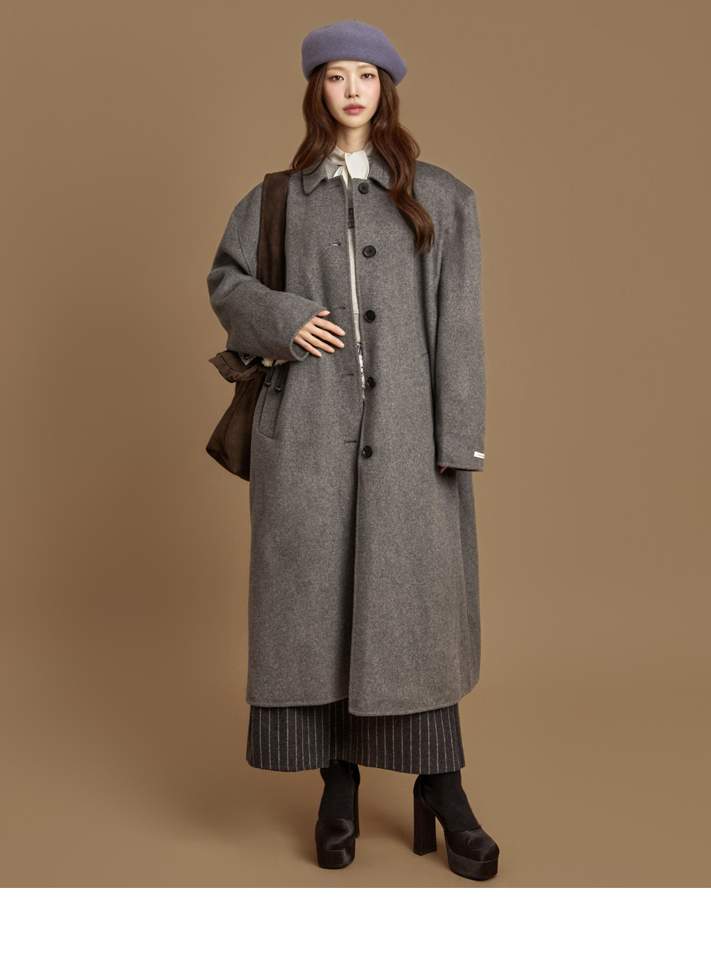 现代感长款手工大衣。