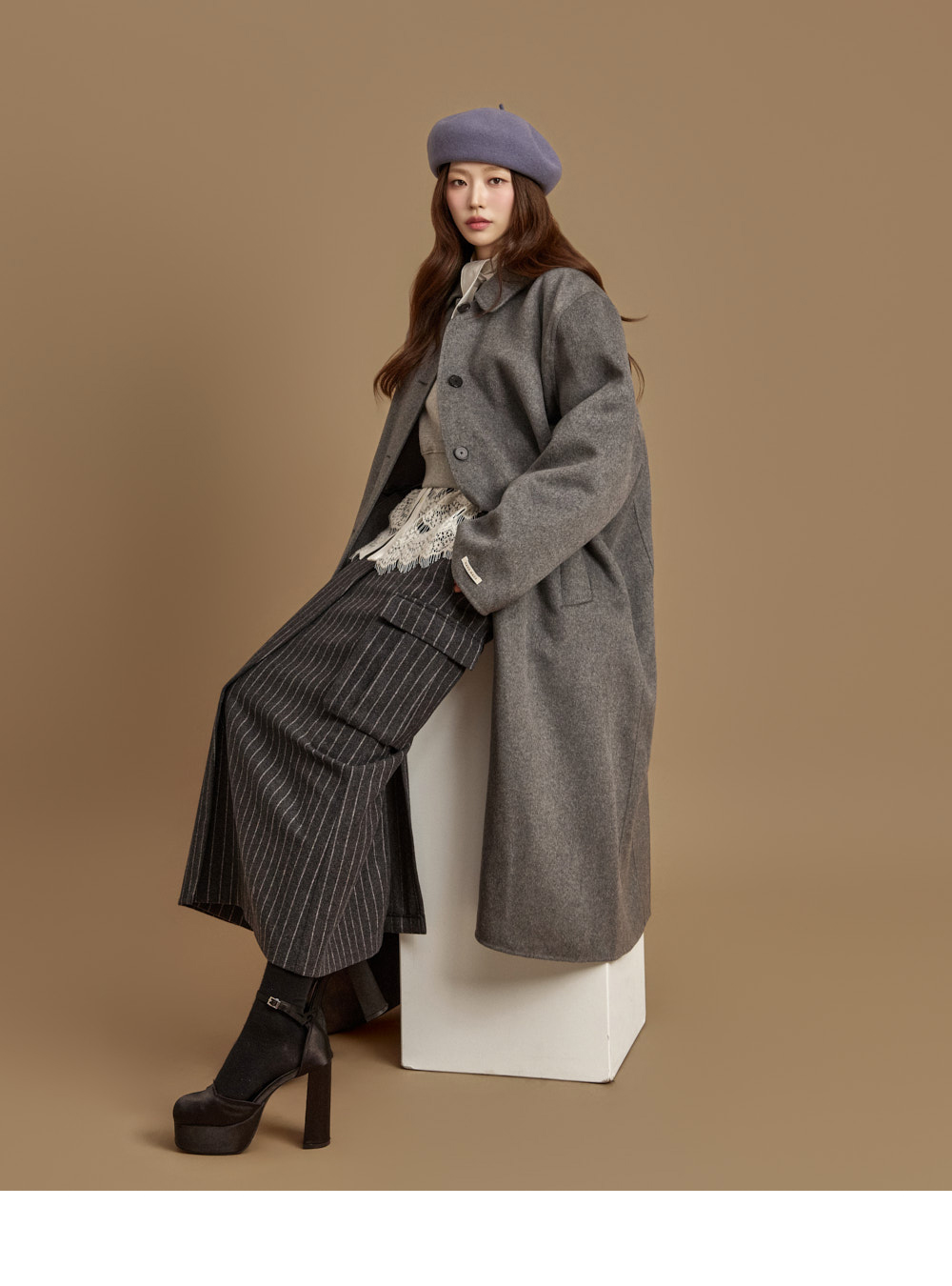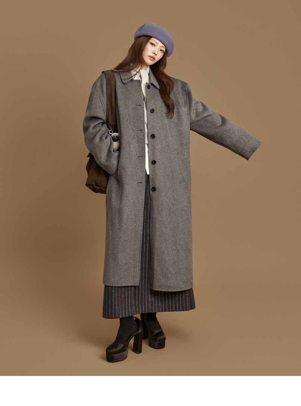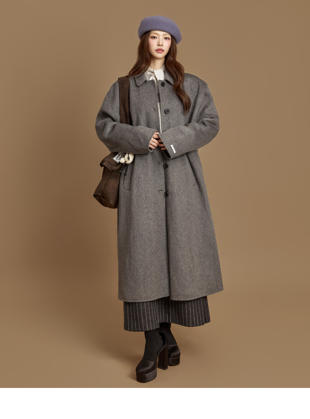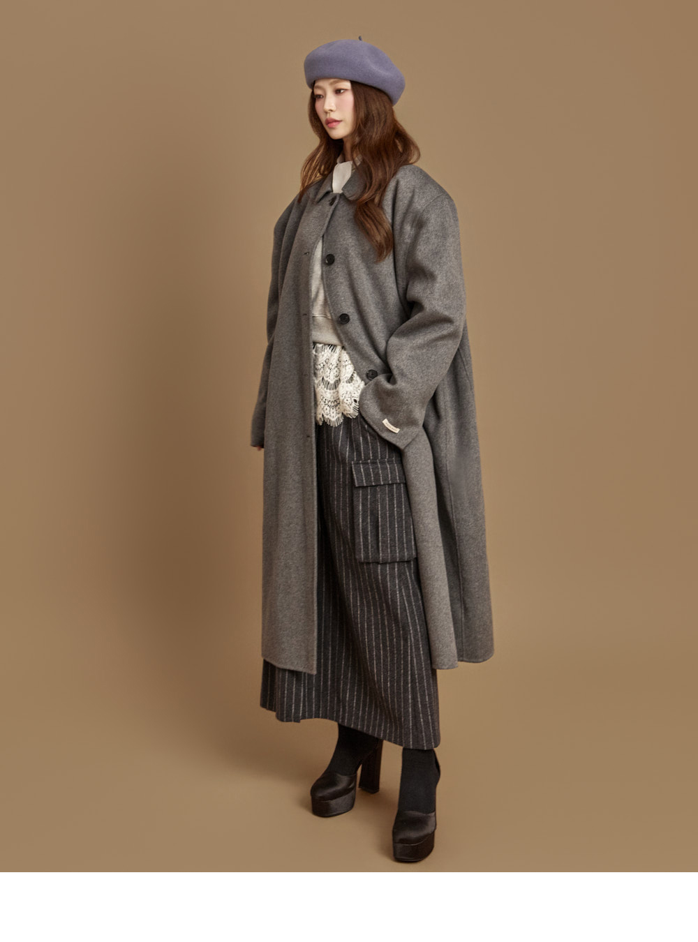 现代感长款手工大衣。