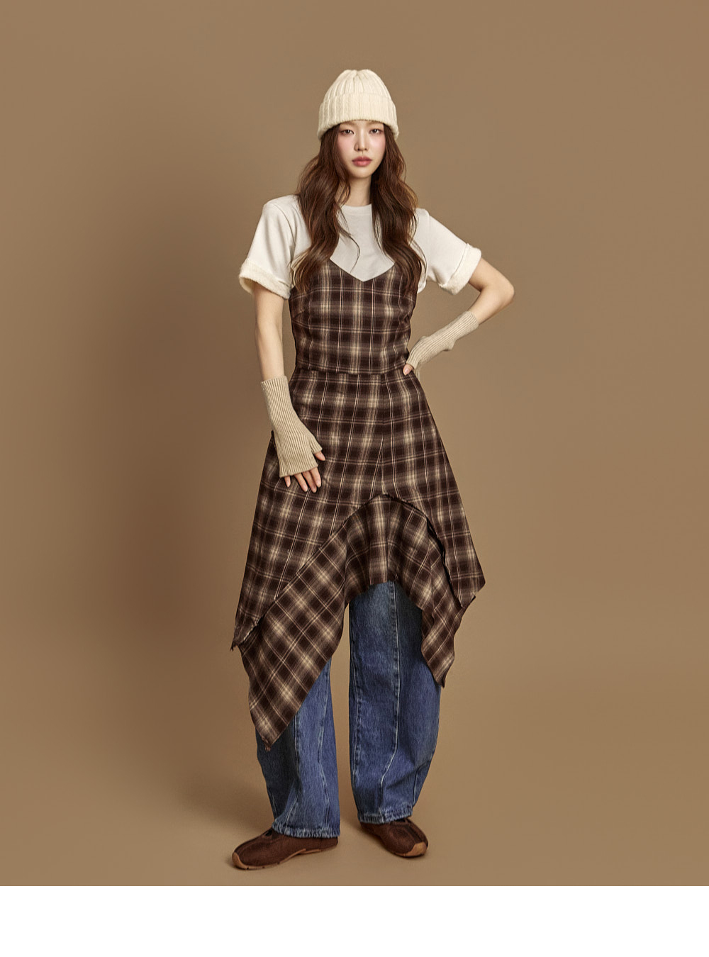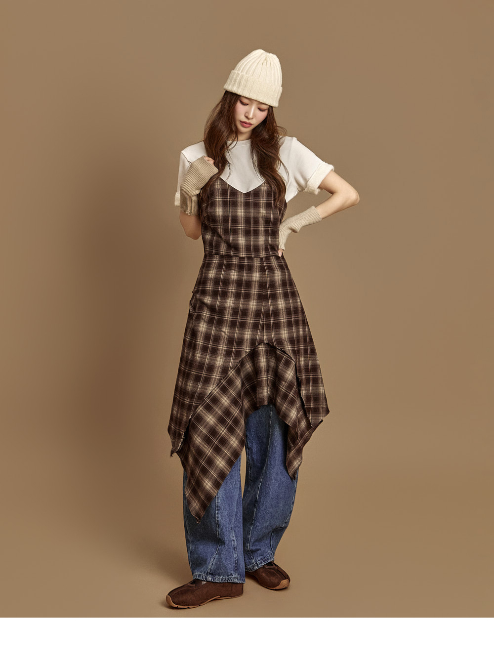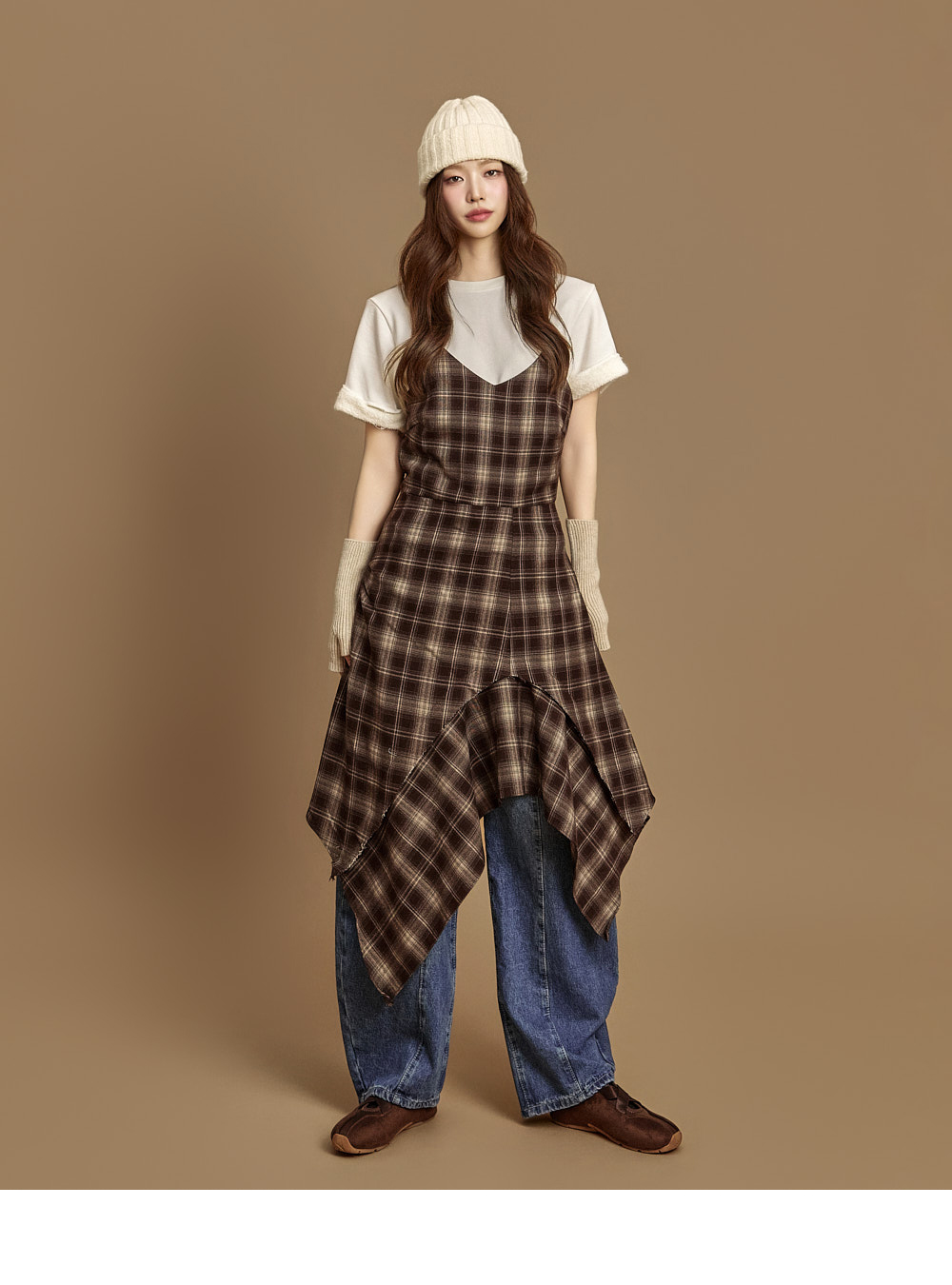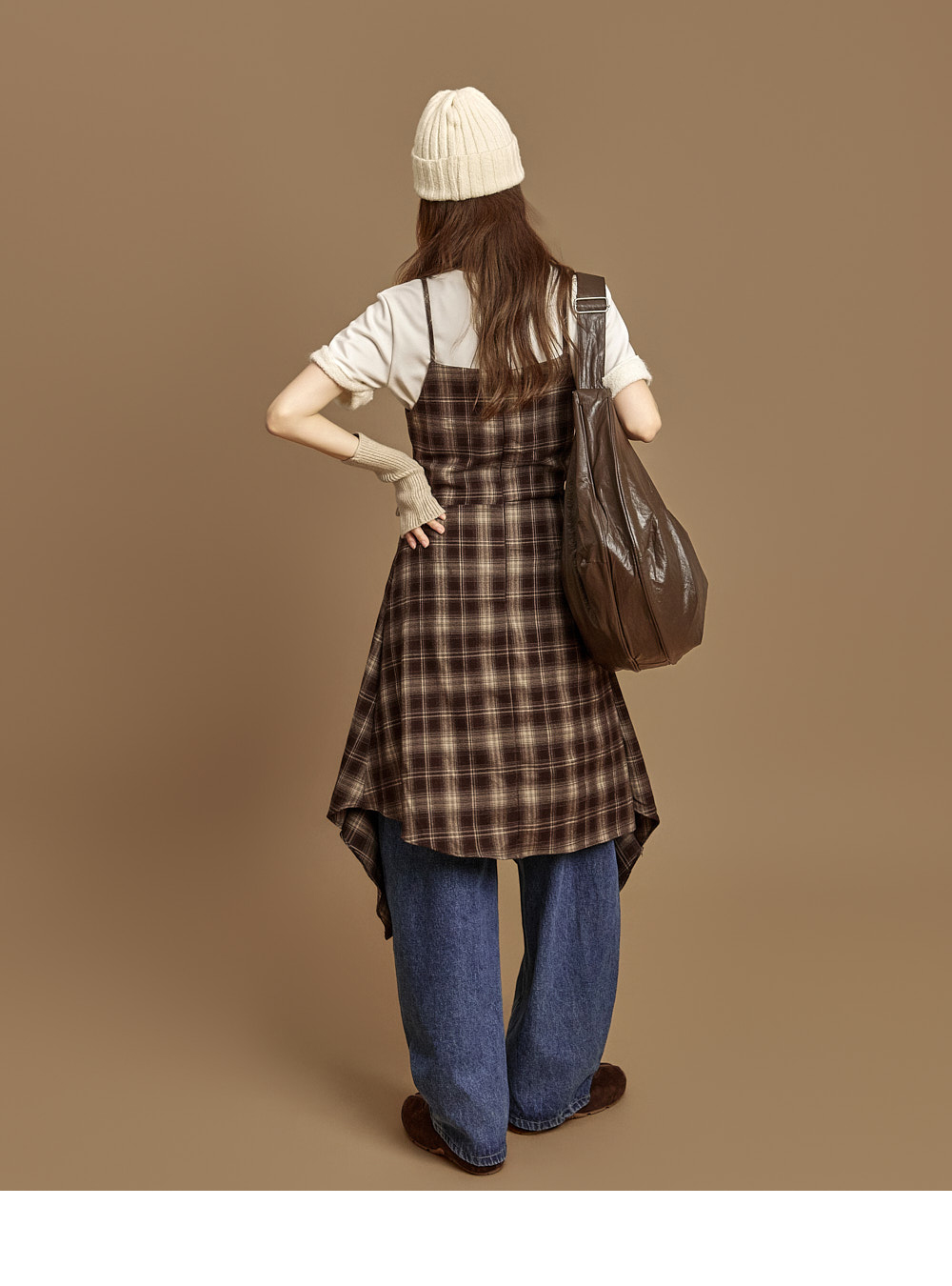 活泼氛围的连衣裙。 采用聚酯纤维面料,轻便舒适,ONE 尺码设计,自然适合各种体型。 无袖设计搭配自然剪裁的下摆,增添轻盈感;格纹图案与不对称长度成为时尚亮点。 部分内衬设计降低透视担忧,背部拉链便于穿脱。 单穿呈现可爱氛围,与裤装叠穿则可打造独特风格,是一款实用性高的单品。 171CM 模特,ONE 尺码,棕色穿着。