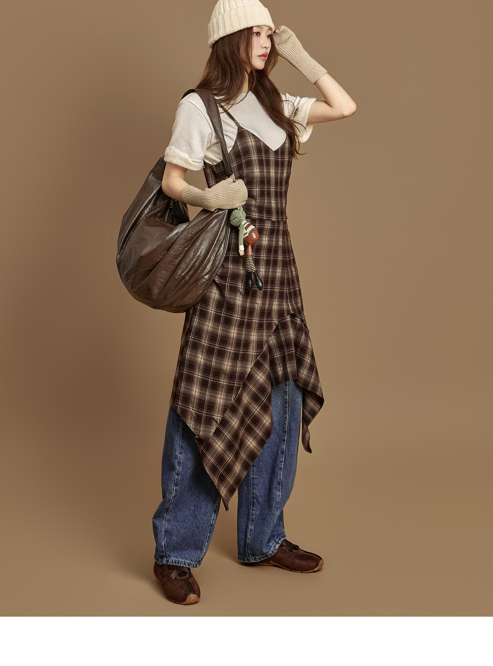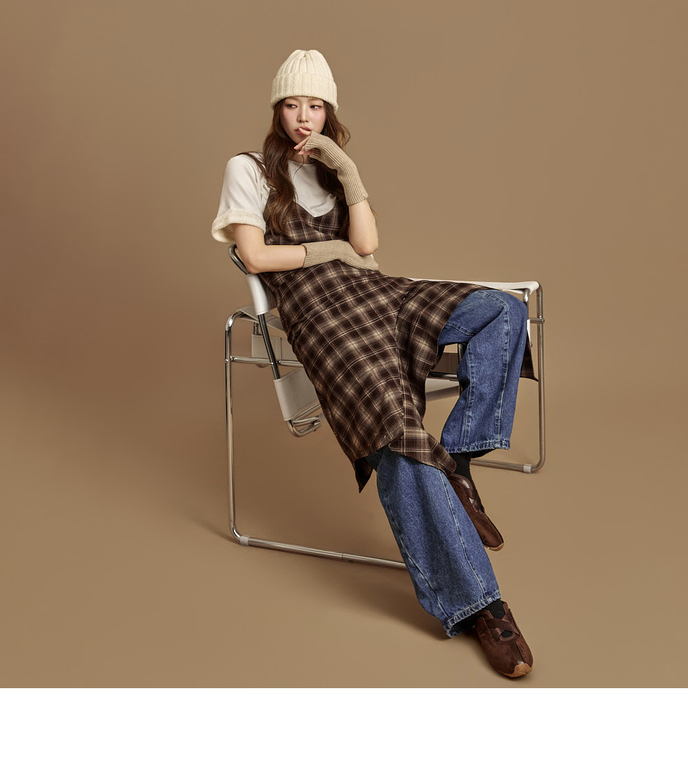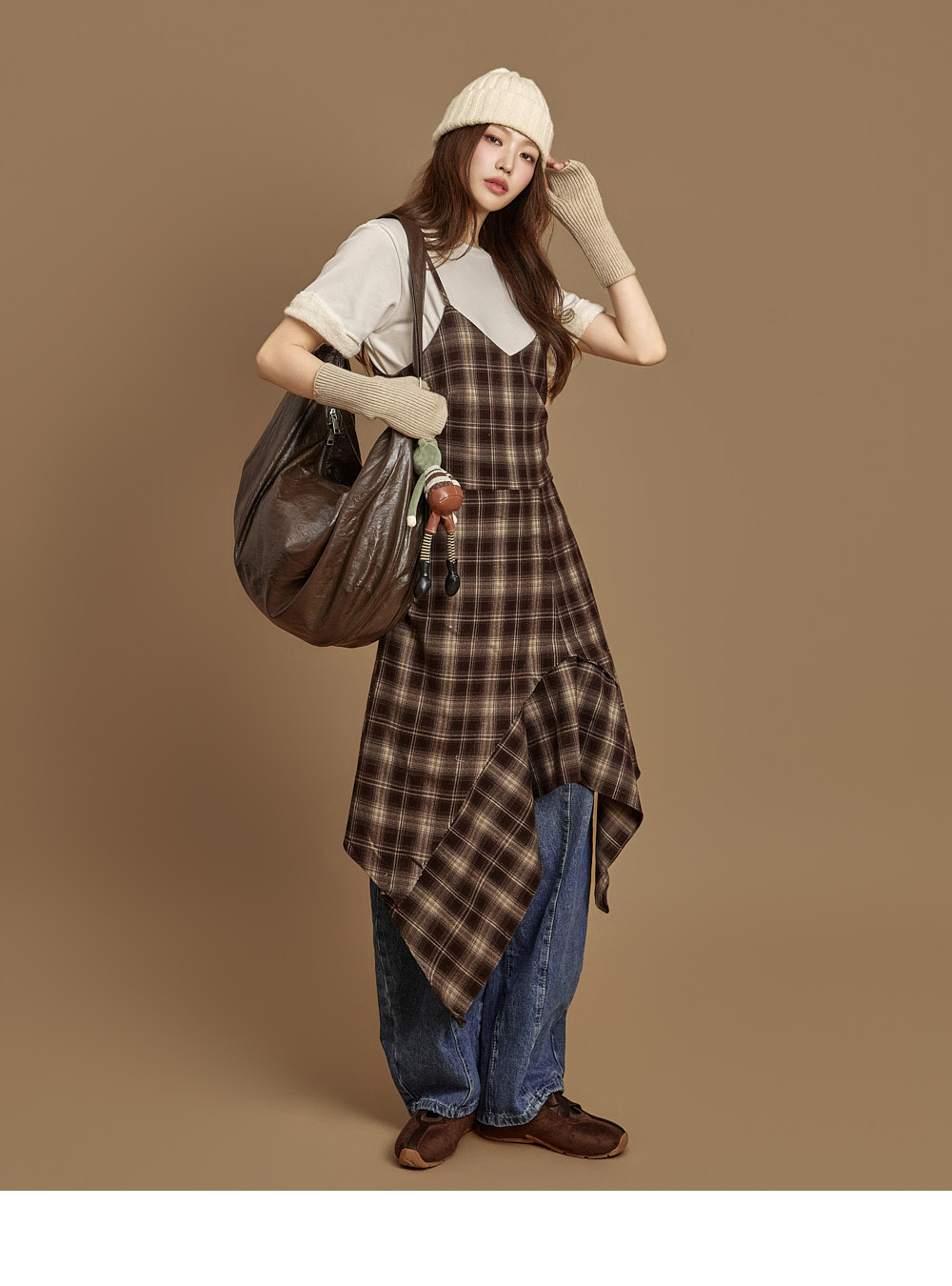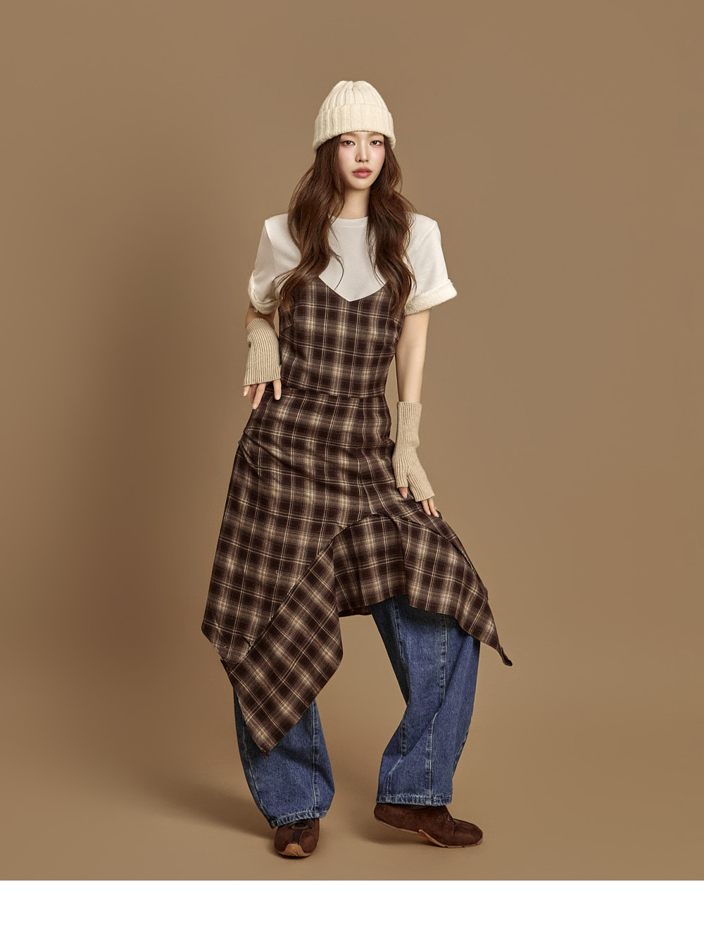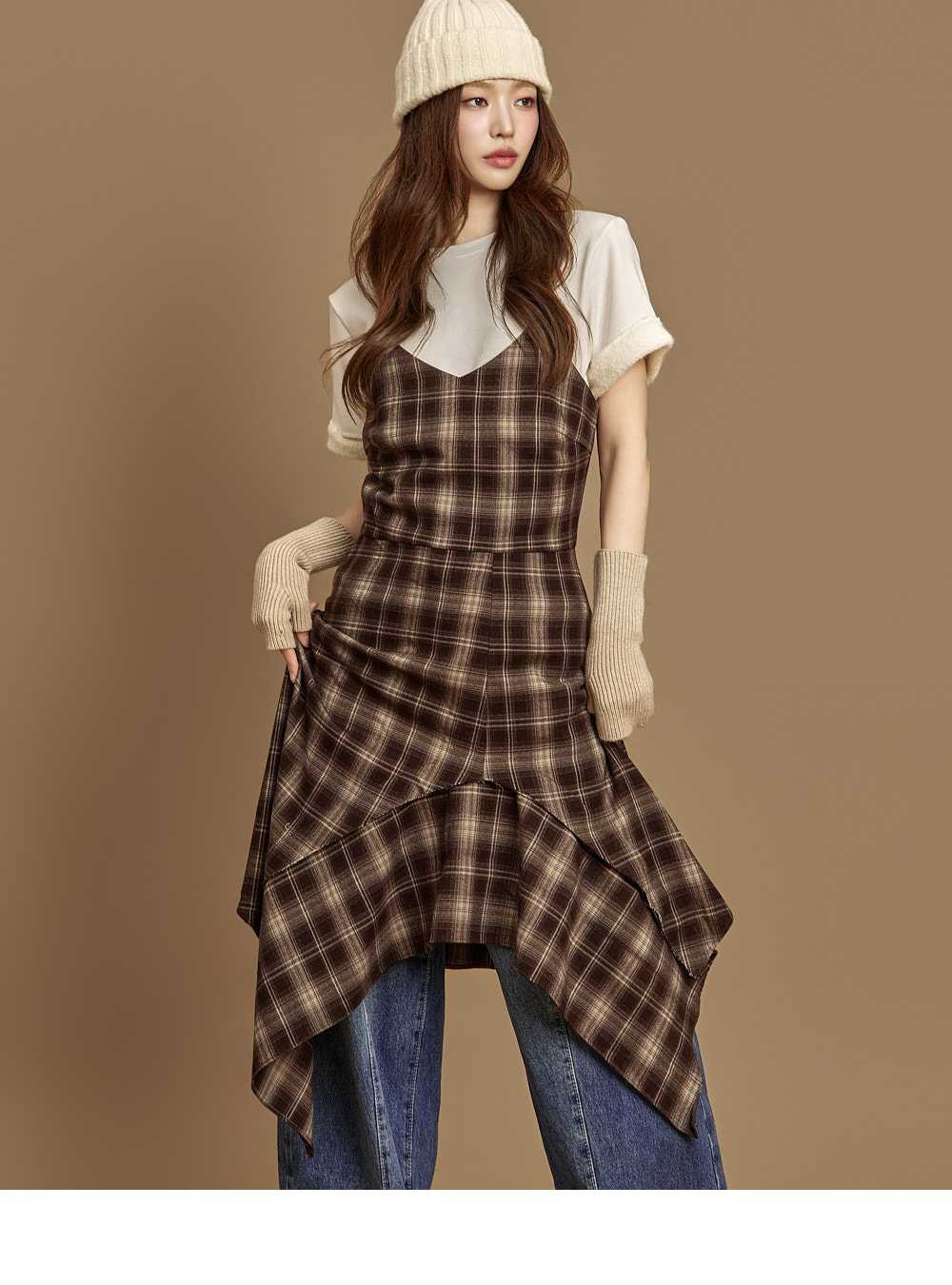活泼氛围的连衣裙。 采用聚酯纤维面料,轻便舒适,ONE 尺码设计,自然适合各种体型。 无袖设计搭配自然剪裁的下摆,增添轻盈感;格纹图案与不对称长度成为时尚亮点。 部分内衬设计降低透视担忧,背部拉链便于穿脱。 单穿呈现可爱氛围,与裤装叠穿则可打造独特风格,是一款实用性高的单品。 171CM 模特,ONE 尺码,棕色穿着。