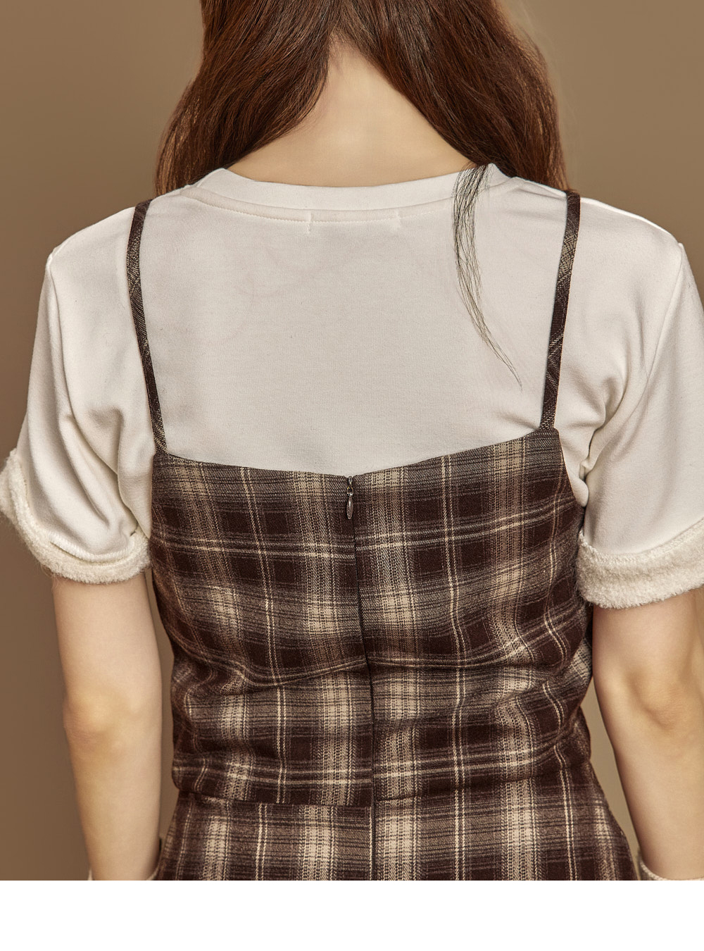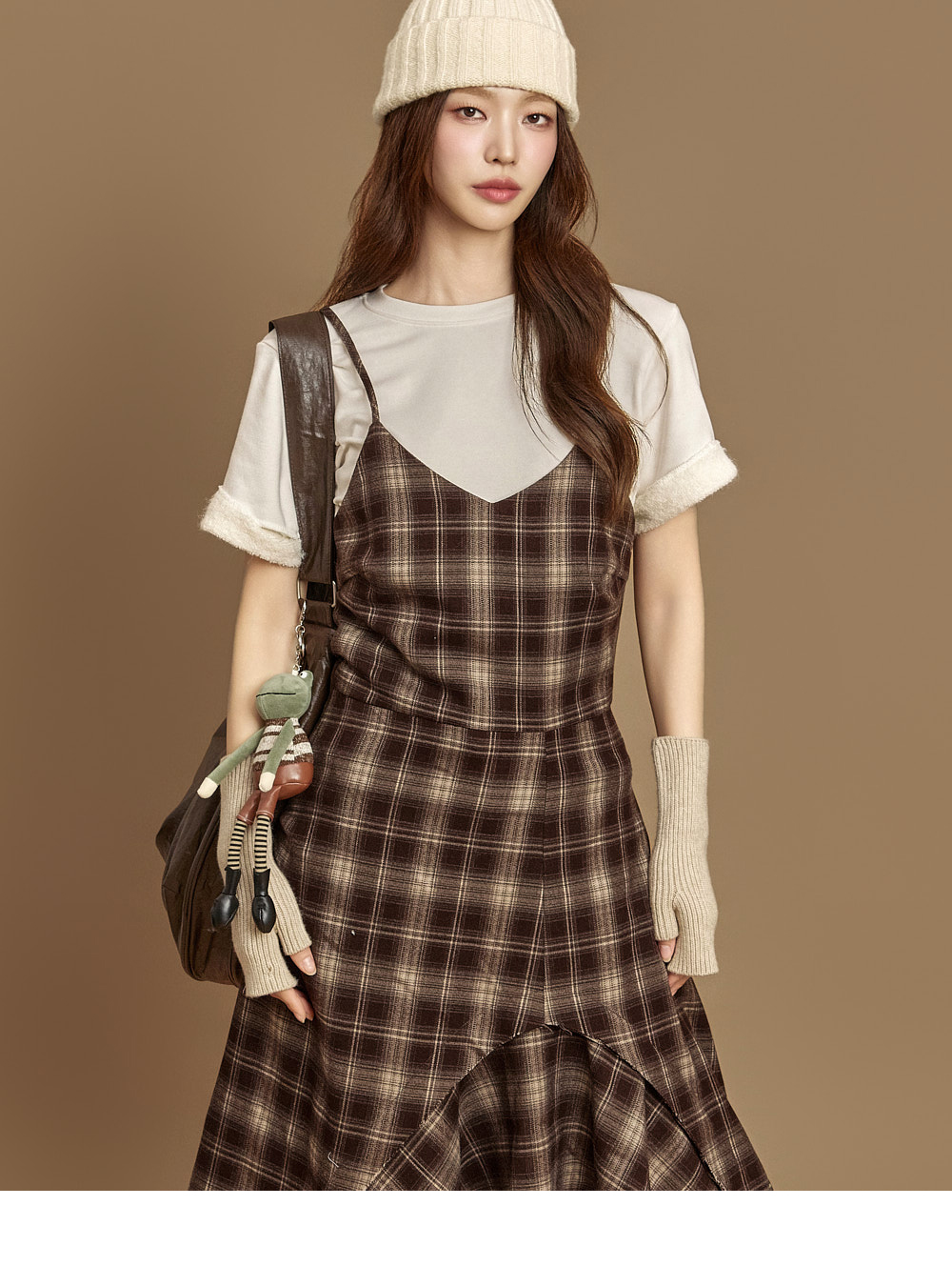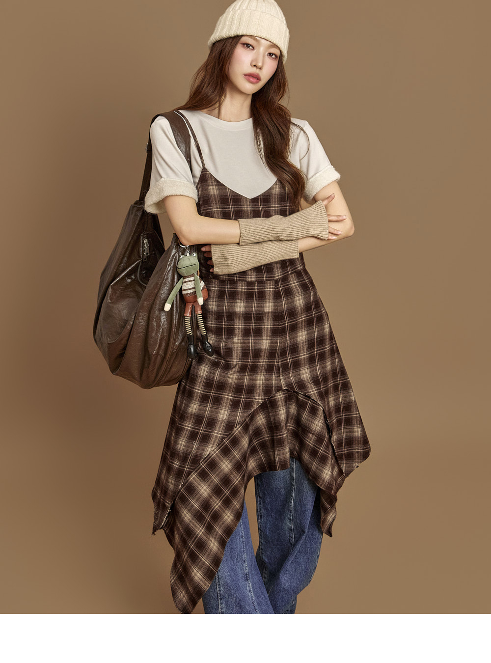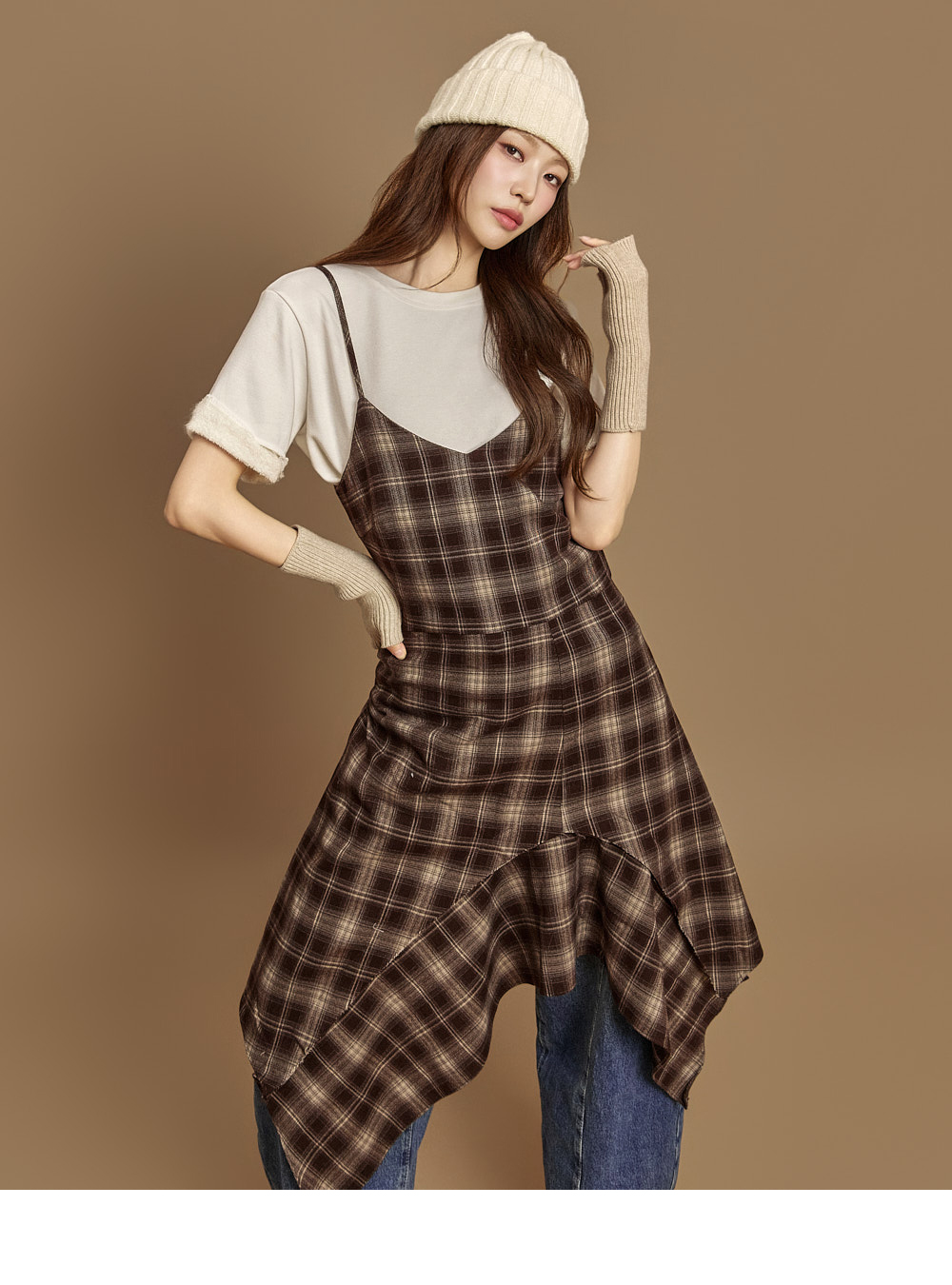 活泼氛围的连衣裙。 采用聚酯纤维面料,轻便舒适,ONE 尺码设计,自然适合各种体型。 无袖设计搭配自然剪裁的下摆,增添轻盈感;格纹图案与不对称长度成为时尚亮点。 部分内衬设计降低透视担忧,背部拉链便于穿脱。 单穿呈现可爱氛围,与裤装叠穿则可打造独特风格,是一款实用性高的单品。 171CM 模特,ONE 尺码,棕色穿着。