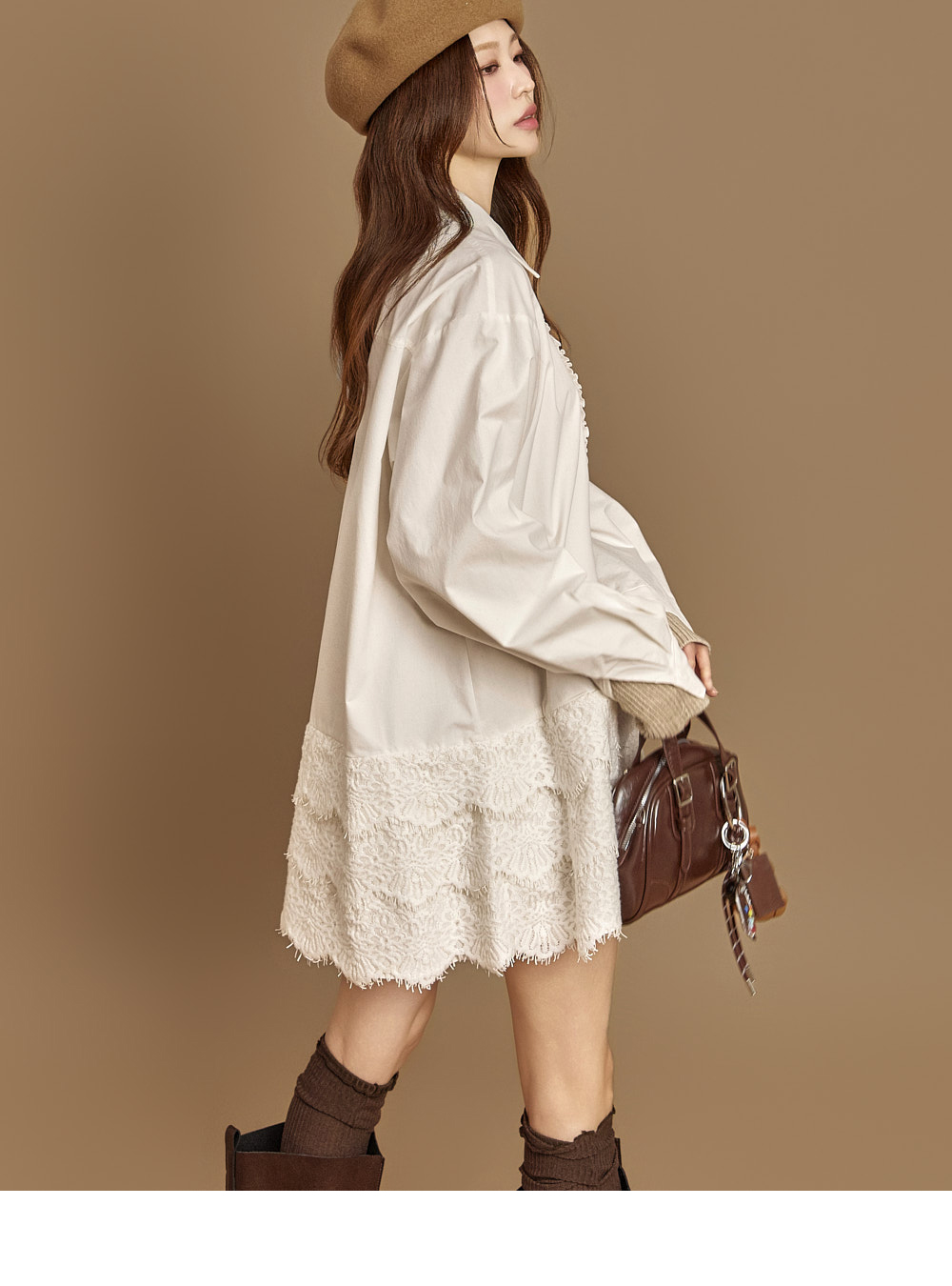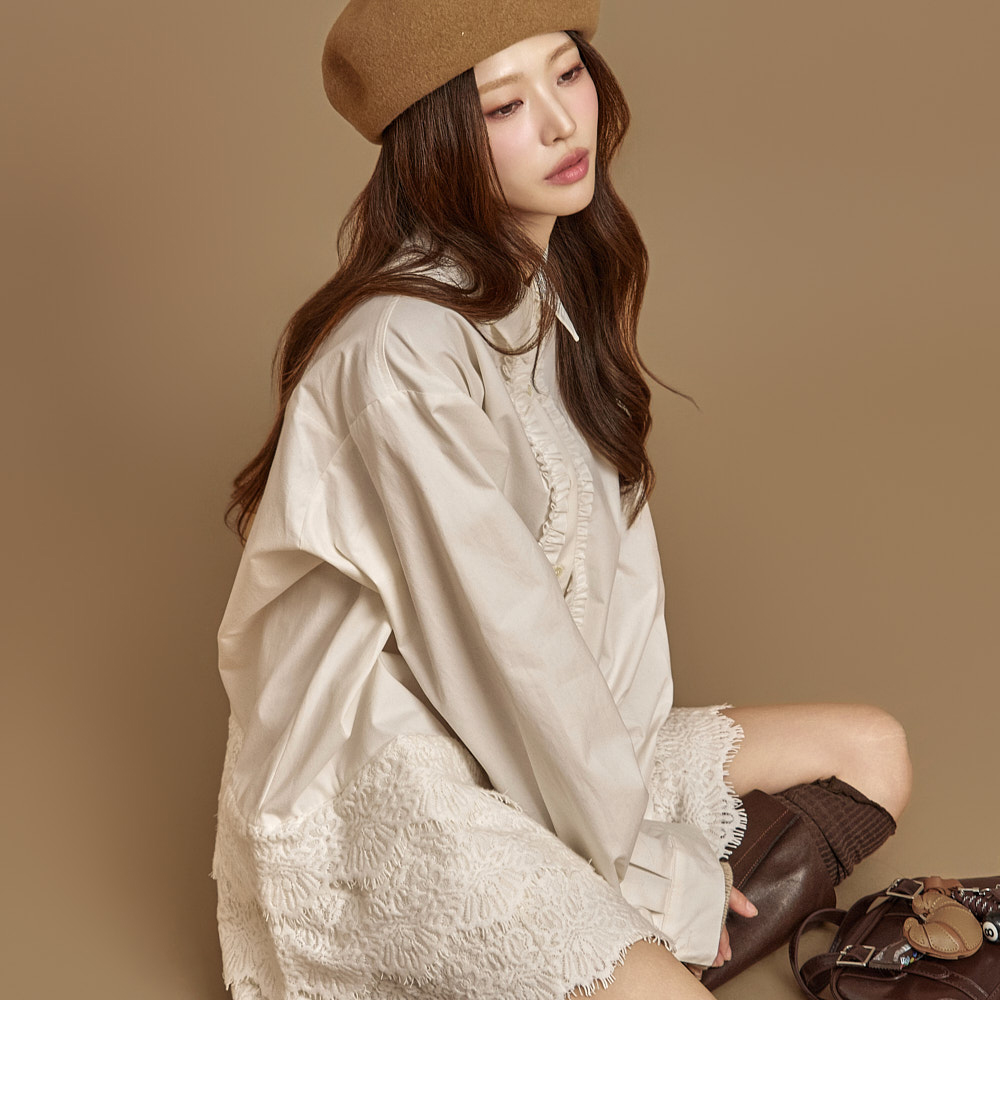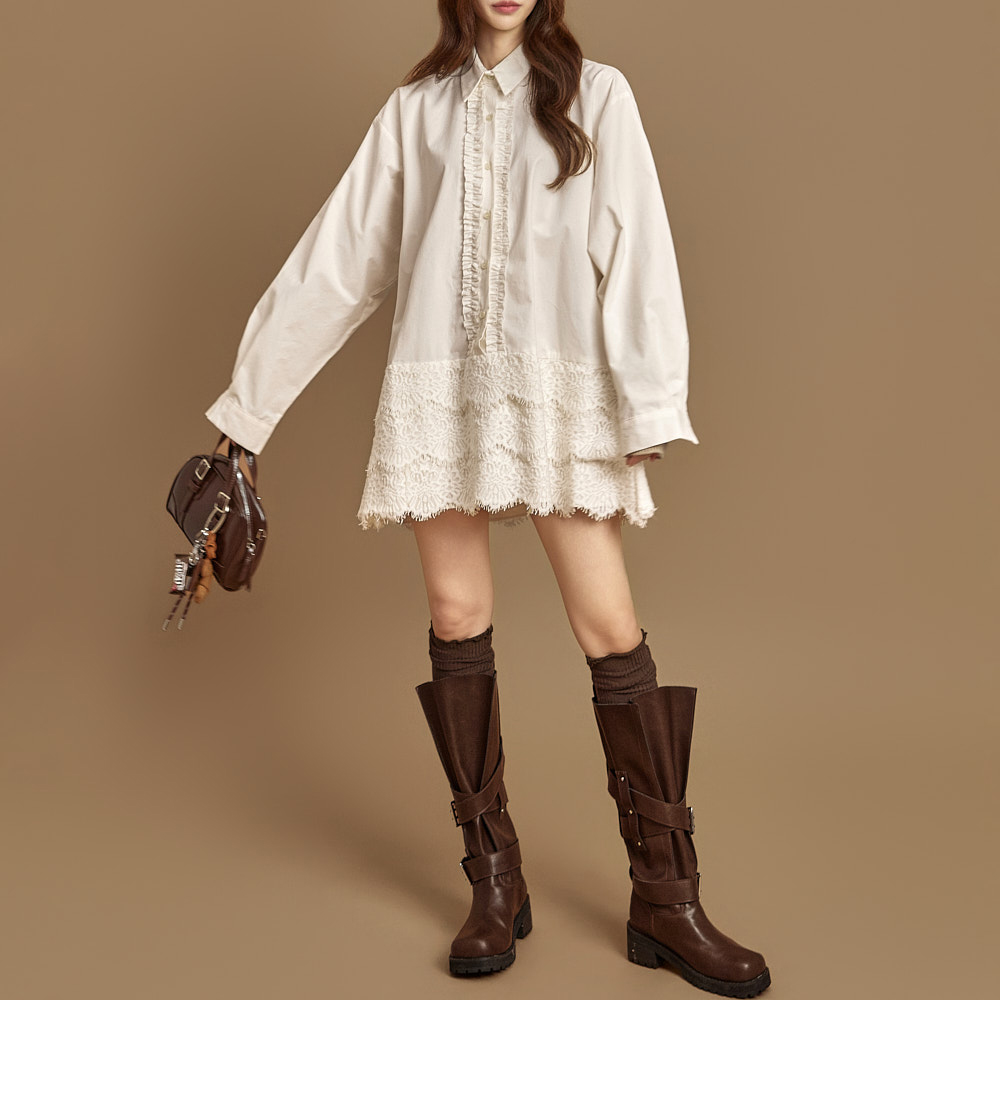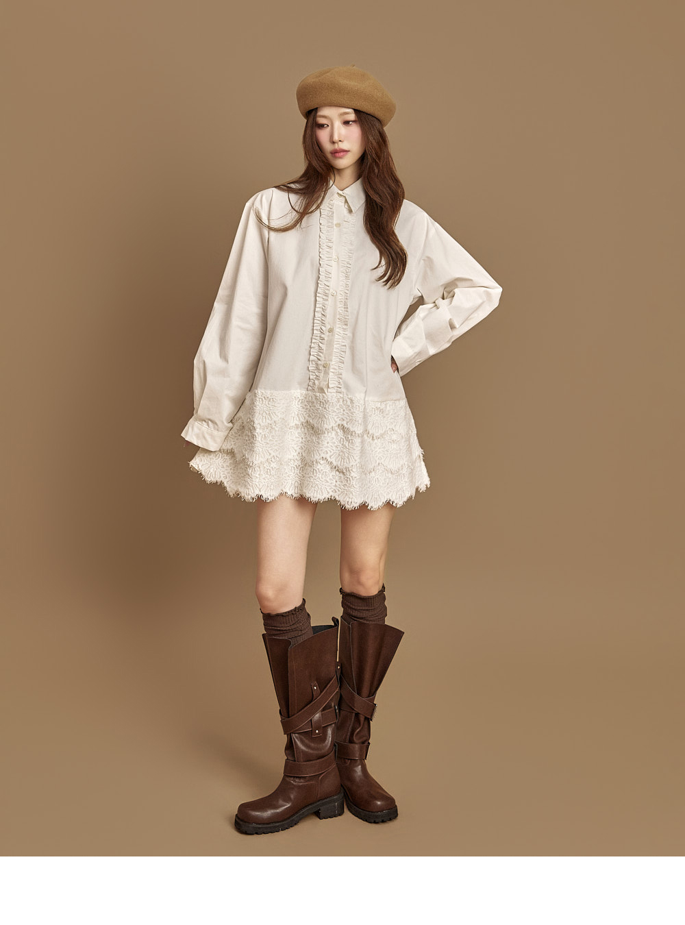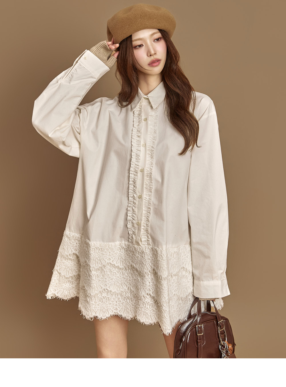 前襟荷叶边与下摆蕾丝细节,增添可爱亮点。