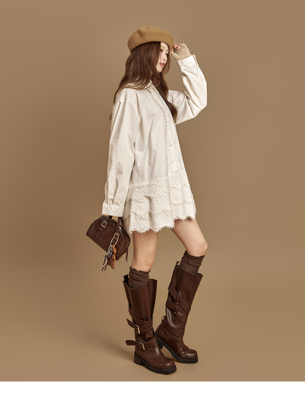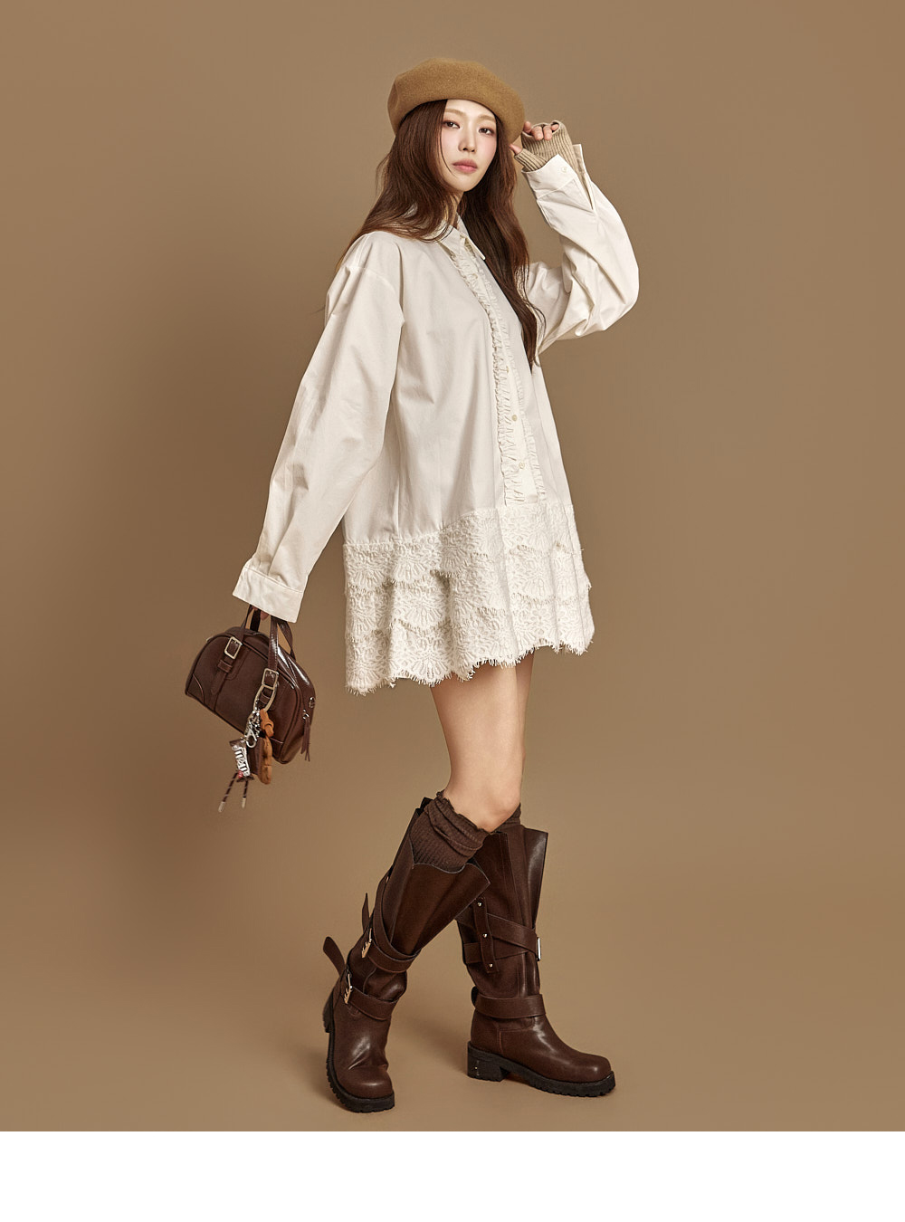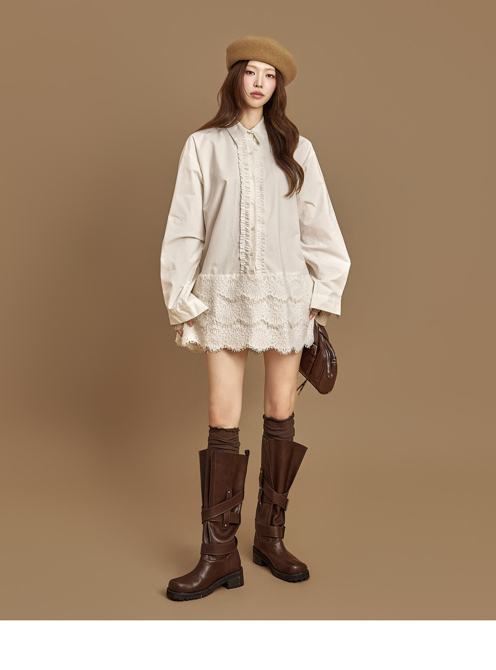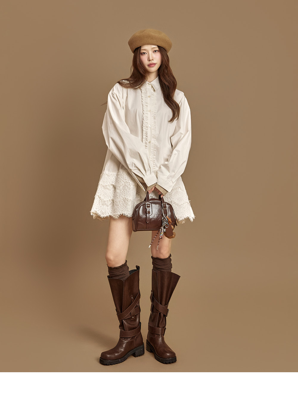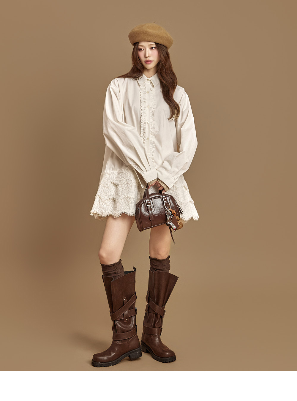 前襟荷叶边与下摆蕾丝细节,增添可爱亮点。