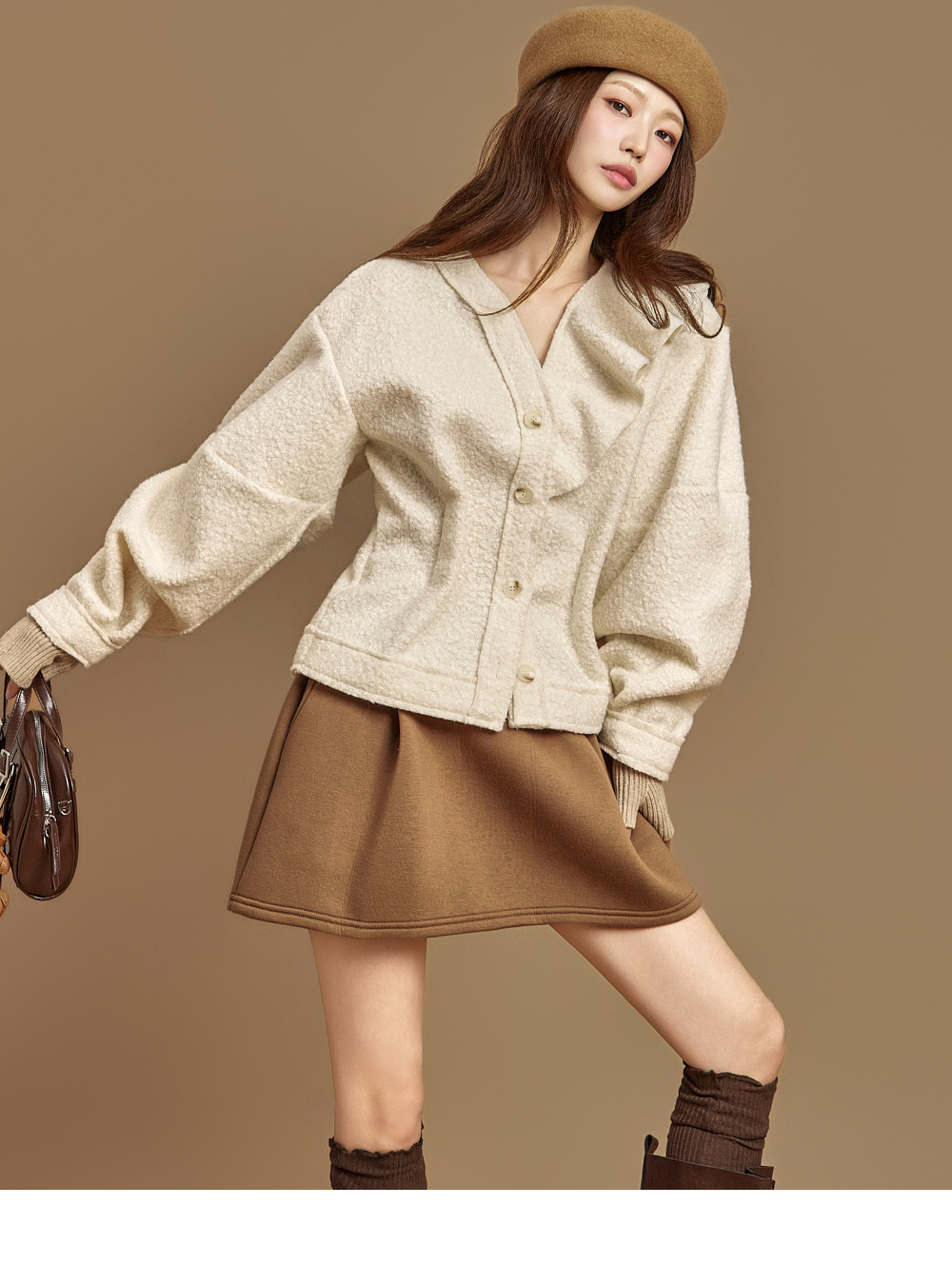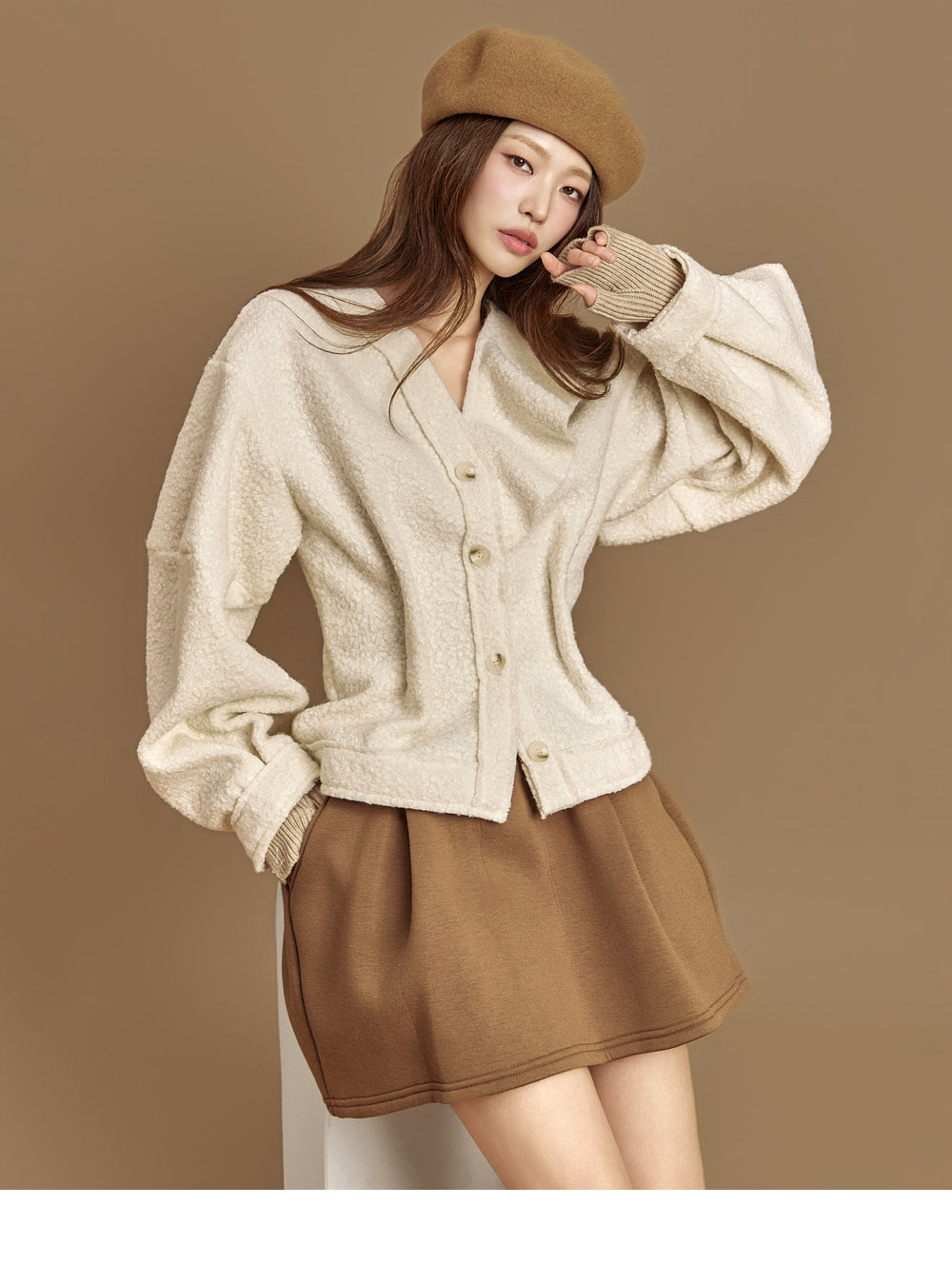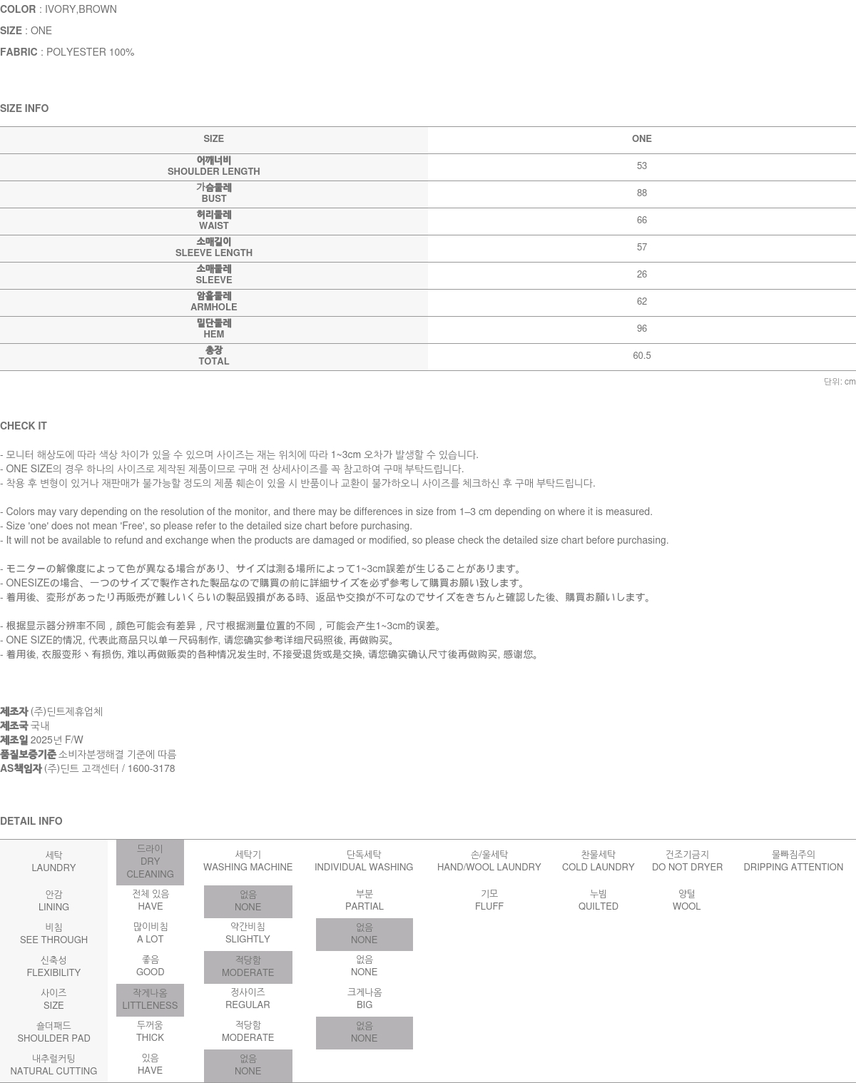171CM模特穿ONE尺码,IVORY颜色。