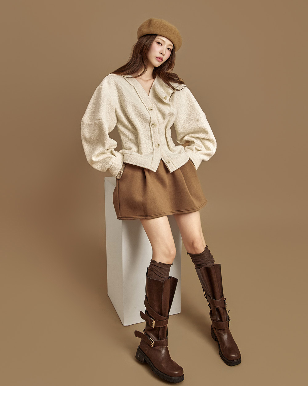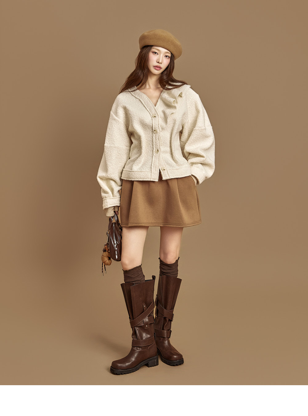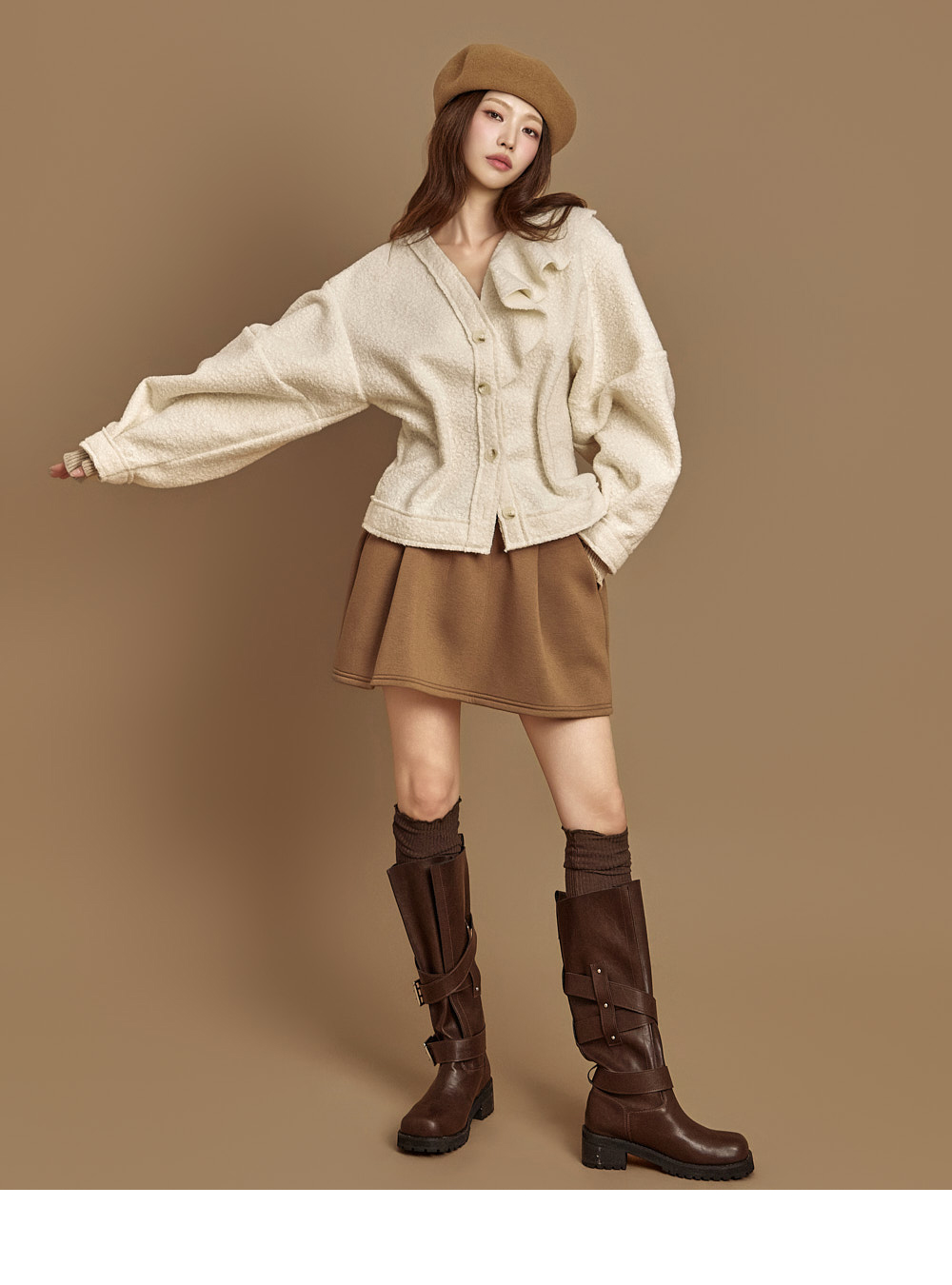 171CM模特穿ONE尺码,IVORY颜色。