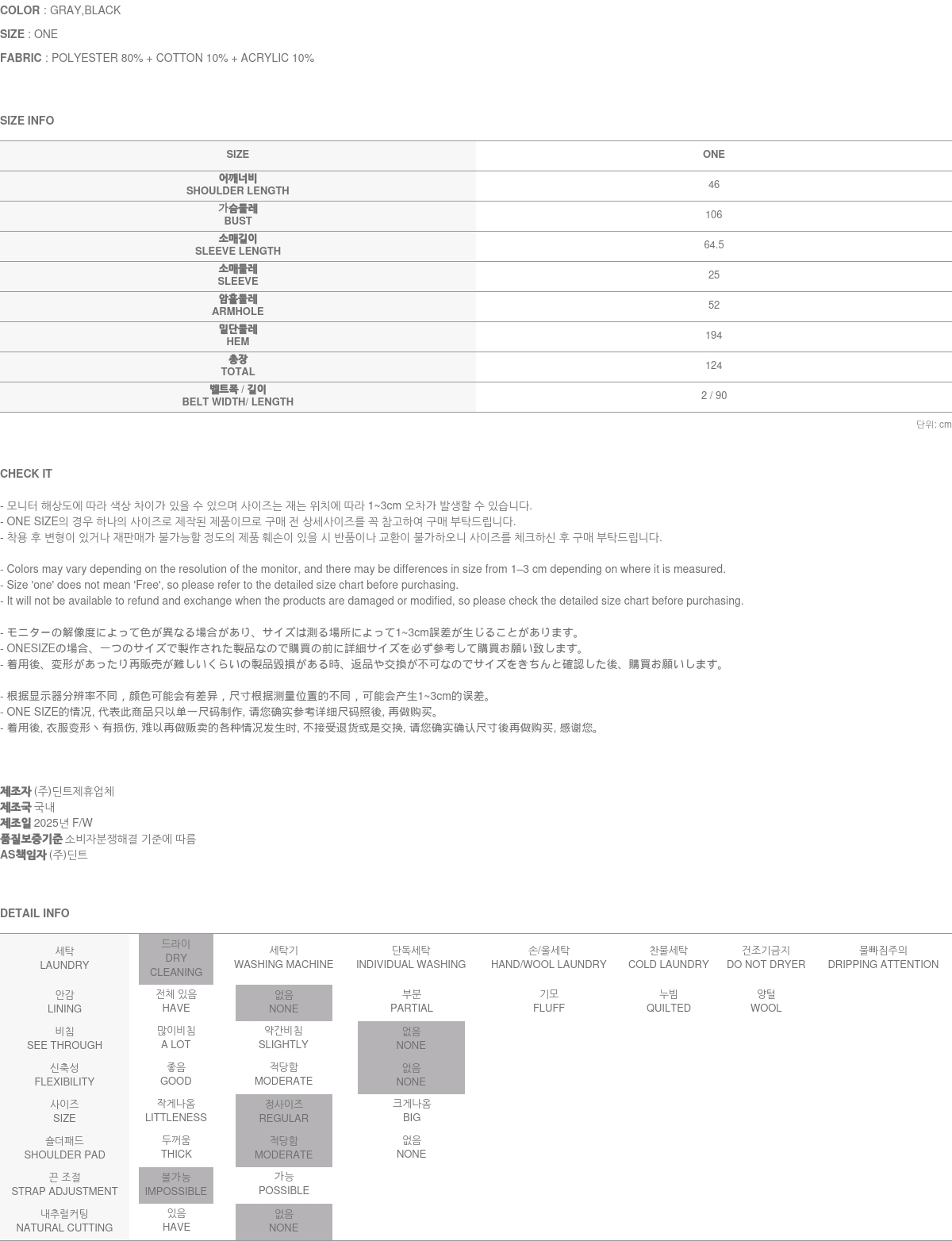 174CM 模特穿着 ONE 码,GRAY 颜色。