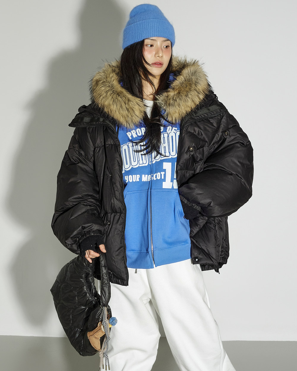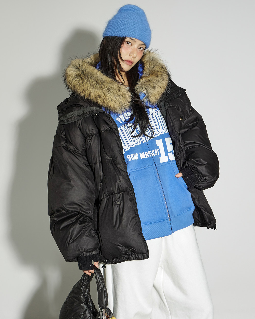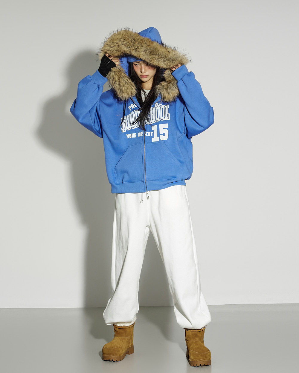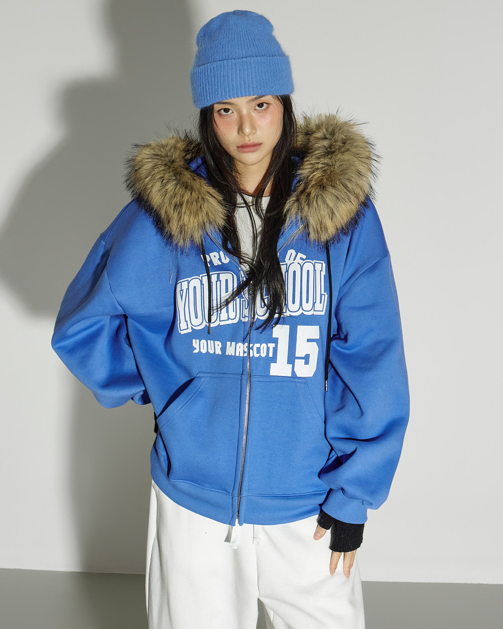这是一款休闲风格的貉子毛抓绒连帽拉链外套。