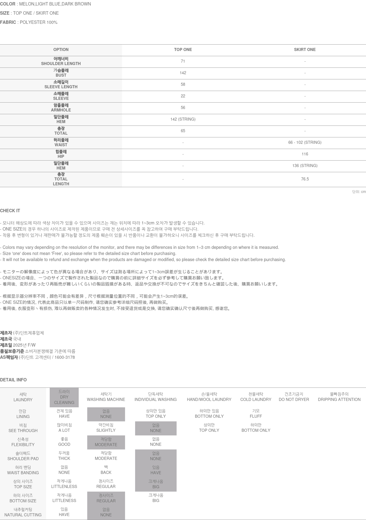 • DINT的所有商品, 使用一般洗滌或是烘乾機, 皆有可能成爲變形或是商品損傷的原因, 建議您使用乾洗.