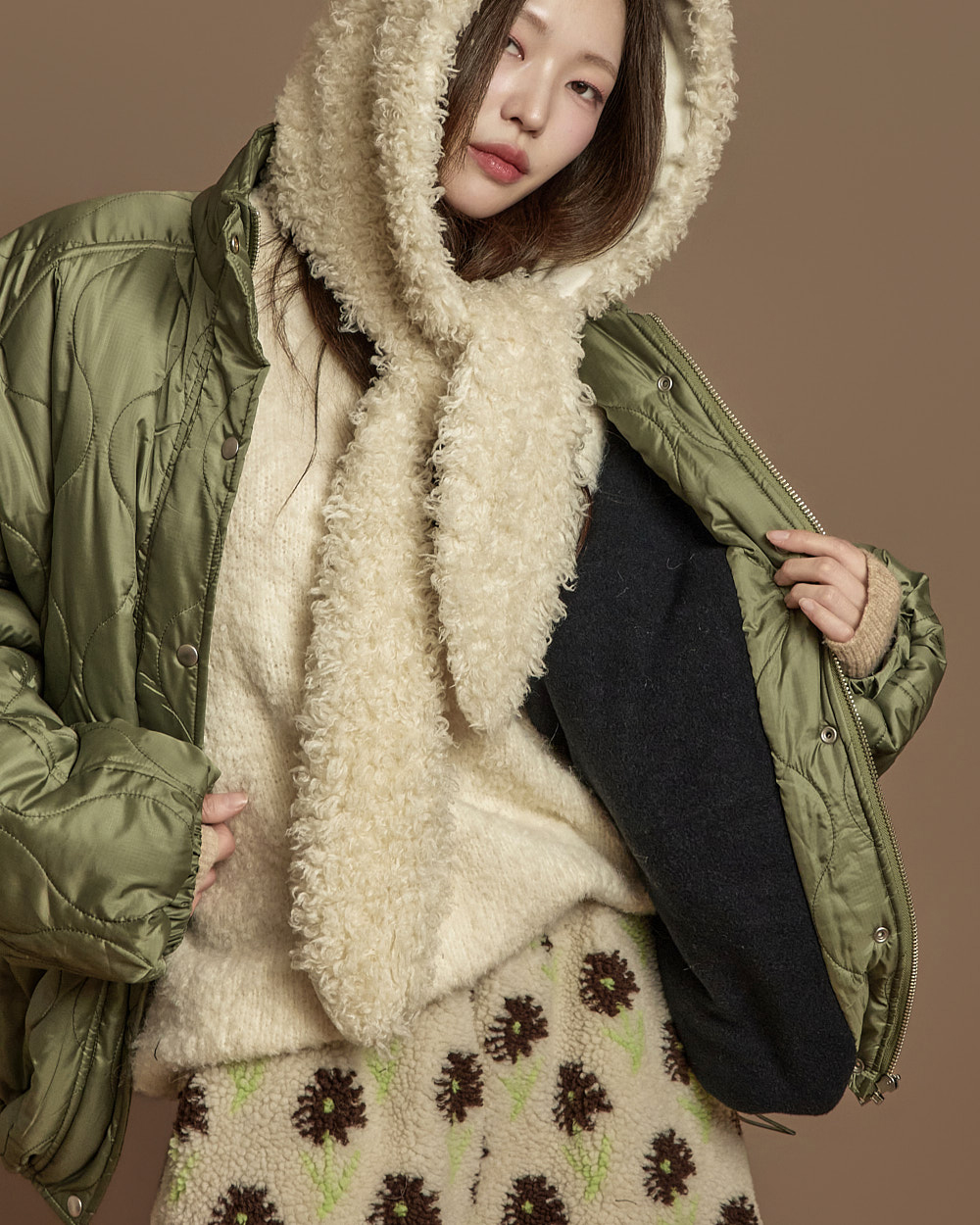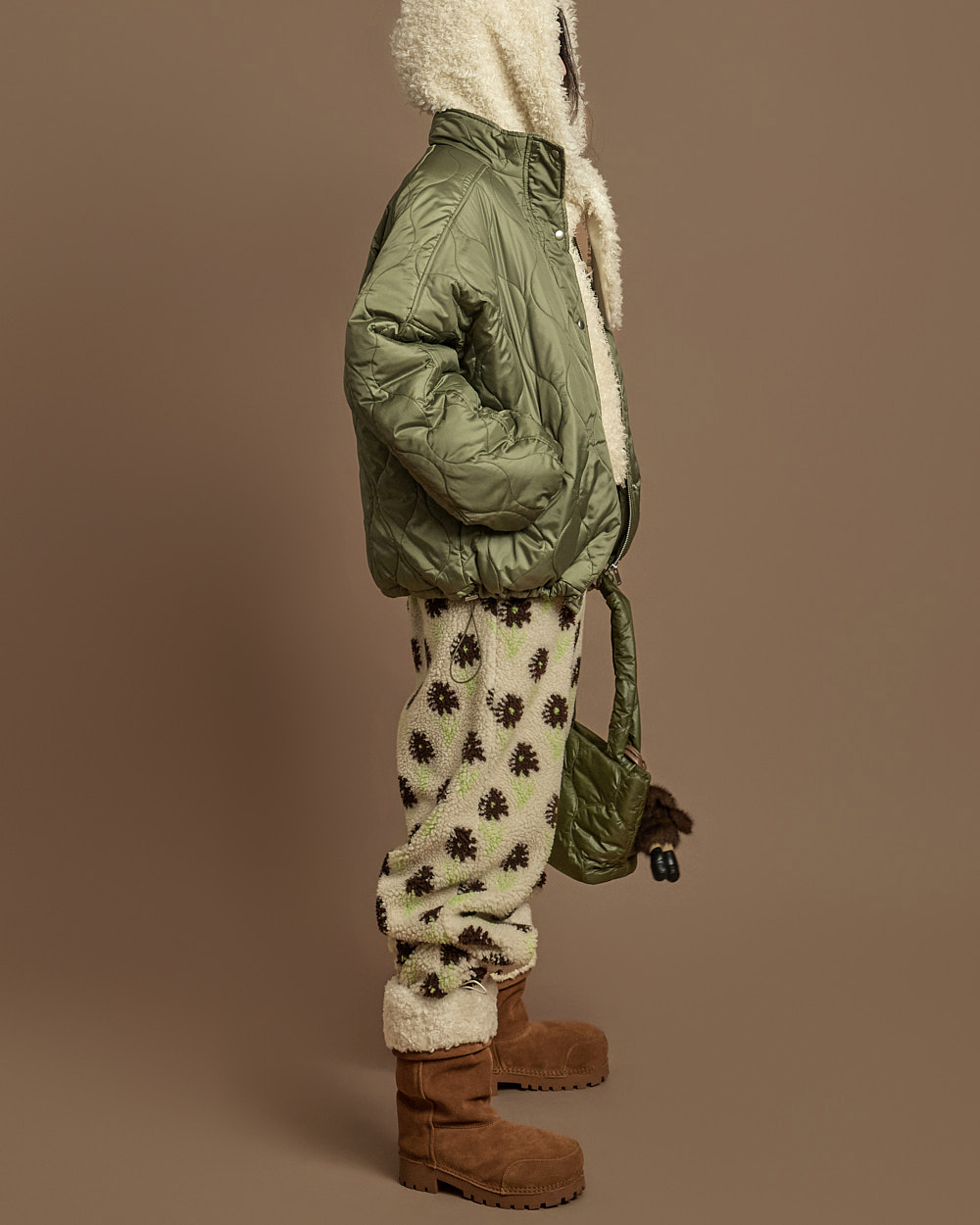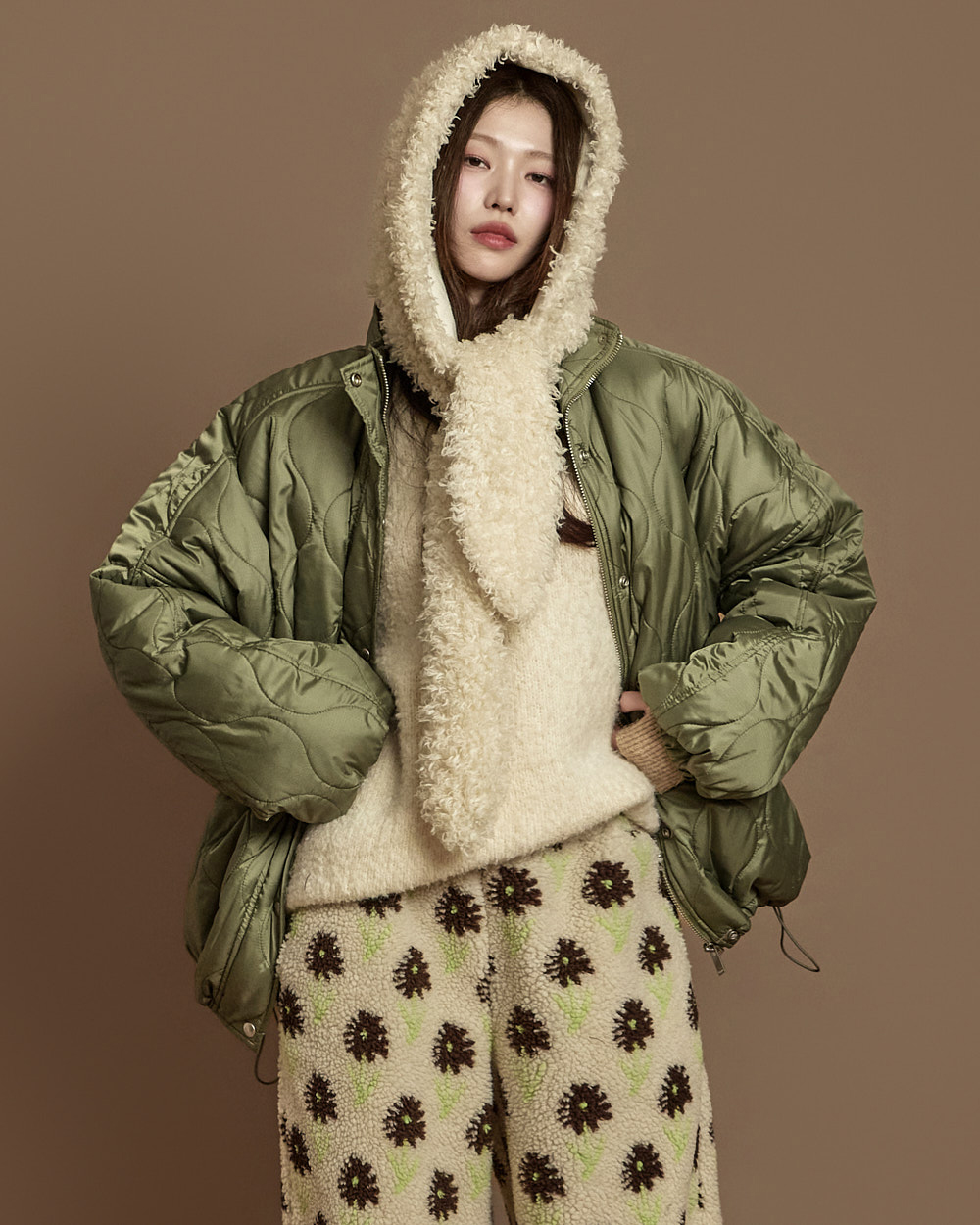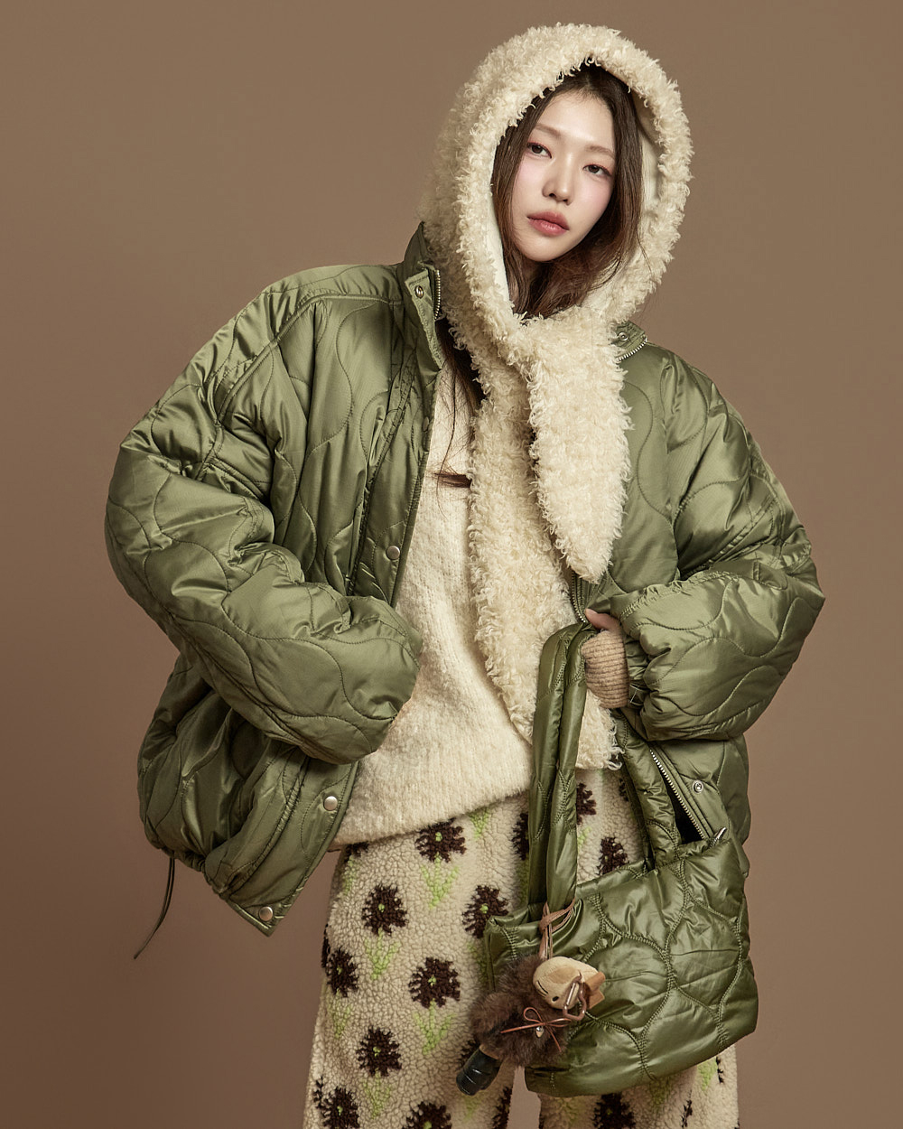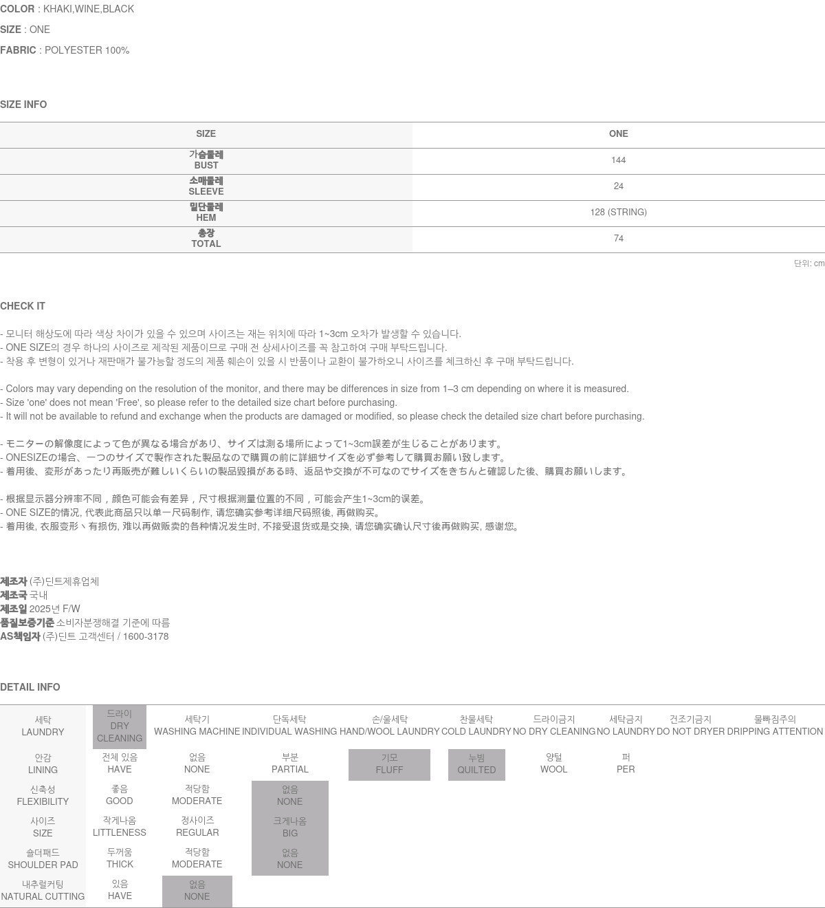 模特身高 171CM,穿着 ONE 尺码,KHAKI 颜色。