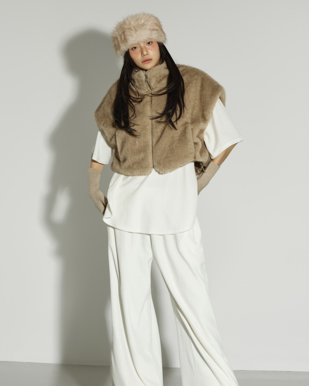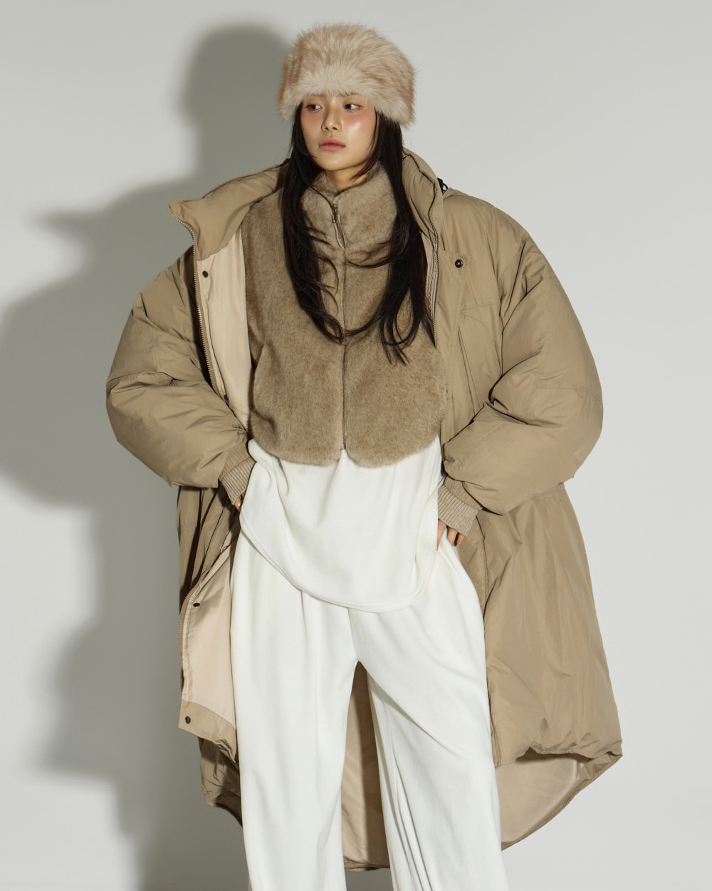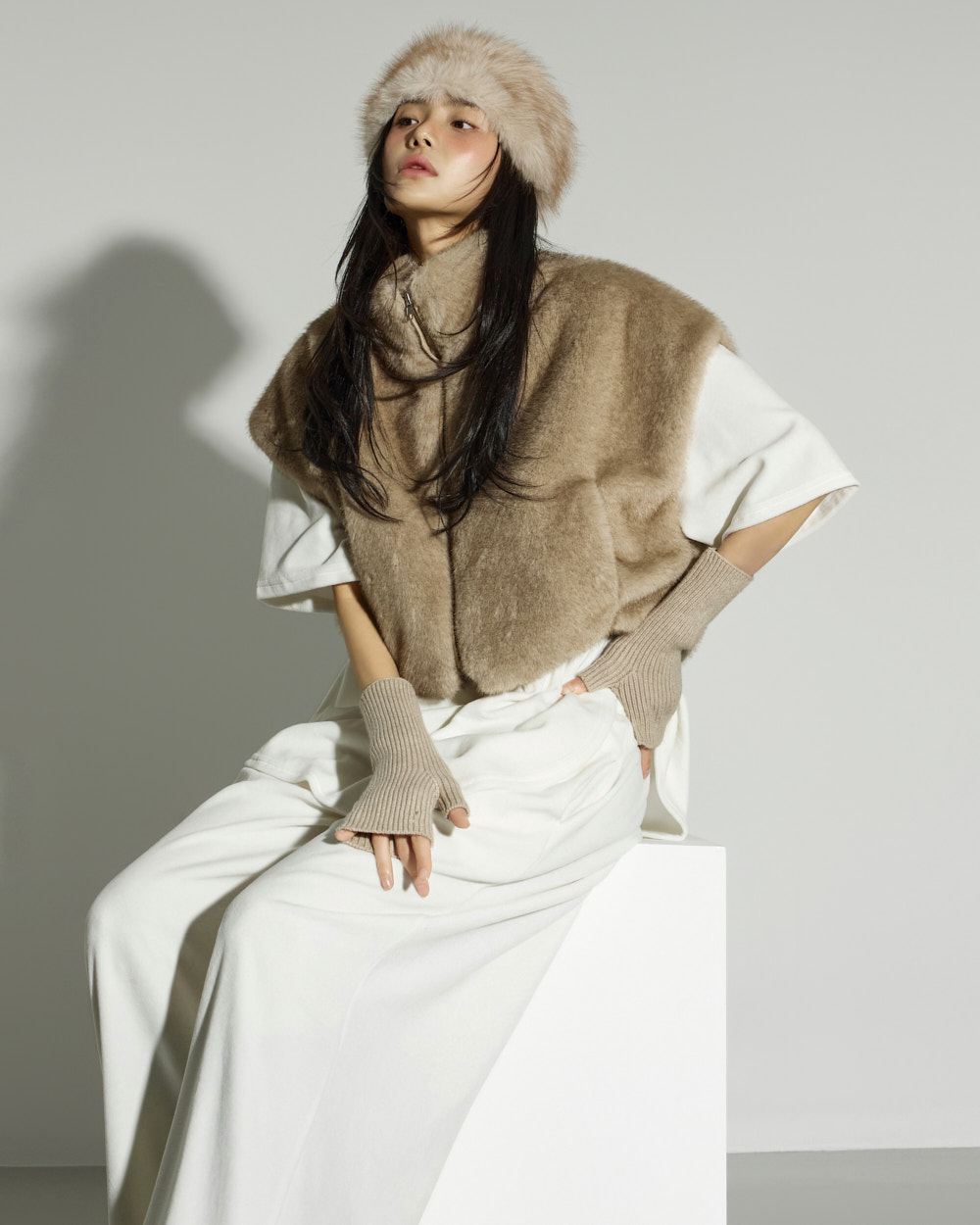 模特身高 171CM,穿着 ONE 尺码,米色。