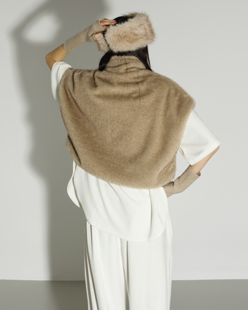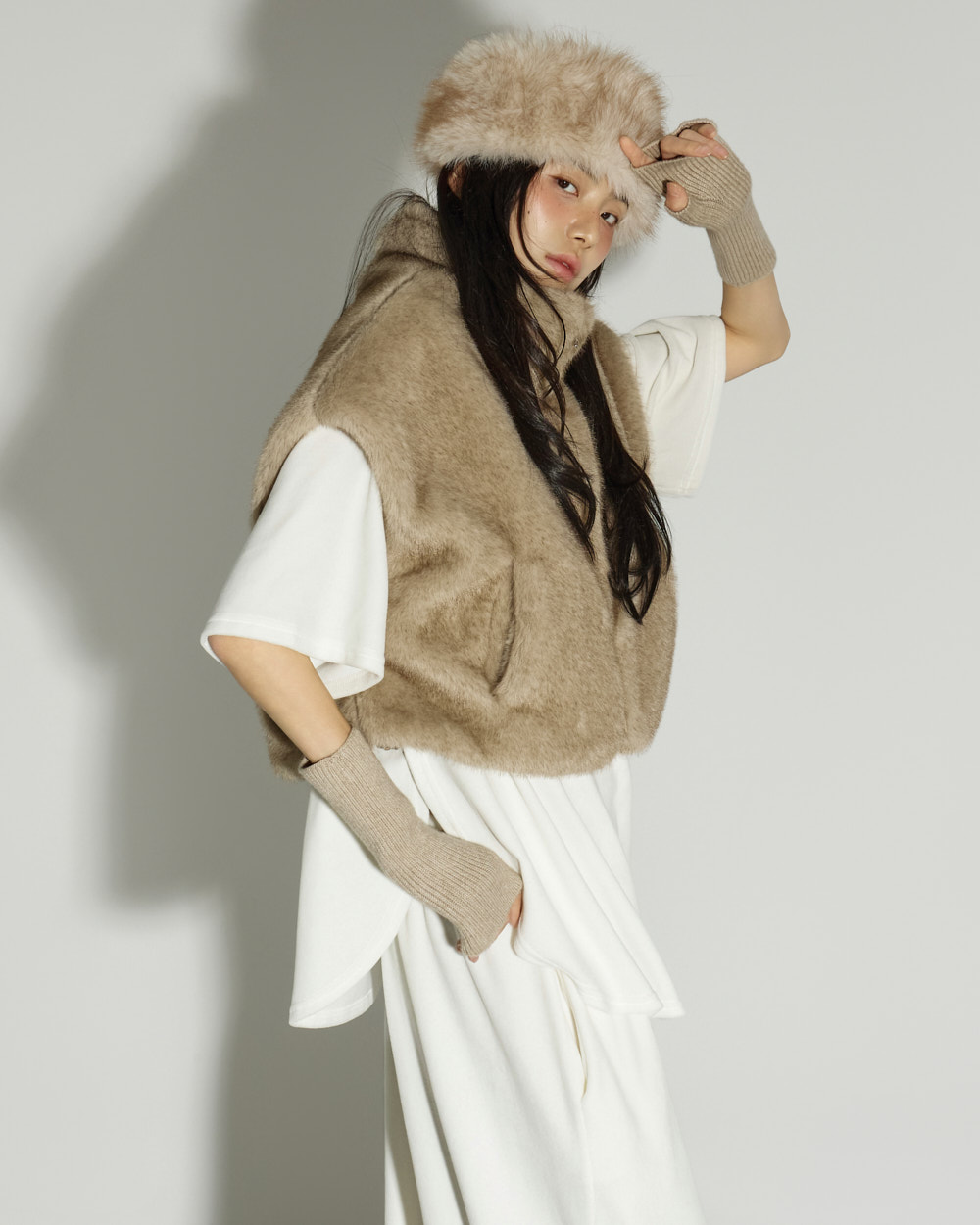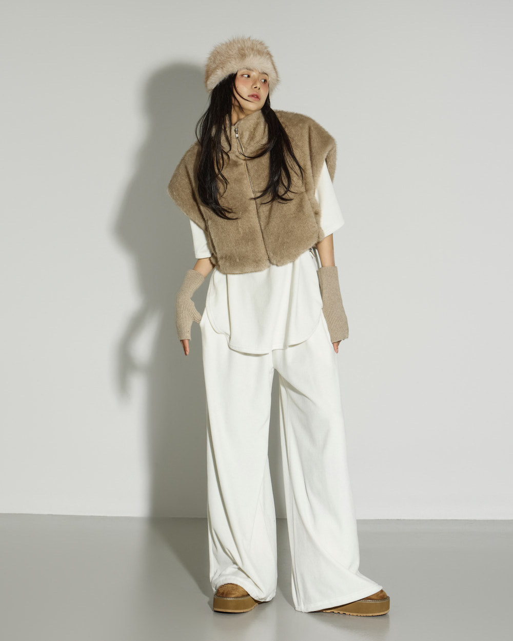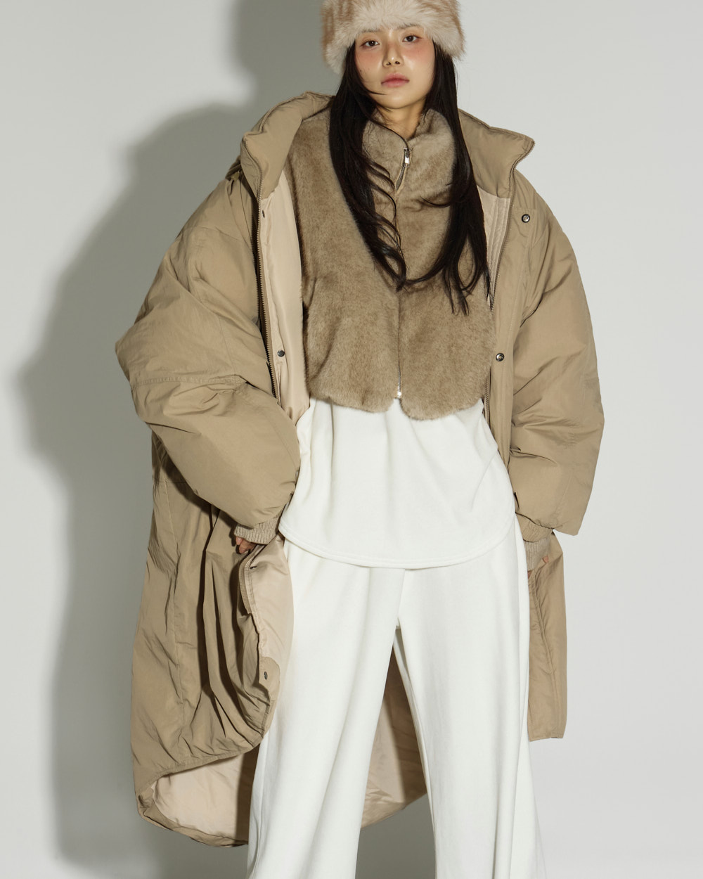 模特身高 171CM,穿着 ONE 尺码,米色。