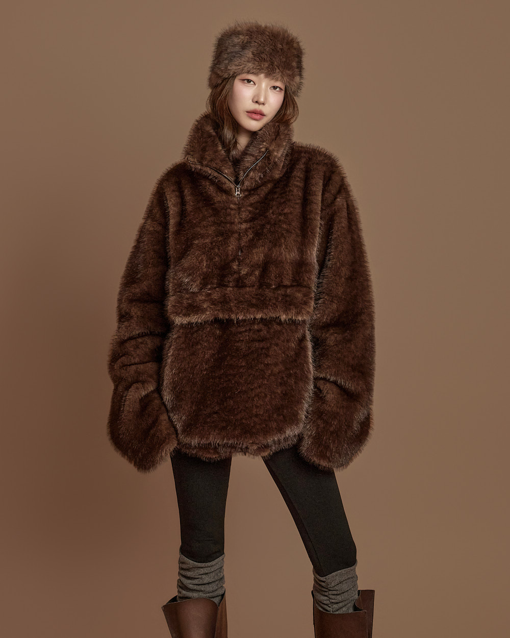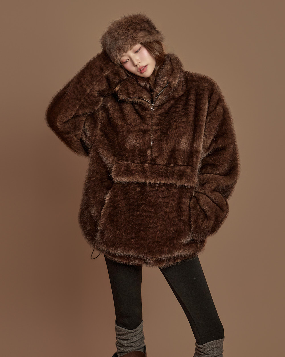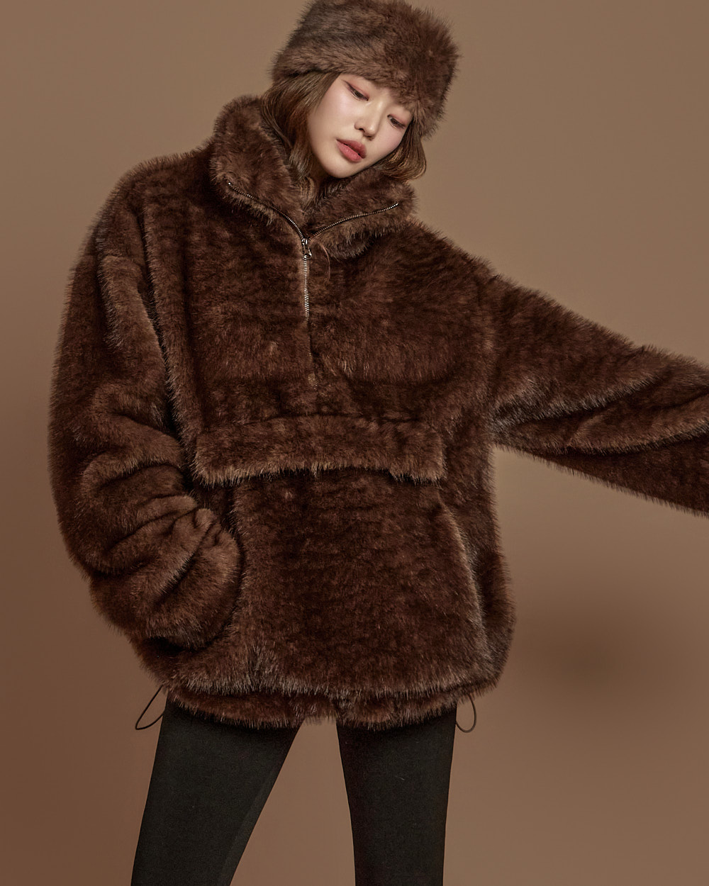 温暖柔和氛围的 anorak 毛绒上衣。