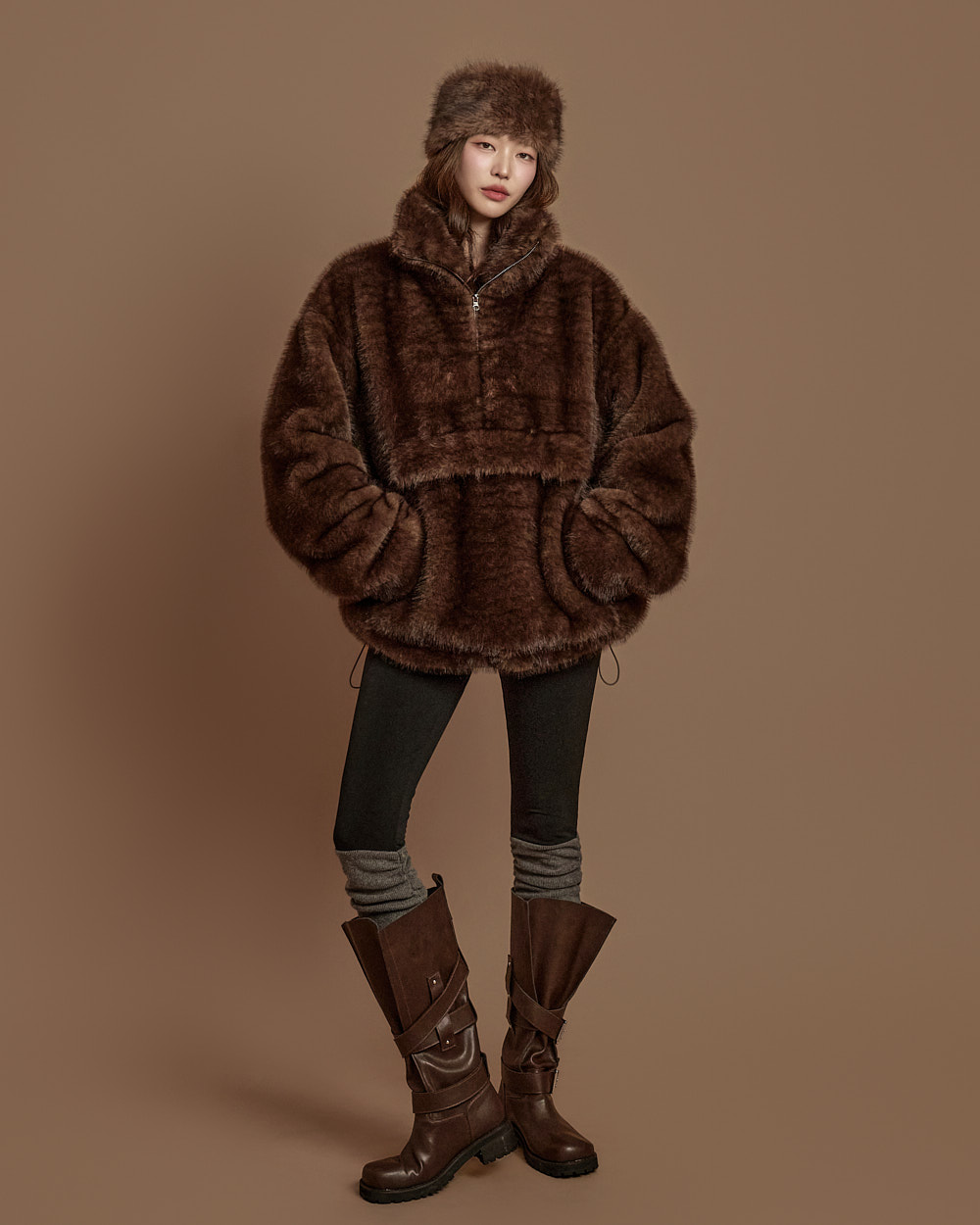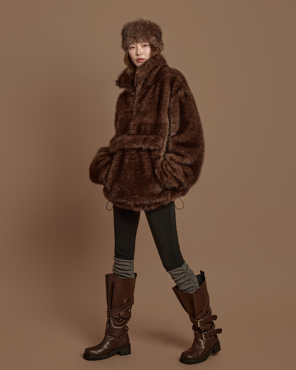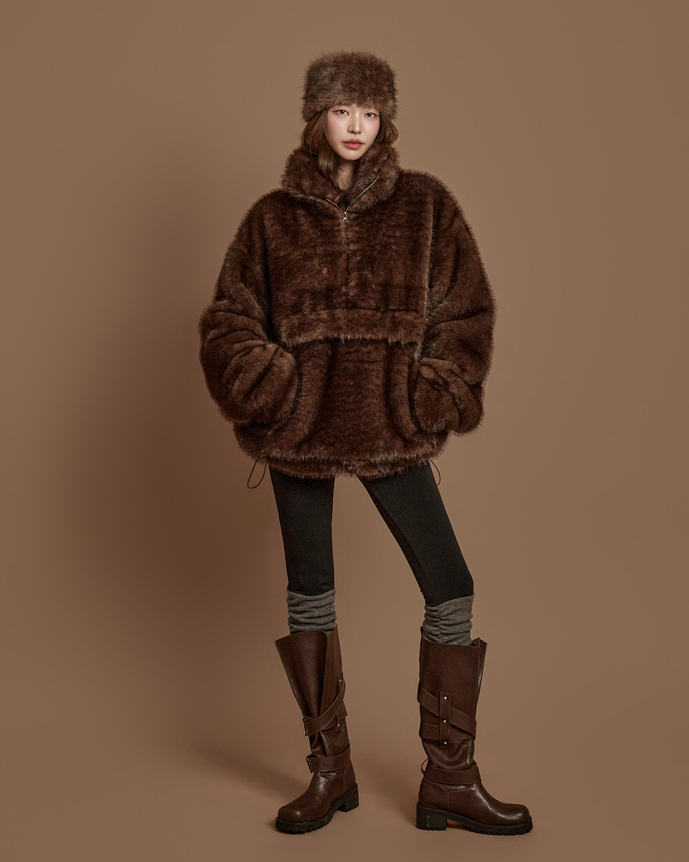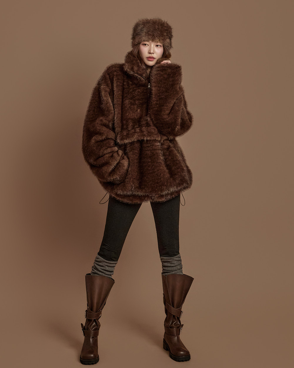 温暖柔和氛围的 anorak 毛绒上衣。