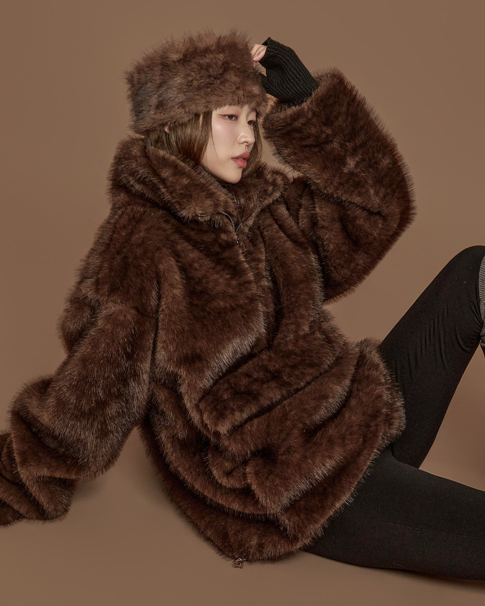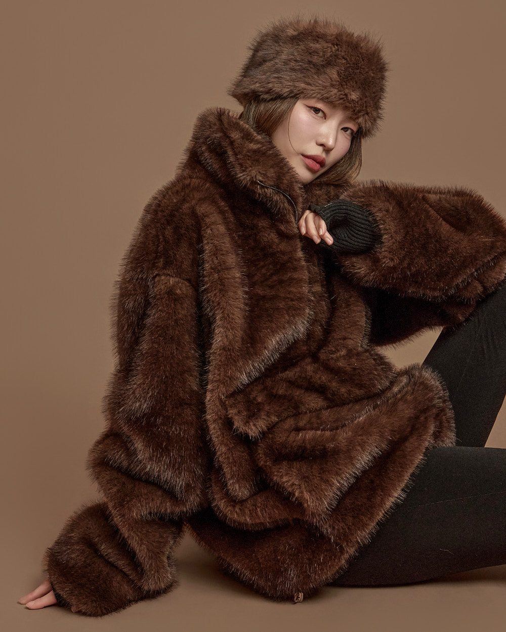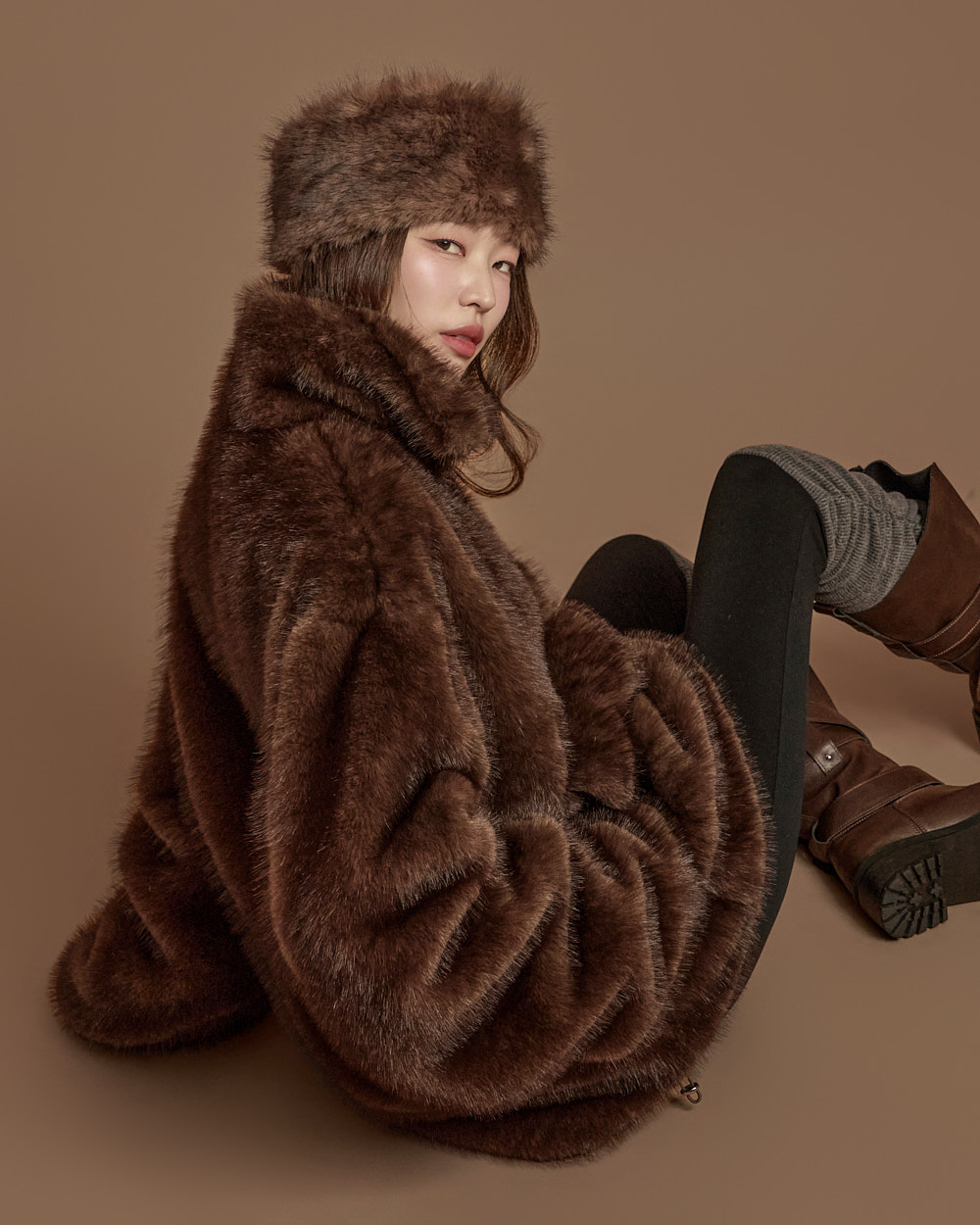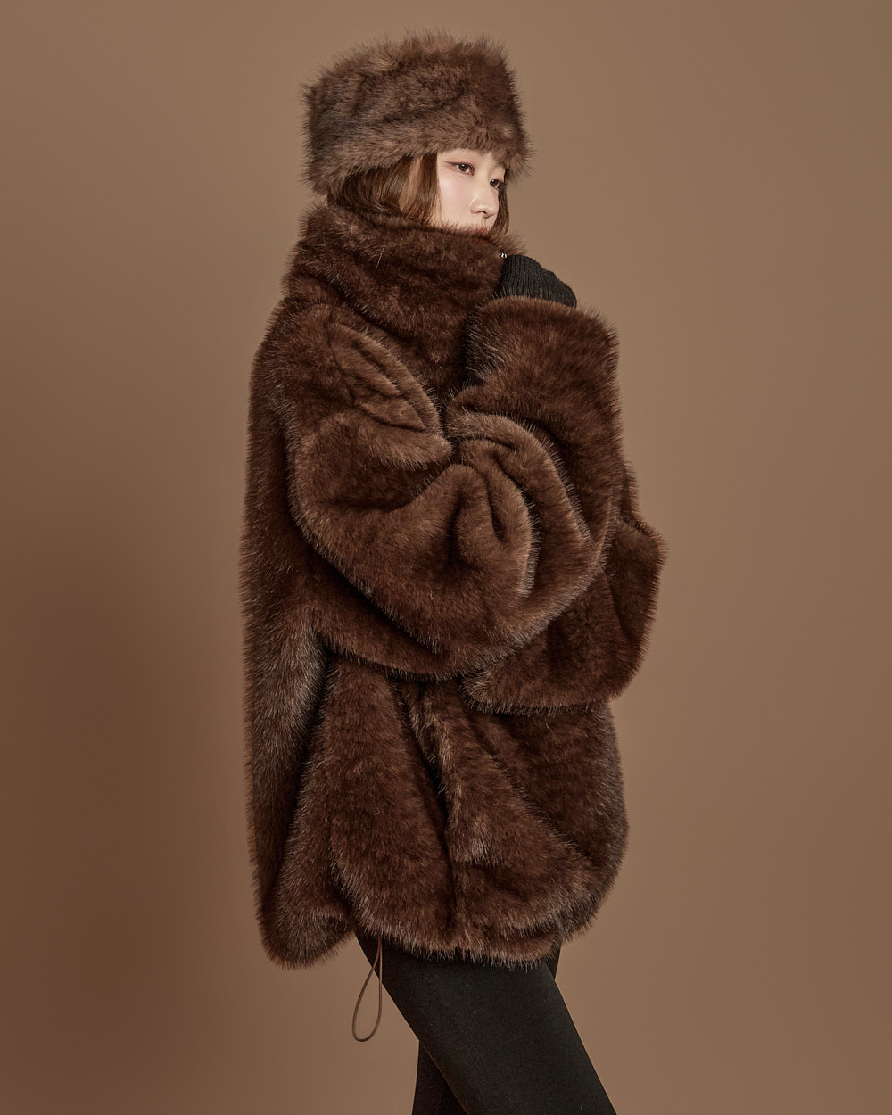 171CM 模特穿着 ONE 尺码,DARK BROWN 颜色。