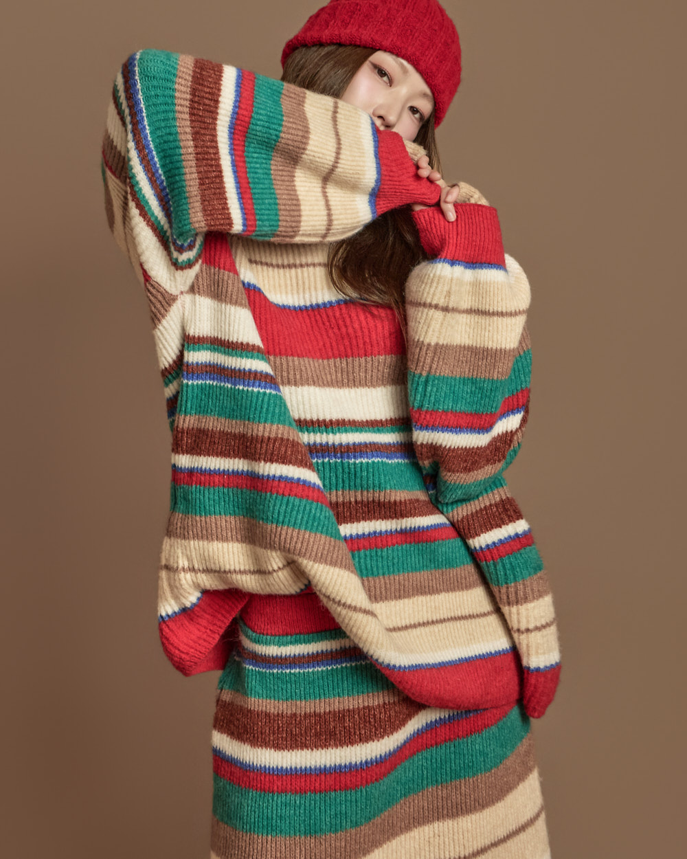 171CM 模特穿着 ONE 尺码,RED MIX 颜色。
